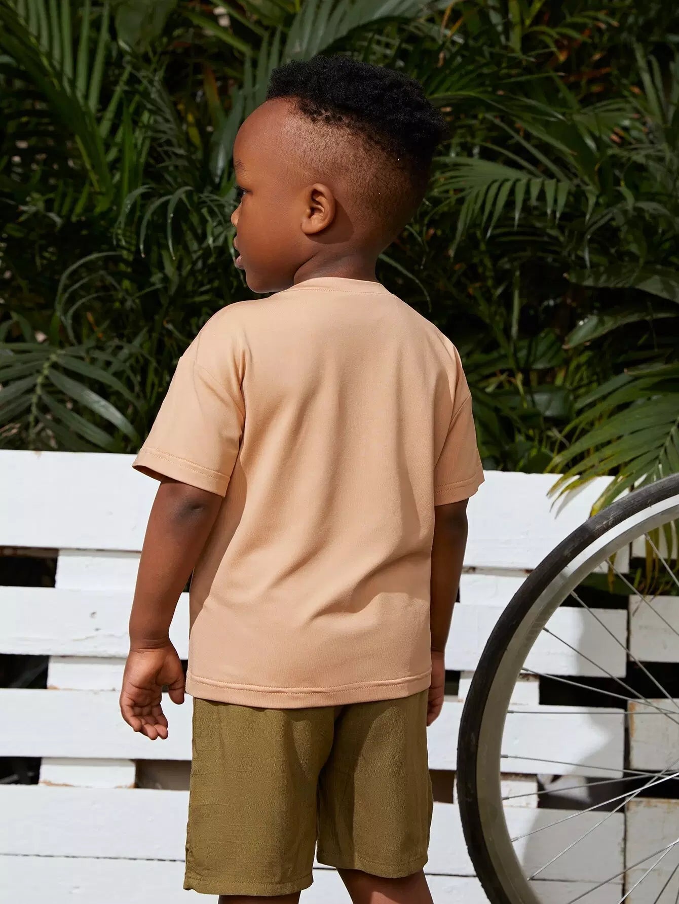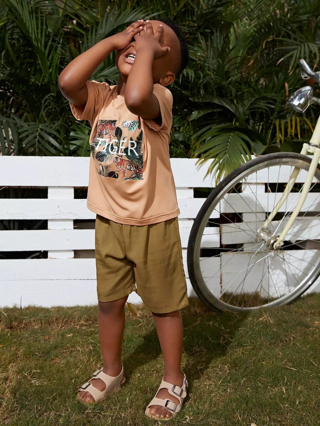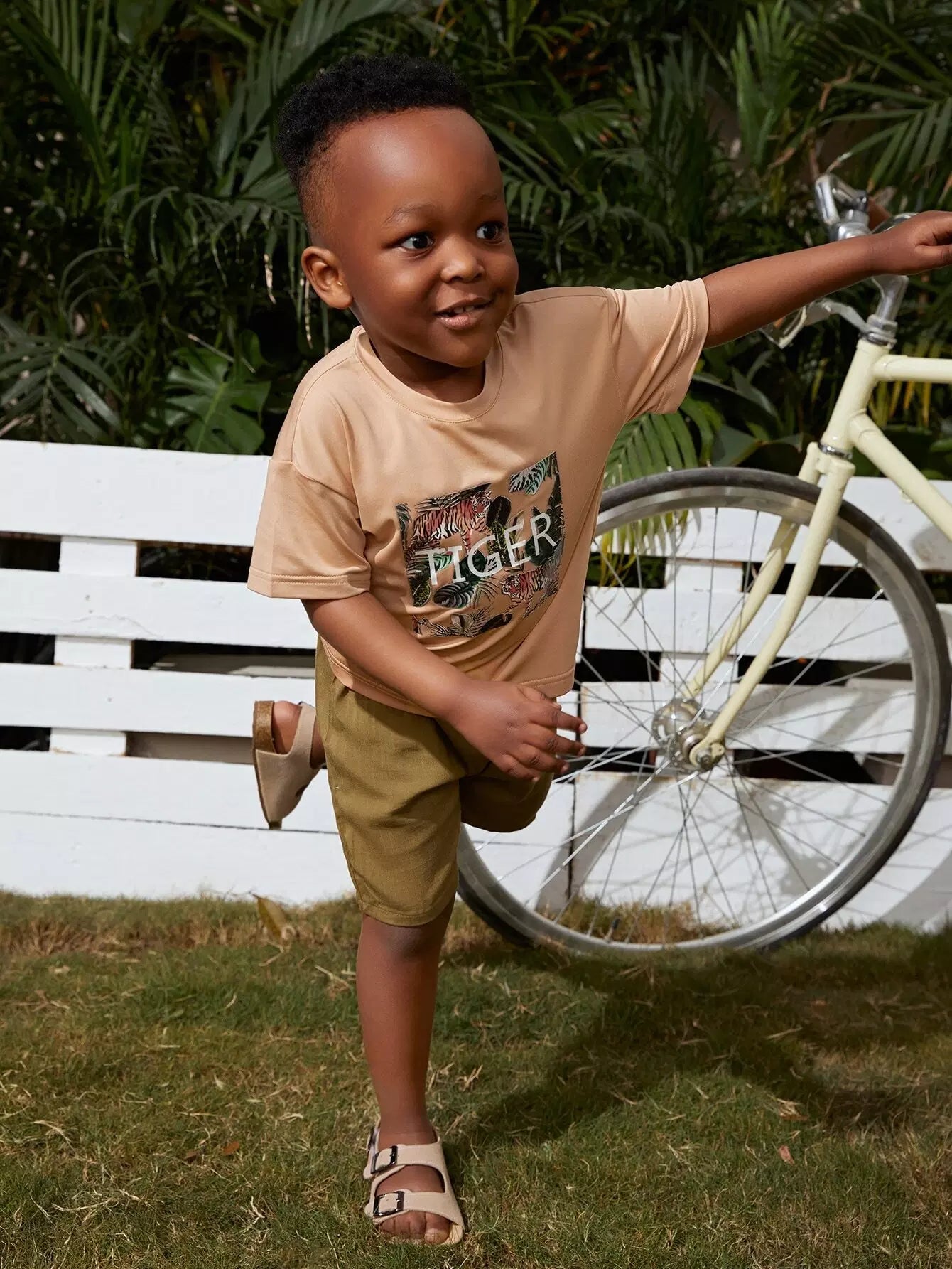 تي شيرت بطبعة حروف وأنماط استوائية للأولاد الصغار