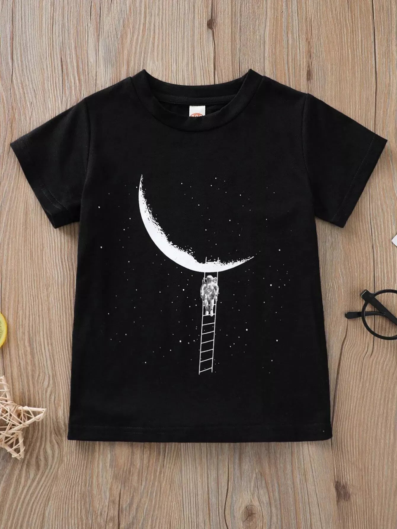 تي شيرت بطبعة قمر ورائد فضاء للأولاد الصغار