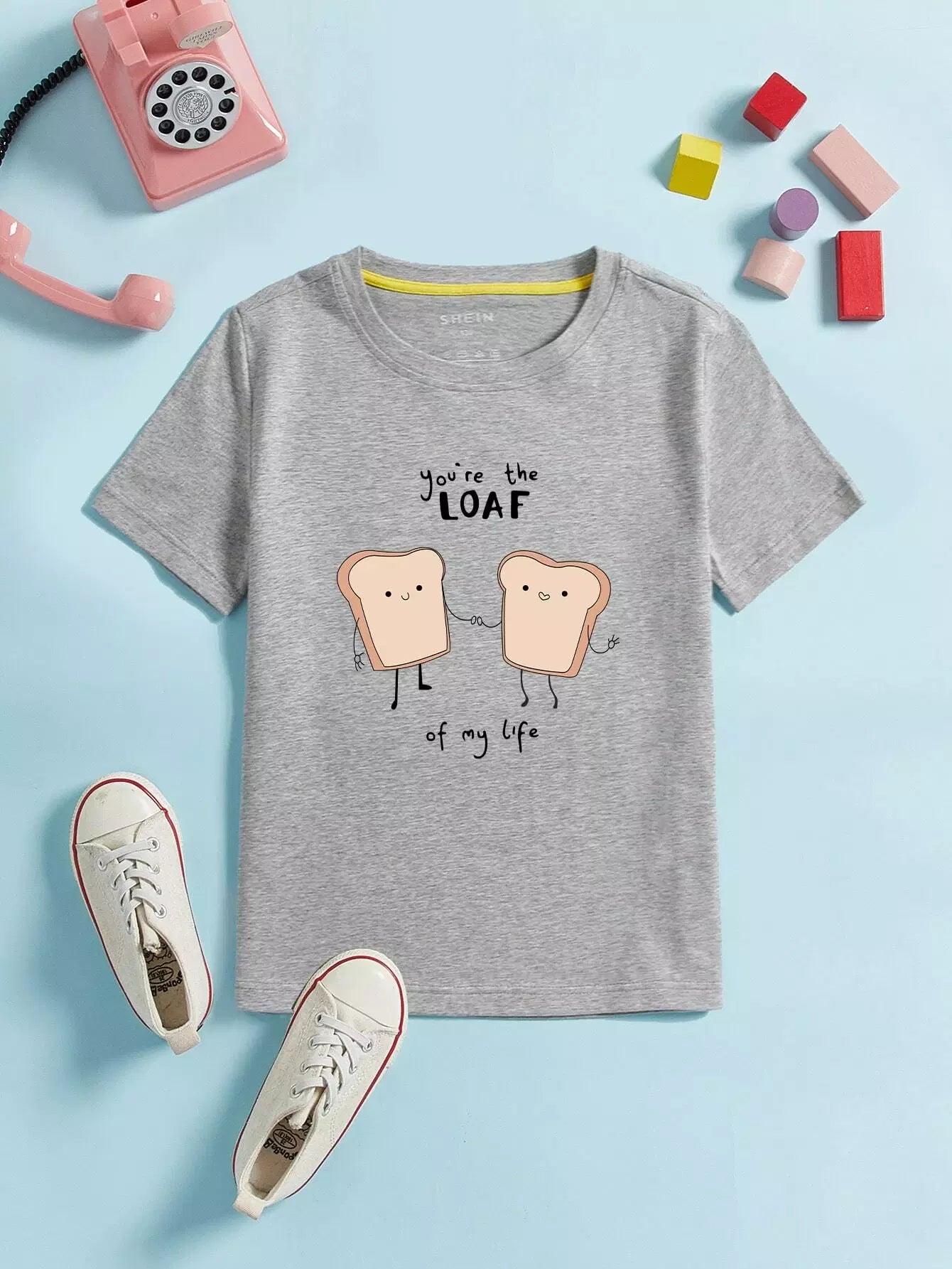 تيشيرت برقبة دائرية مطبوع عليه شعار ورسوم كرتونية للأولاد الصغار