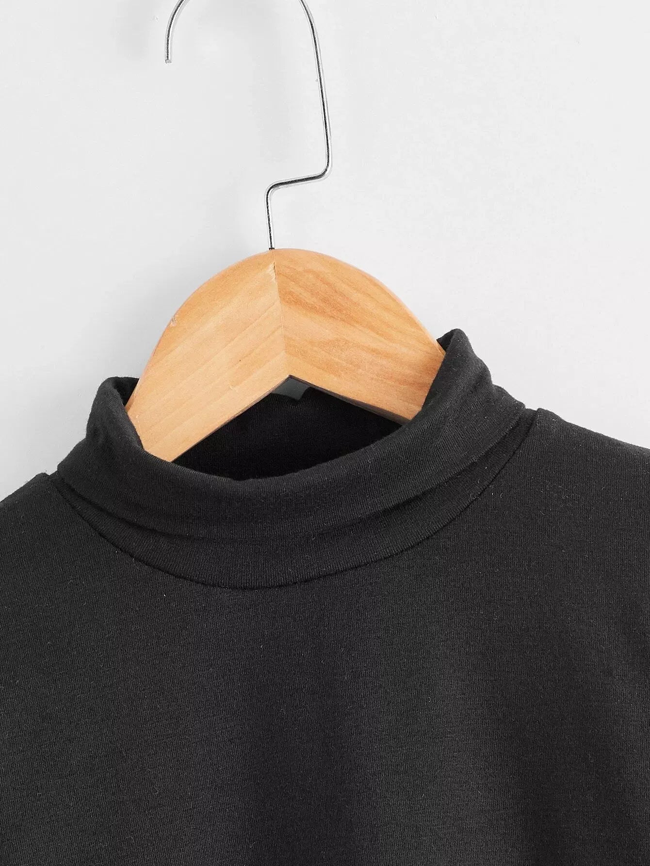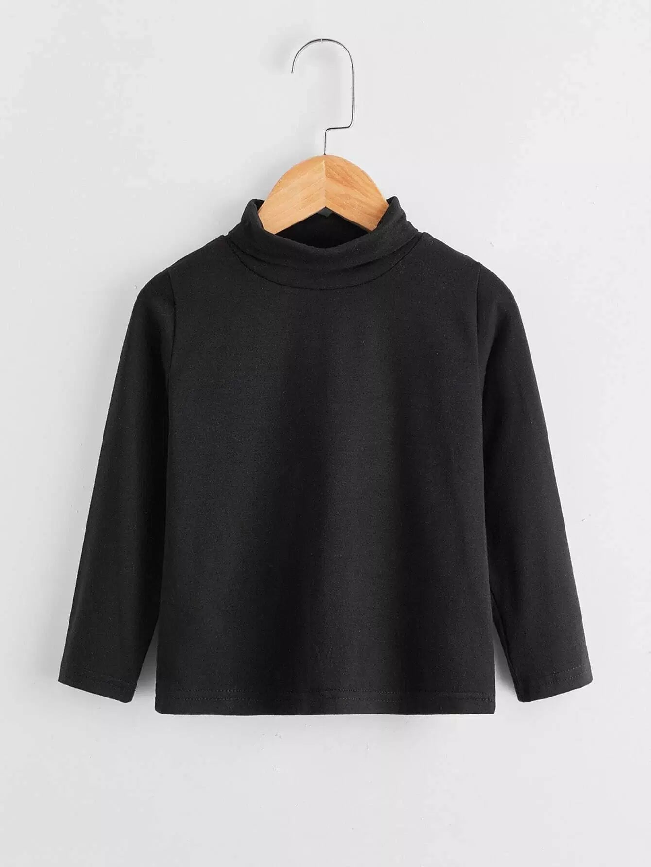 تي شيرت برقبة عالية سادة بياقة عالية للأطفال الصغار