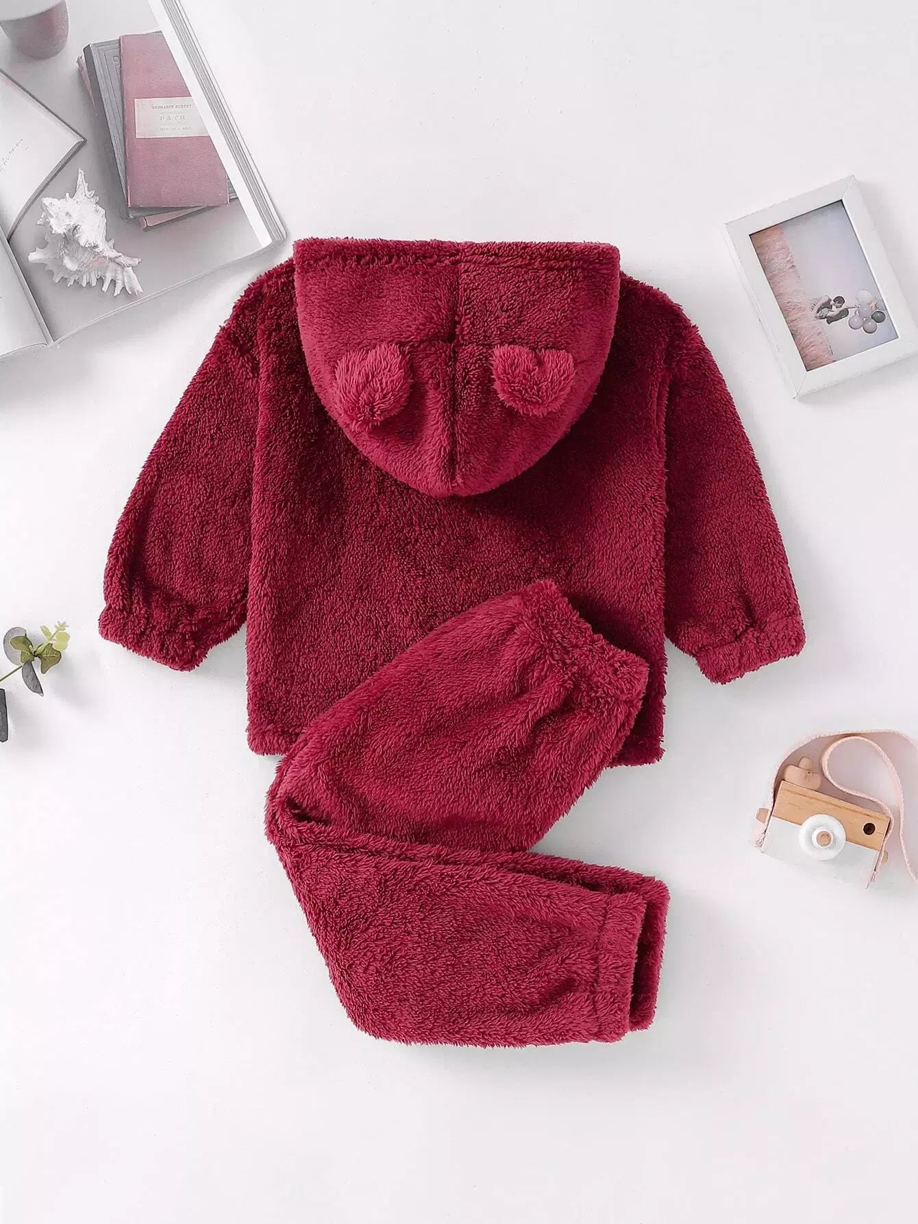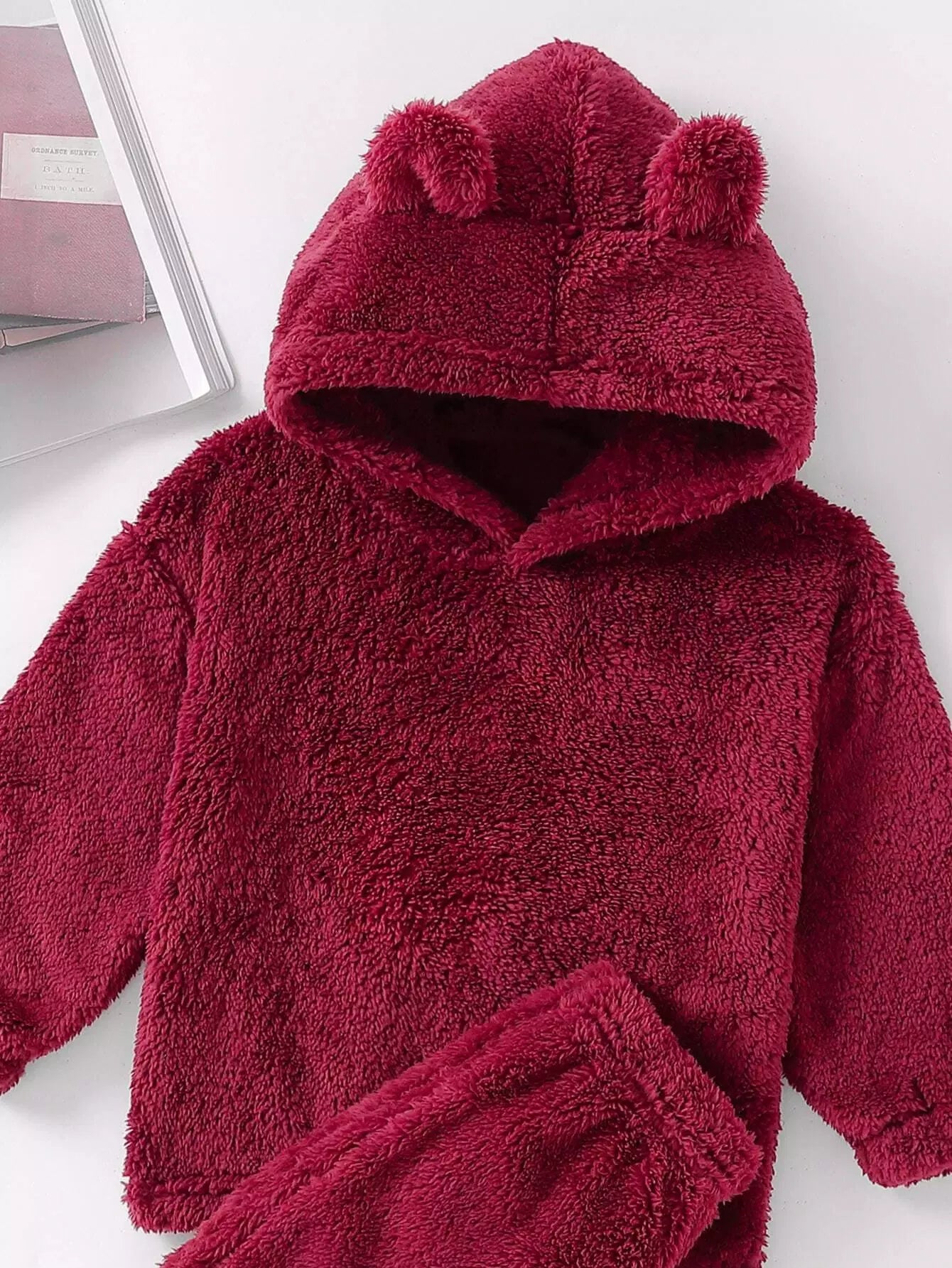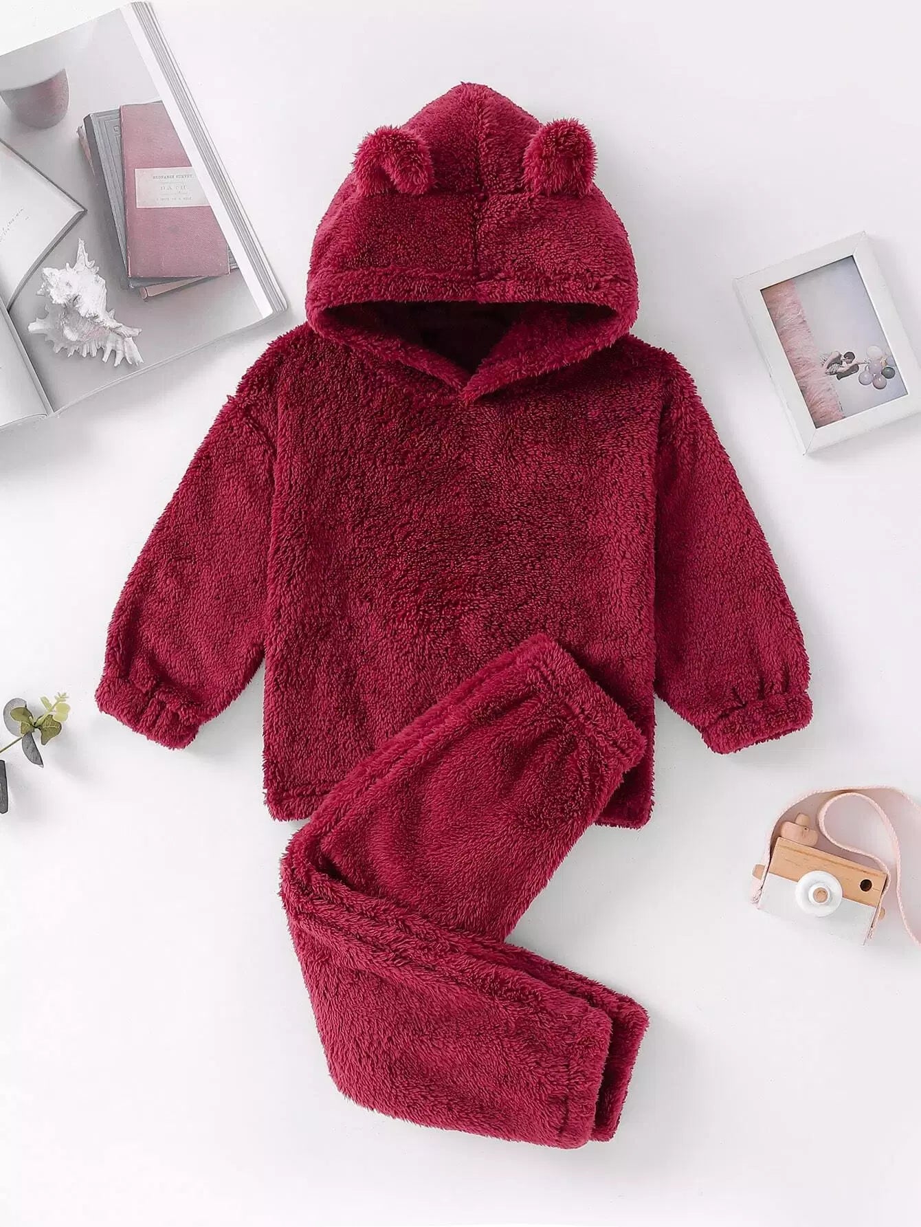 الأطفال - هودي وبنطلون رياضي من الفلانيل مرقع بالأذن ثلاثي الأبعاد للفتيات الصغيرات