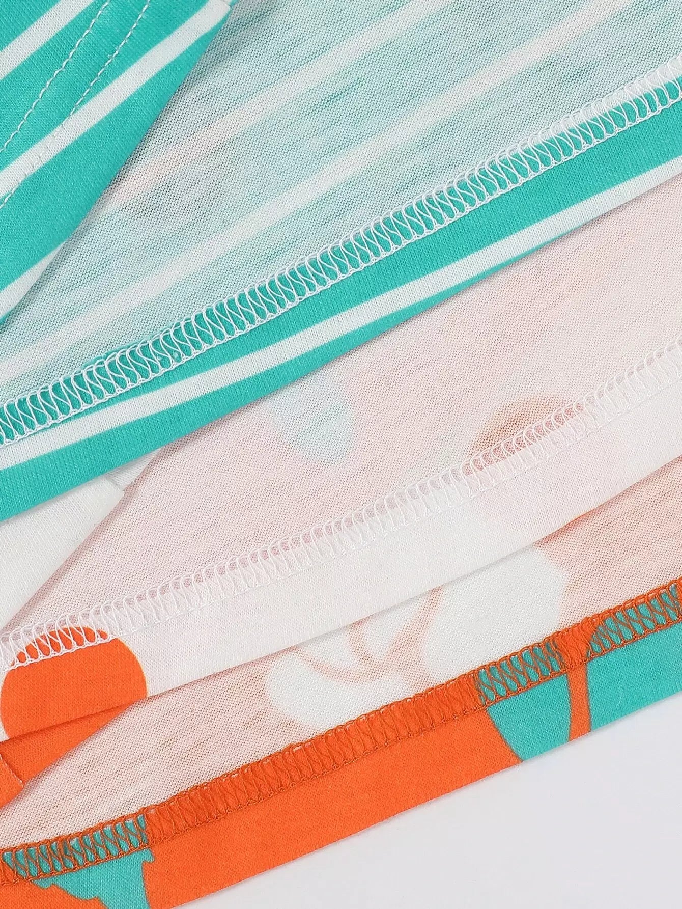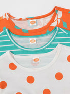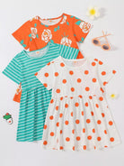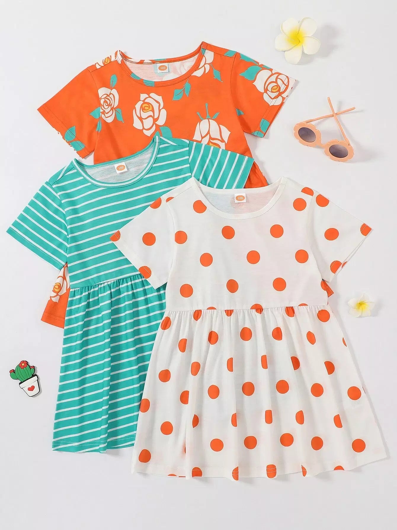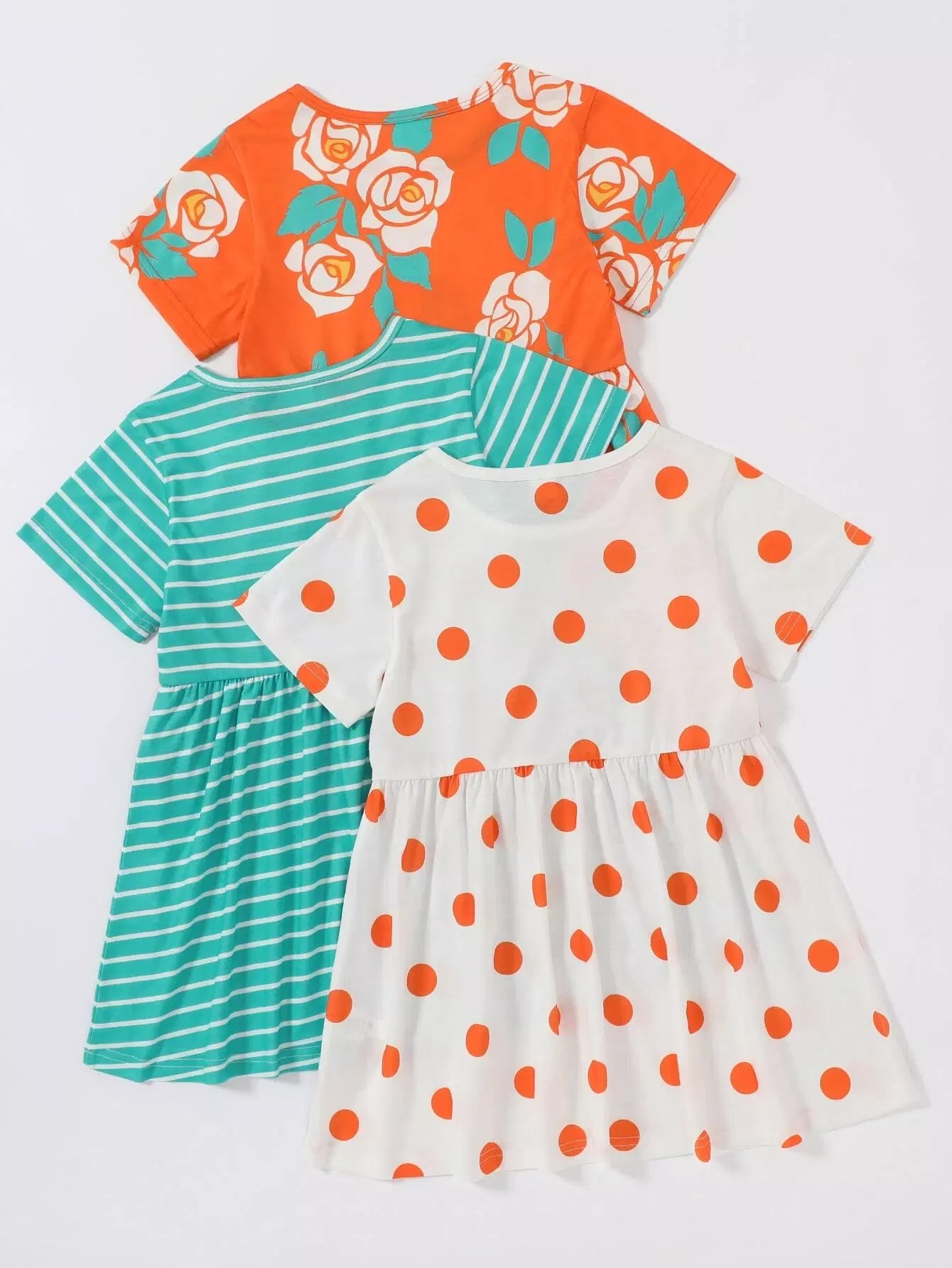 فستان سموك بناتي صغيرات 3 قطع بنقشة زهور ونقشة منقطة