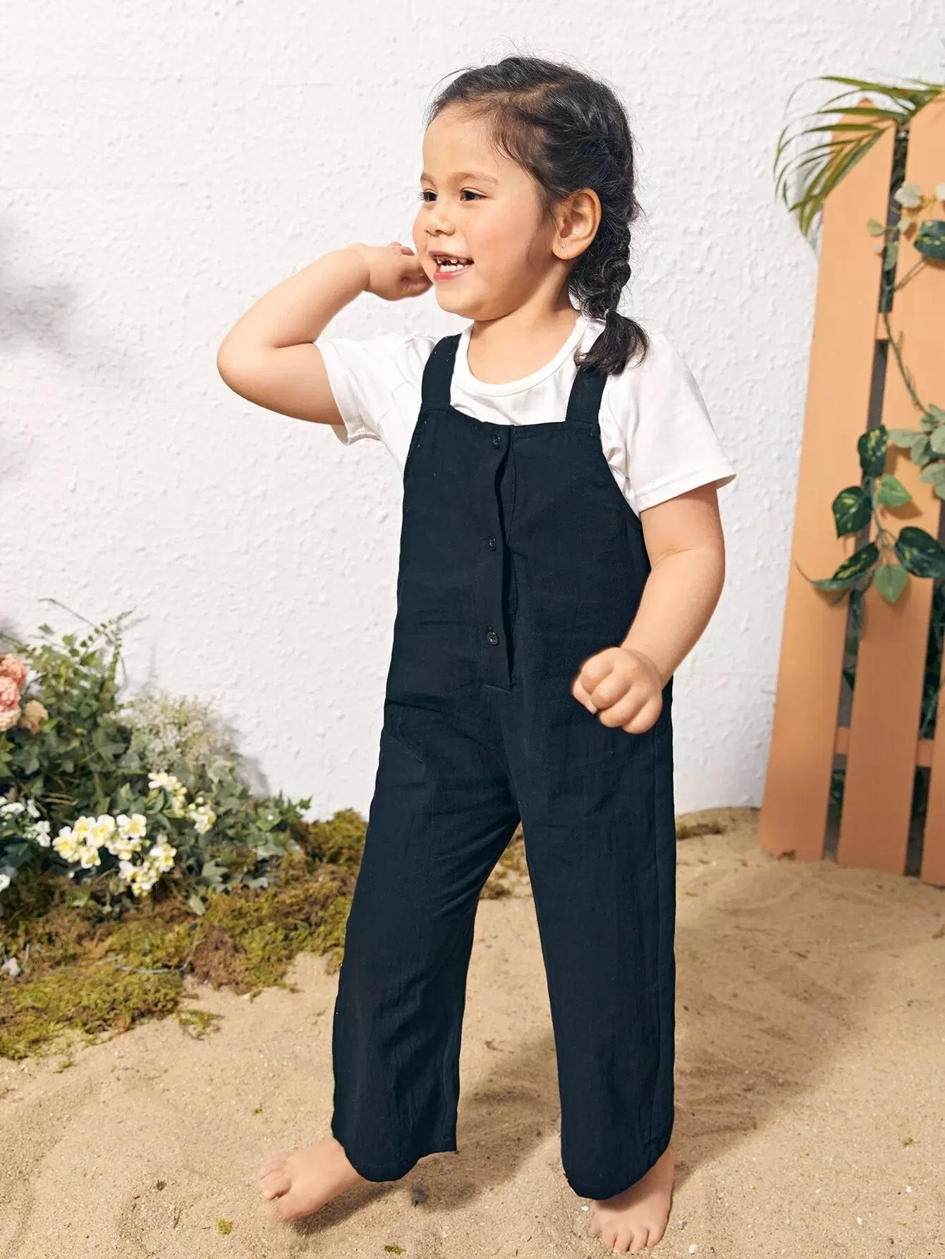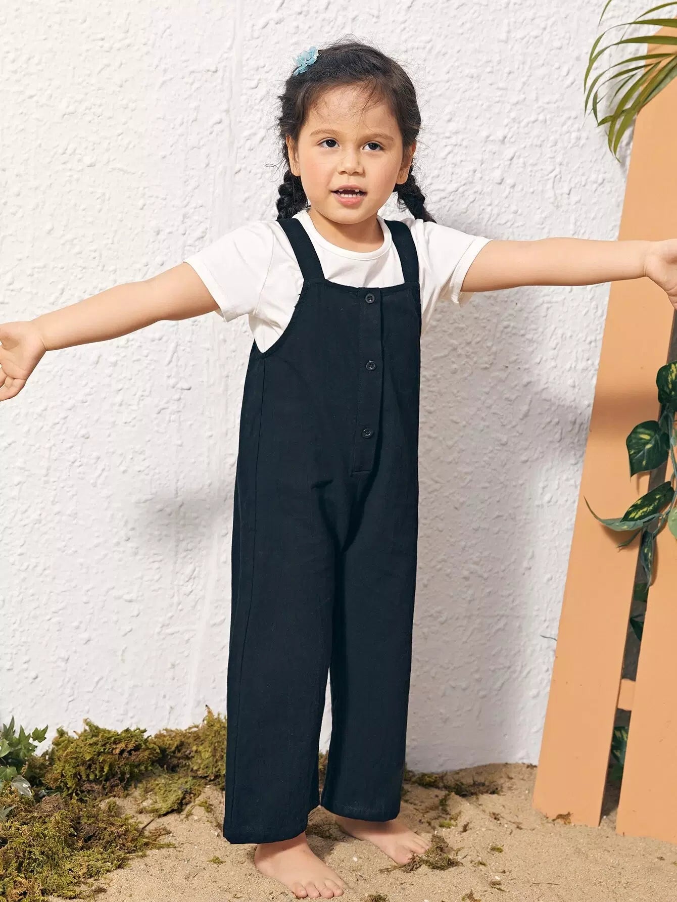 أفرولات سادة بأزرار أمامية للبنات الصغار