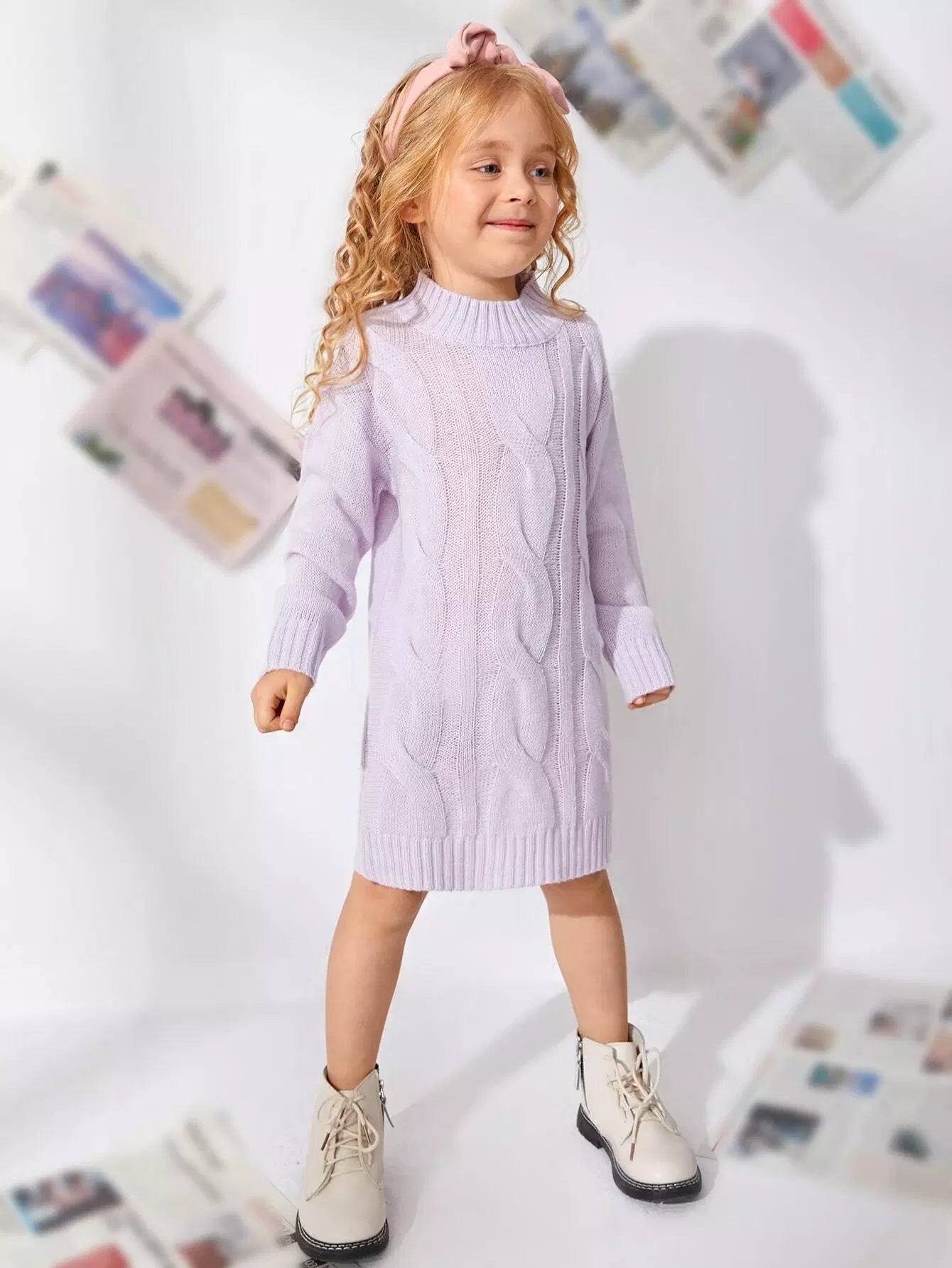 فستان بنات صغيرات محبوك بكابل منسدل الكتف محبوك منسدل الكتف