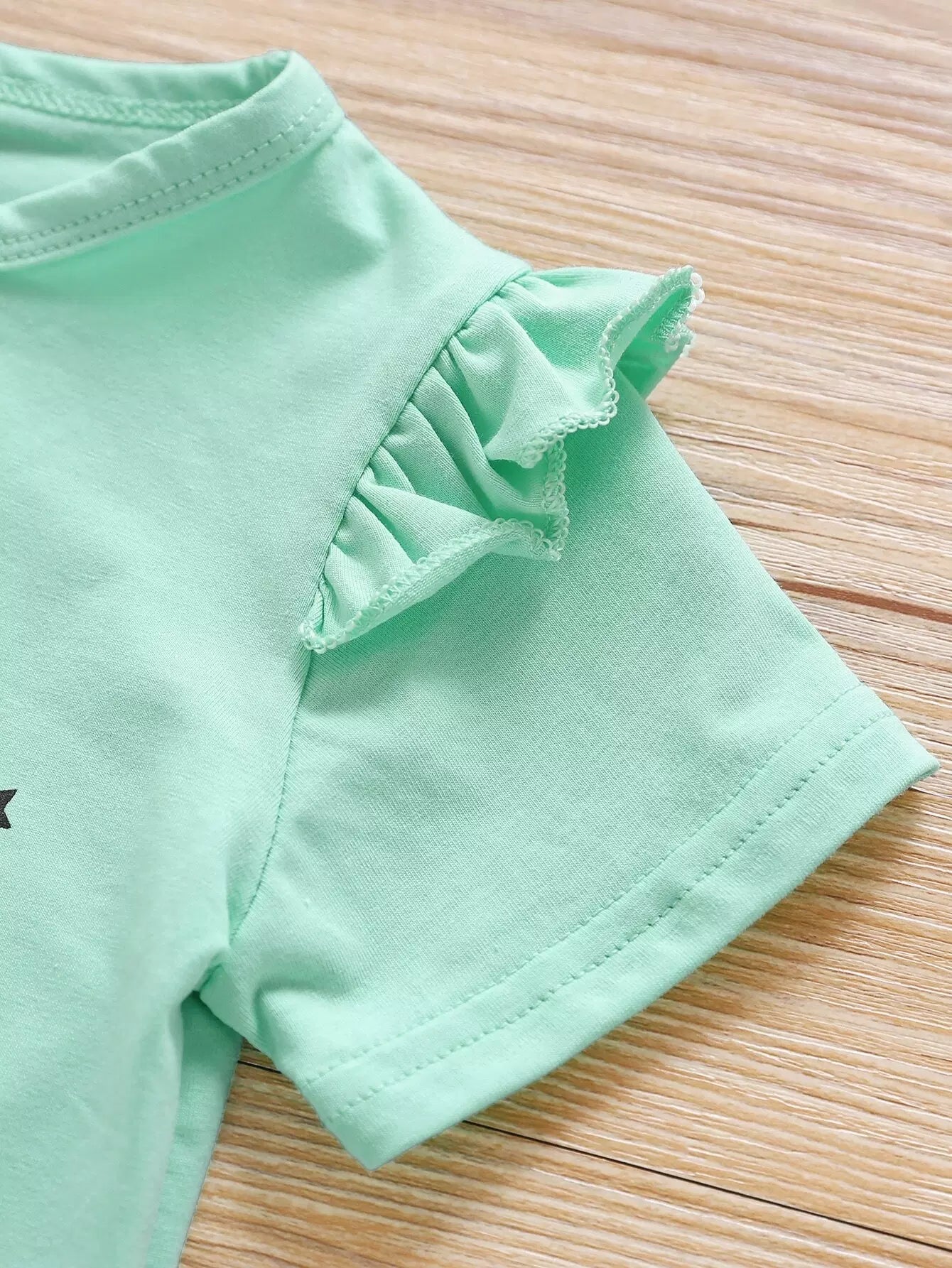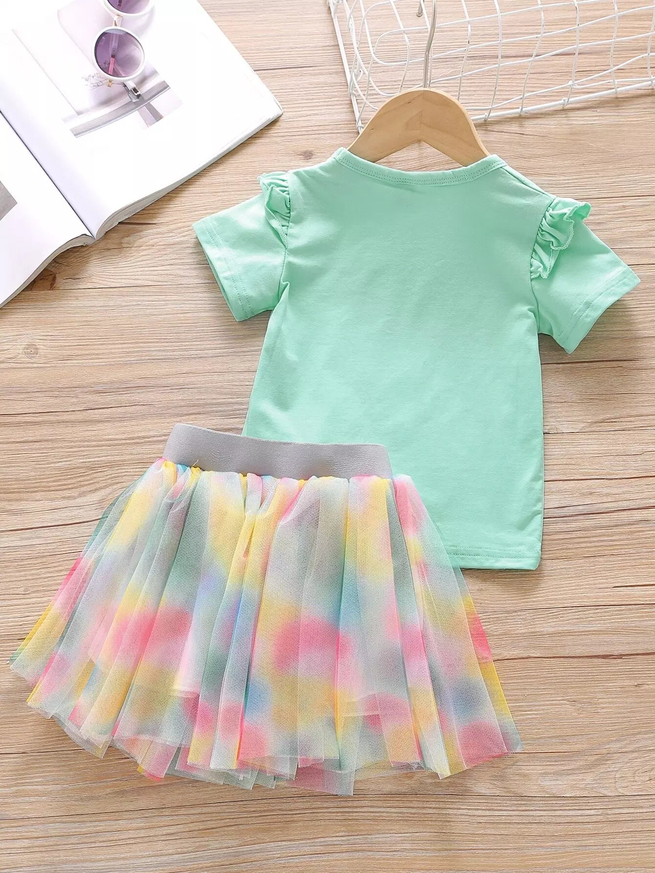 تي شيرت كرتوني جرافيك كشكش للبنات الصغار وتنورة توتو