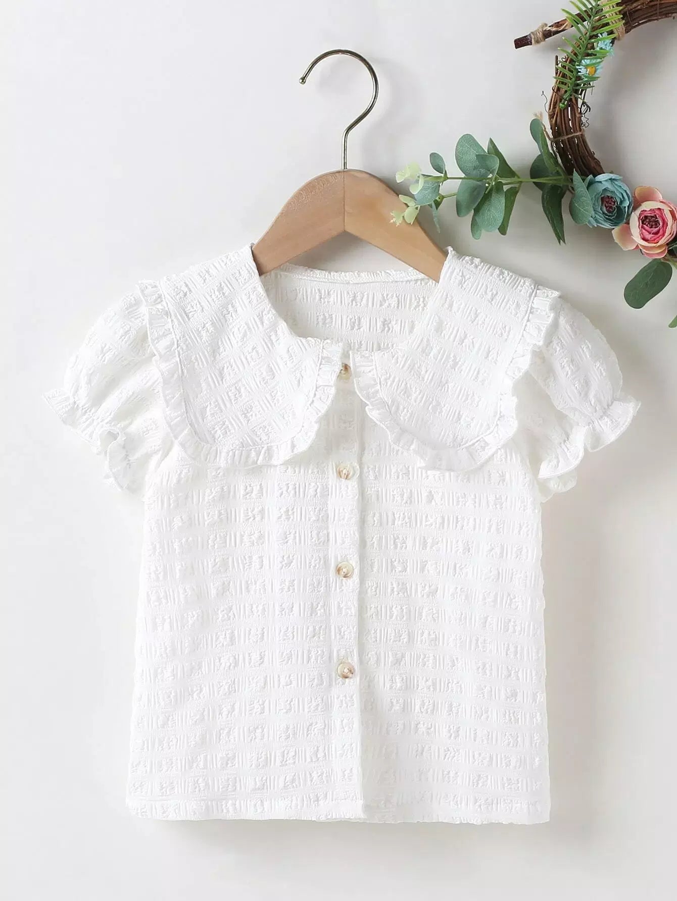 بلوزة بياقة دمية بياقة دمية للبنات الصغيرات