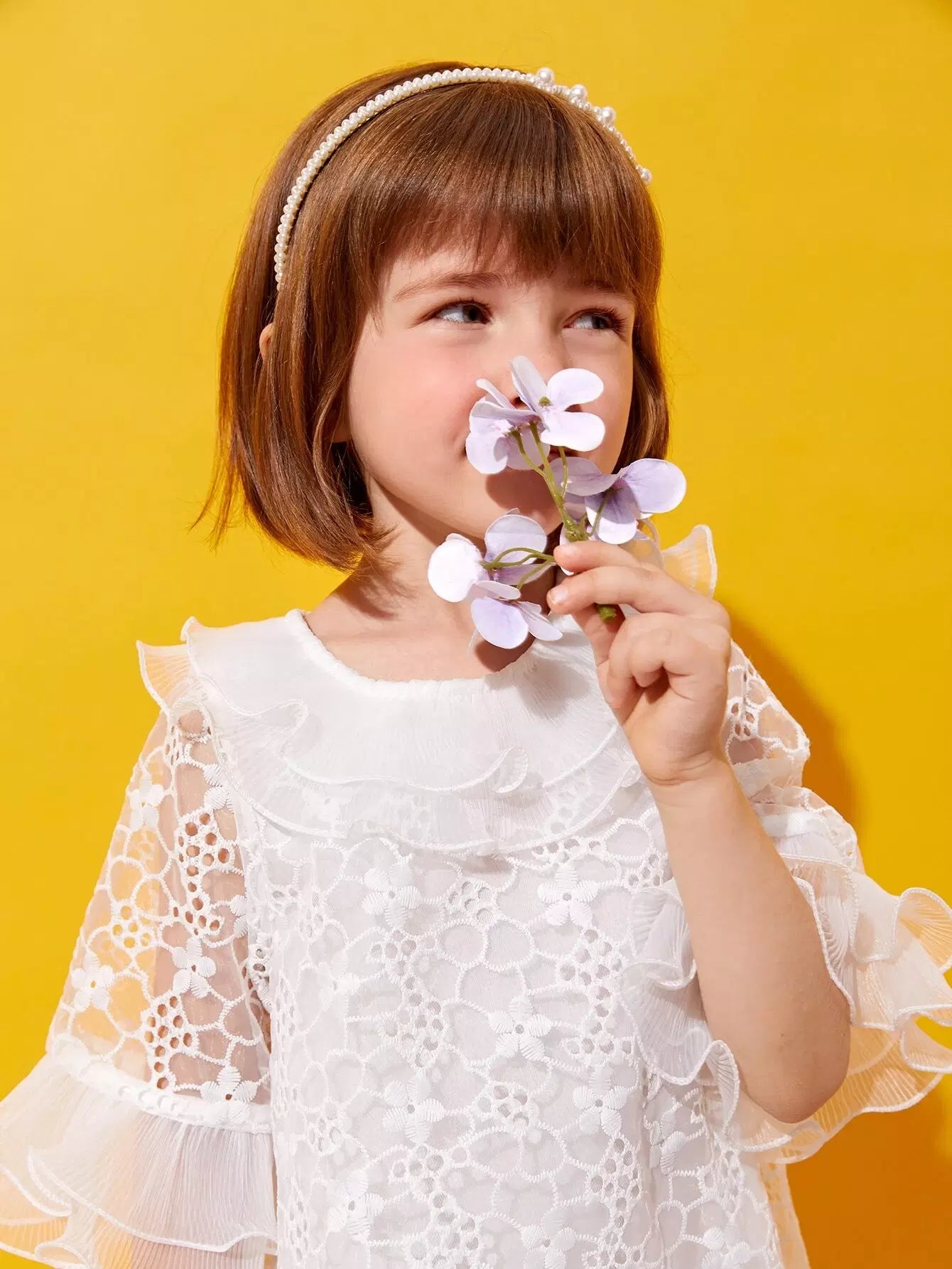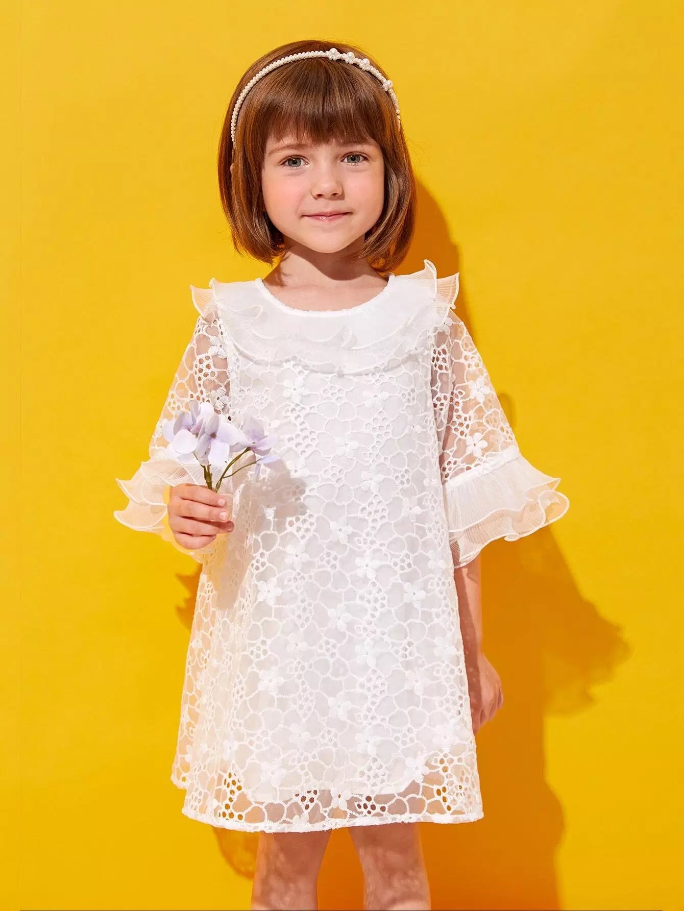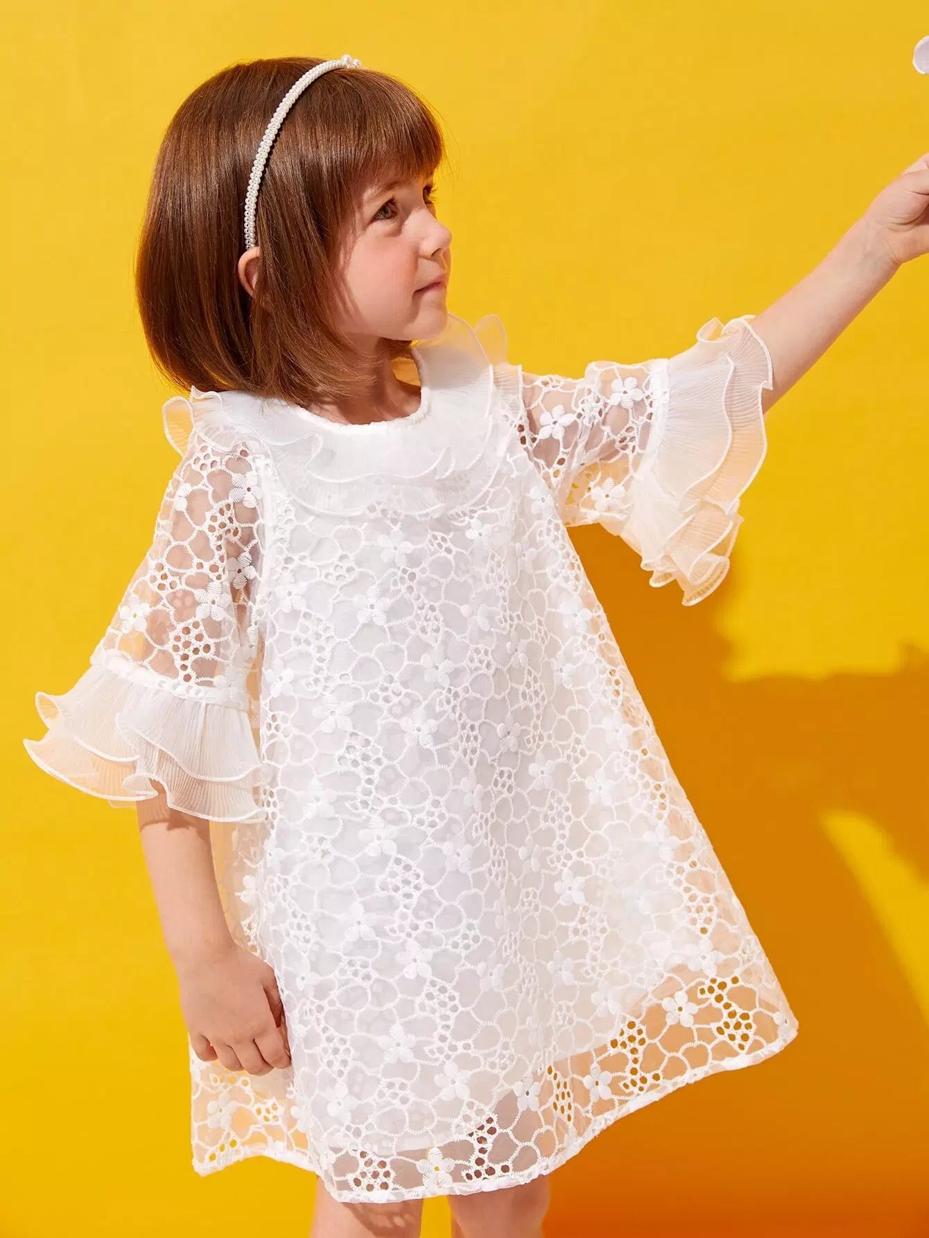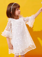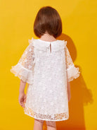 فستان من الأورجانزا المطرز بأكمام منفوشة للفتيات الصغيرات
