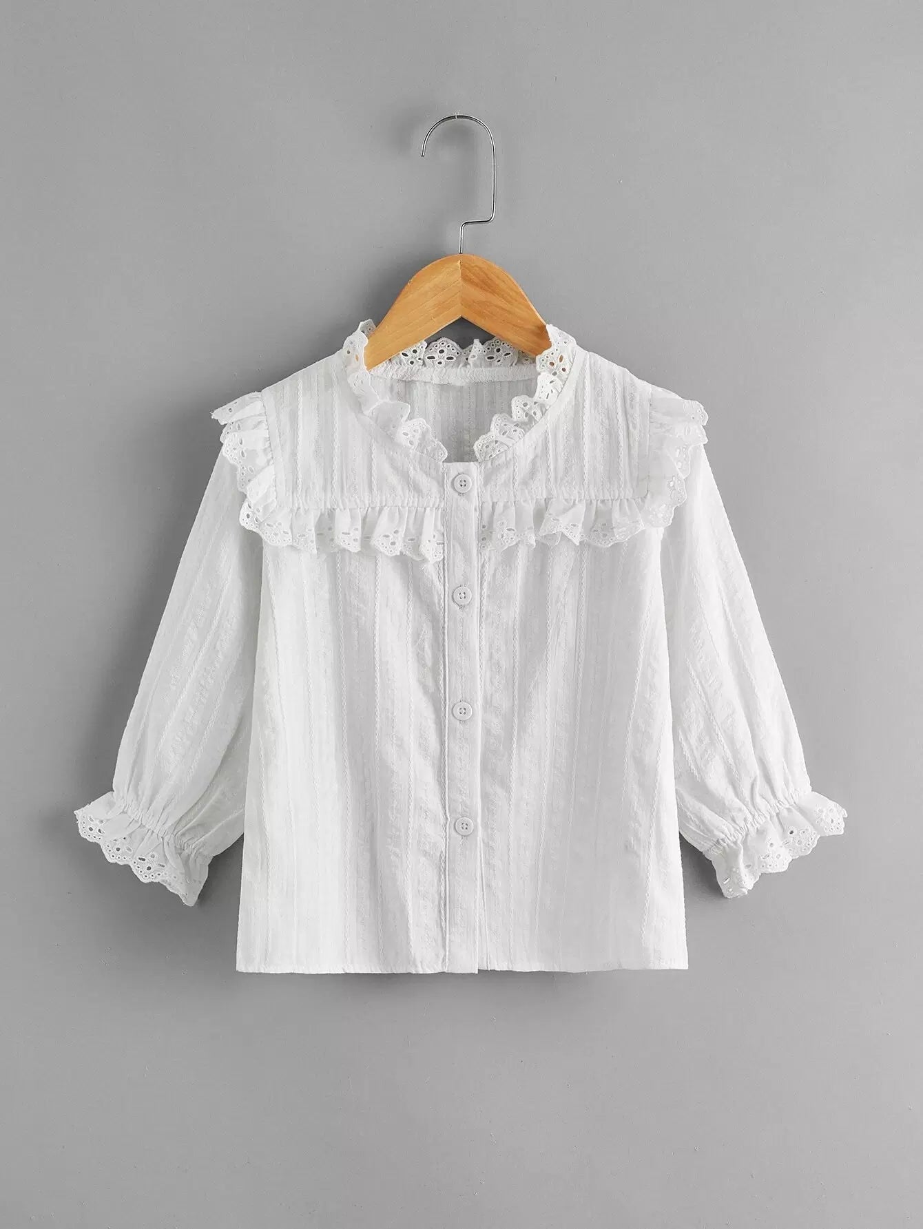 بلوزة مطرزة بتطريز كشكش للبنات الصغار