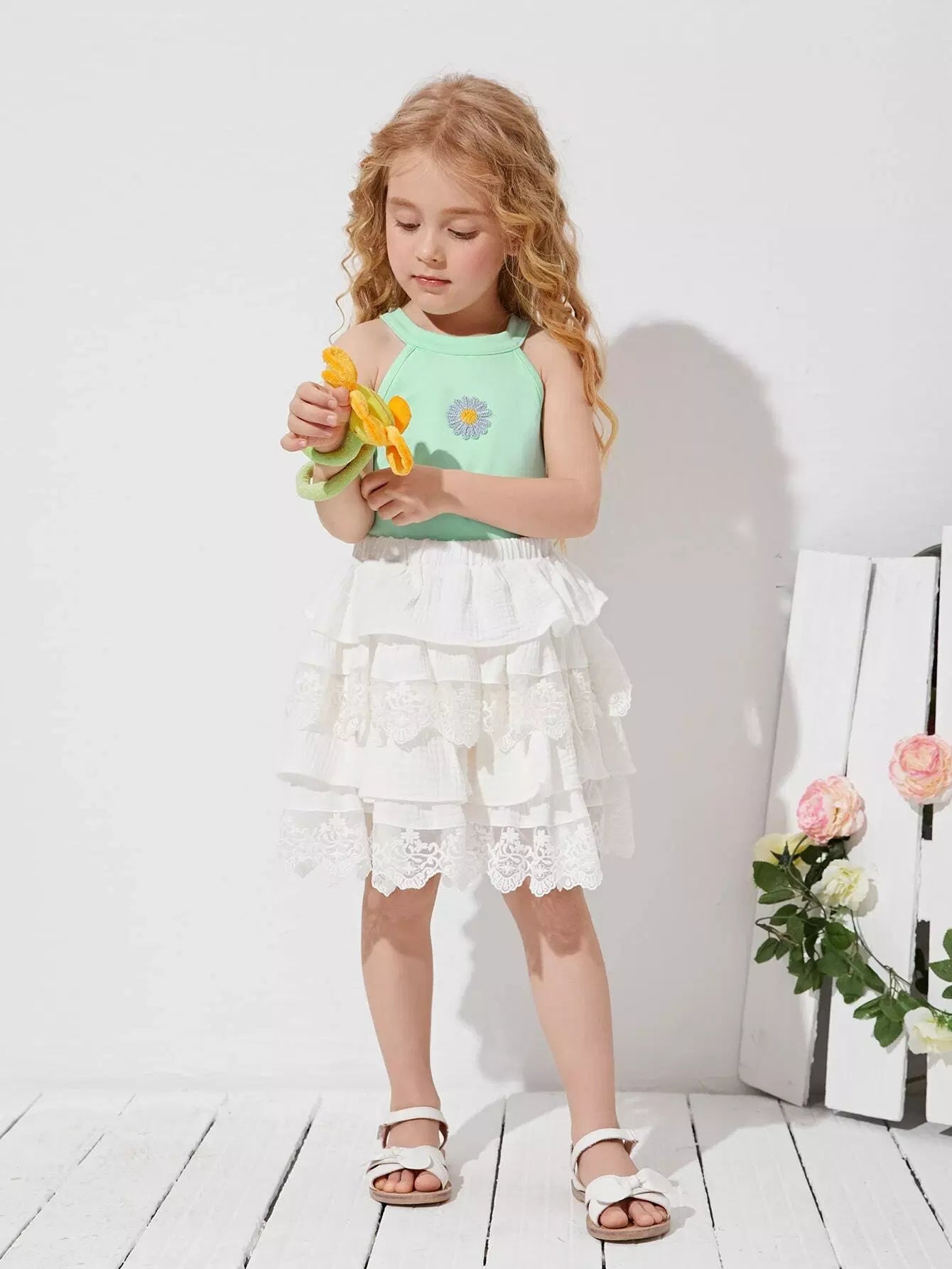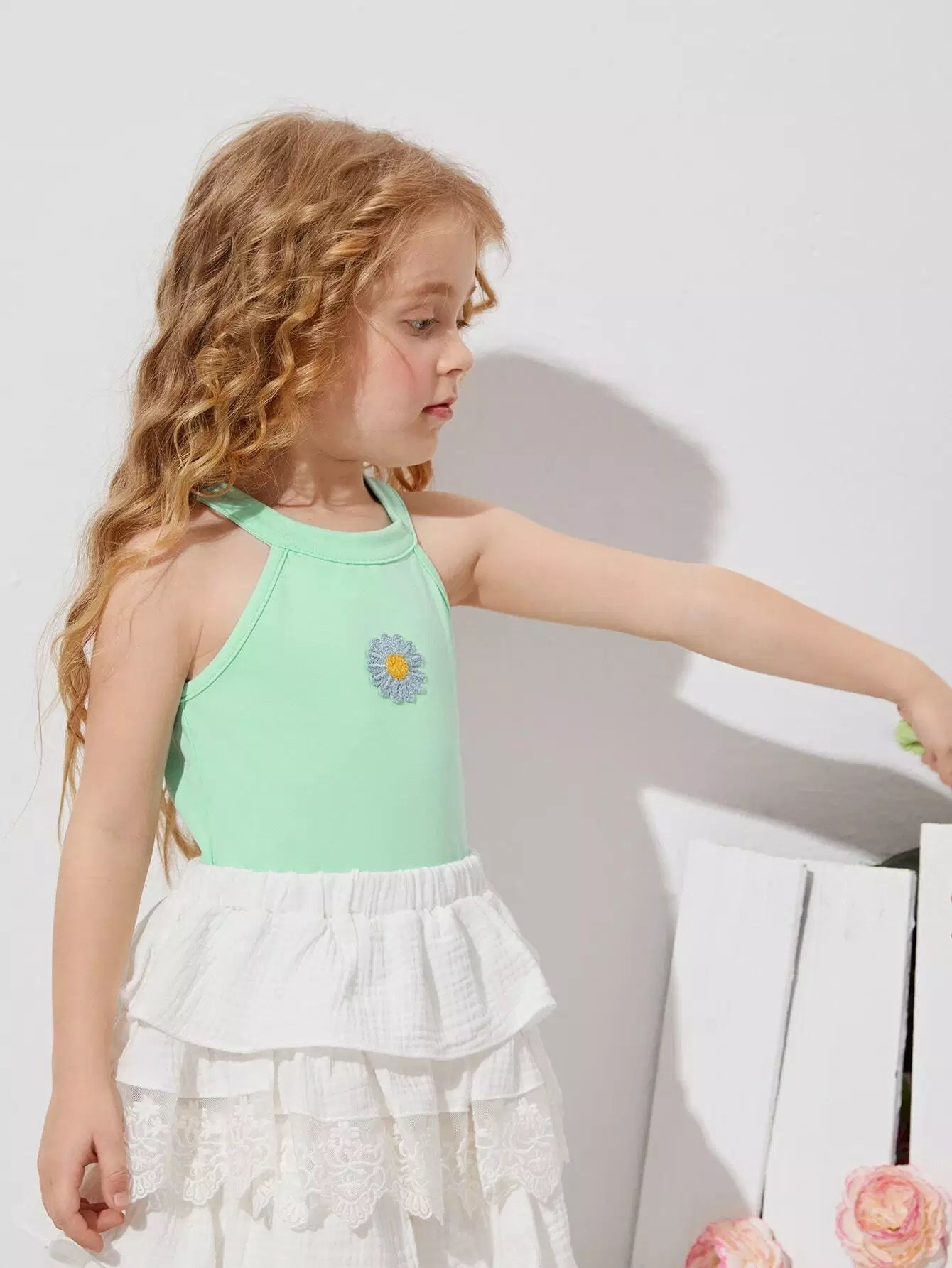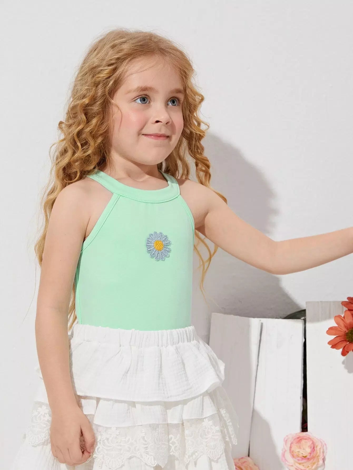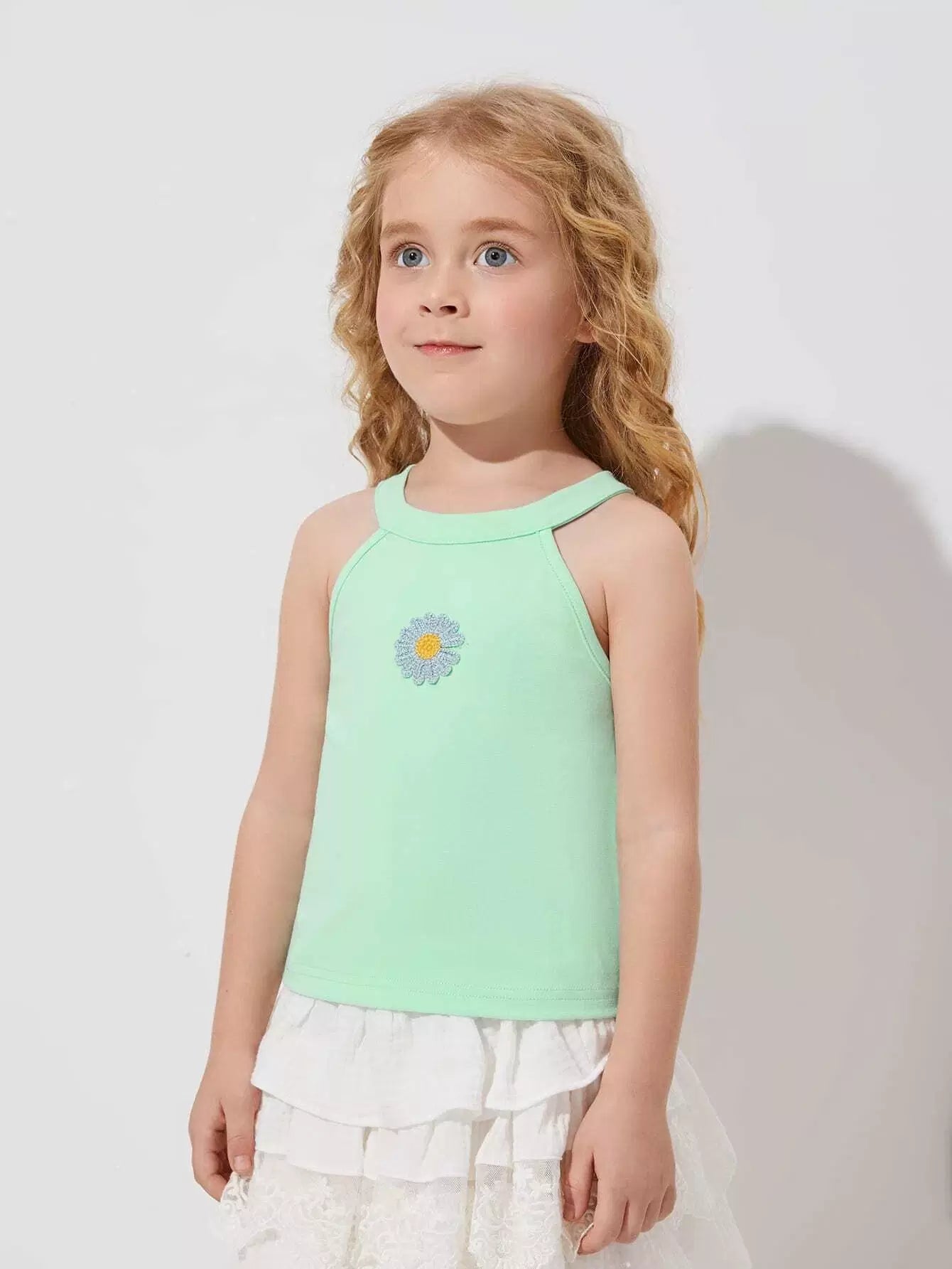 الأطفال - بلوزة هالتر مطرزة بالزهور للفتيات الصغيرات