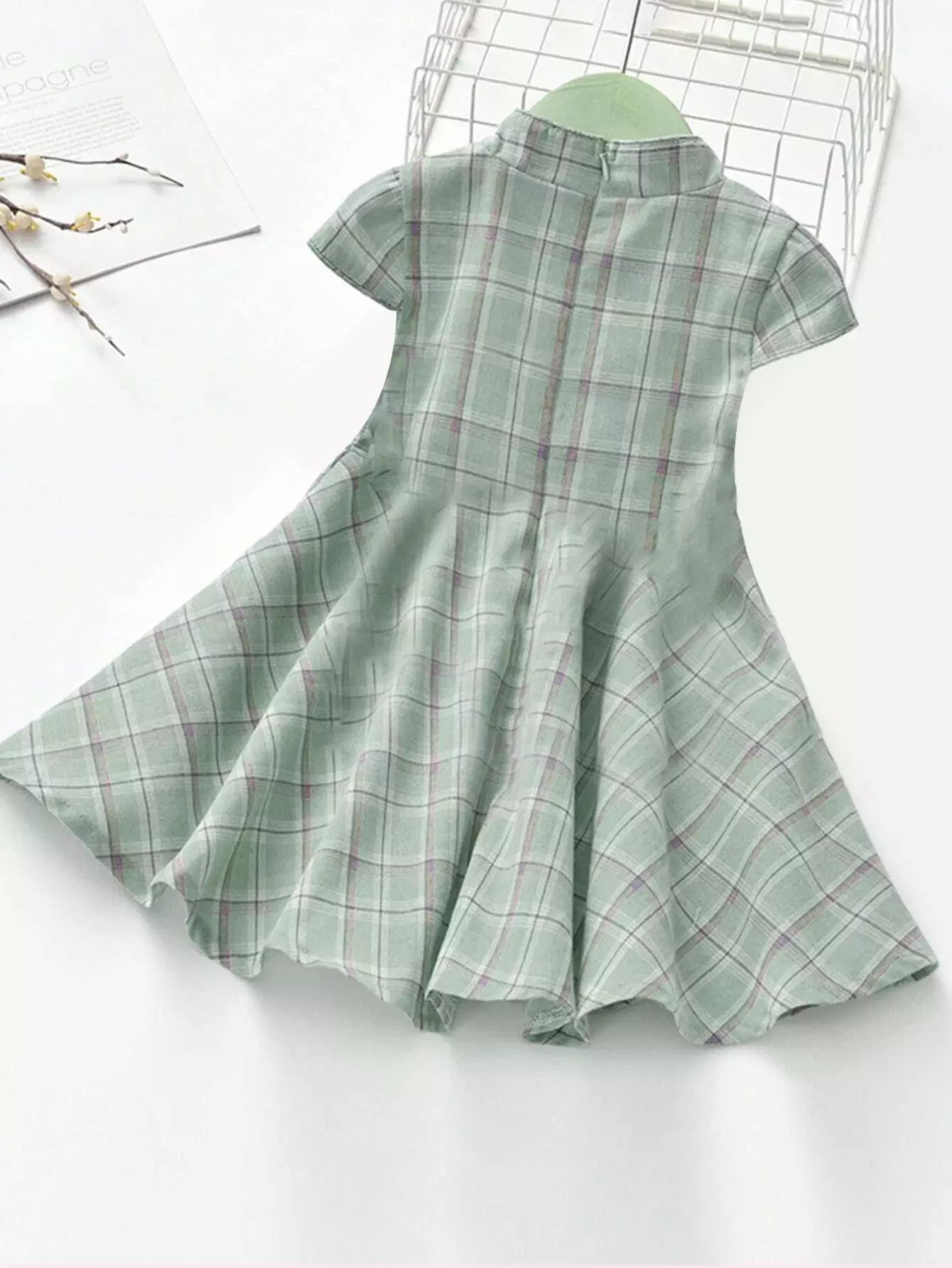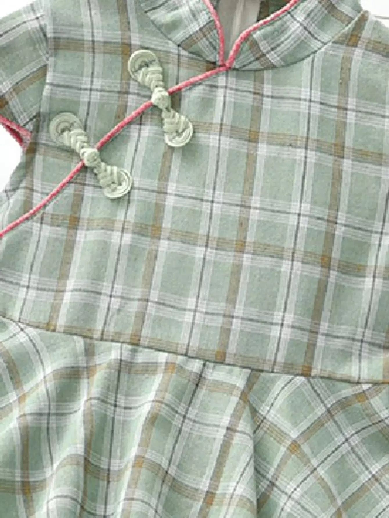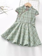 فستان سوينغ منقوش بأزرار ضفدع منقوشة للبنات الصغار