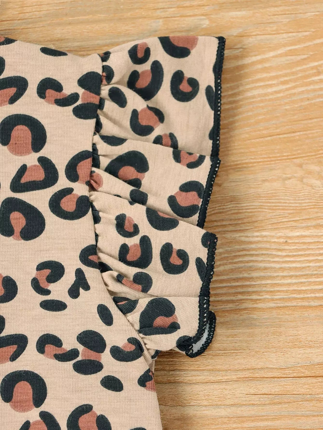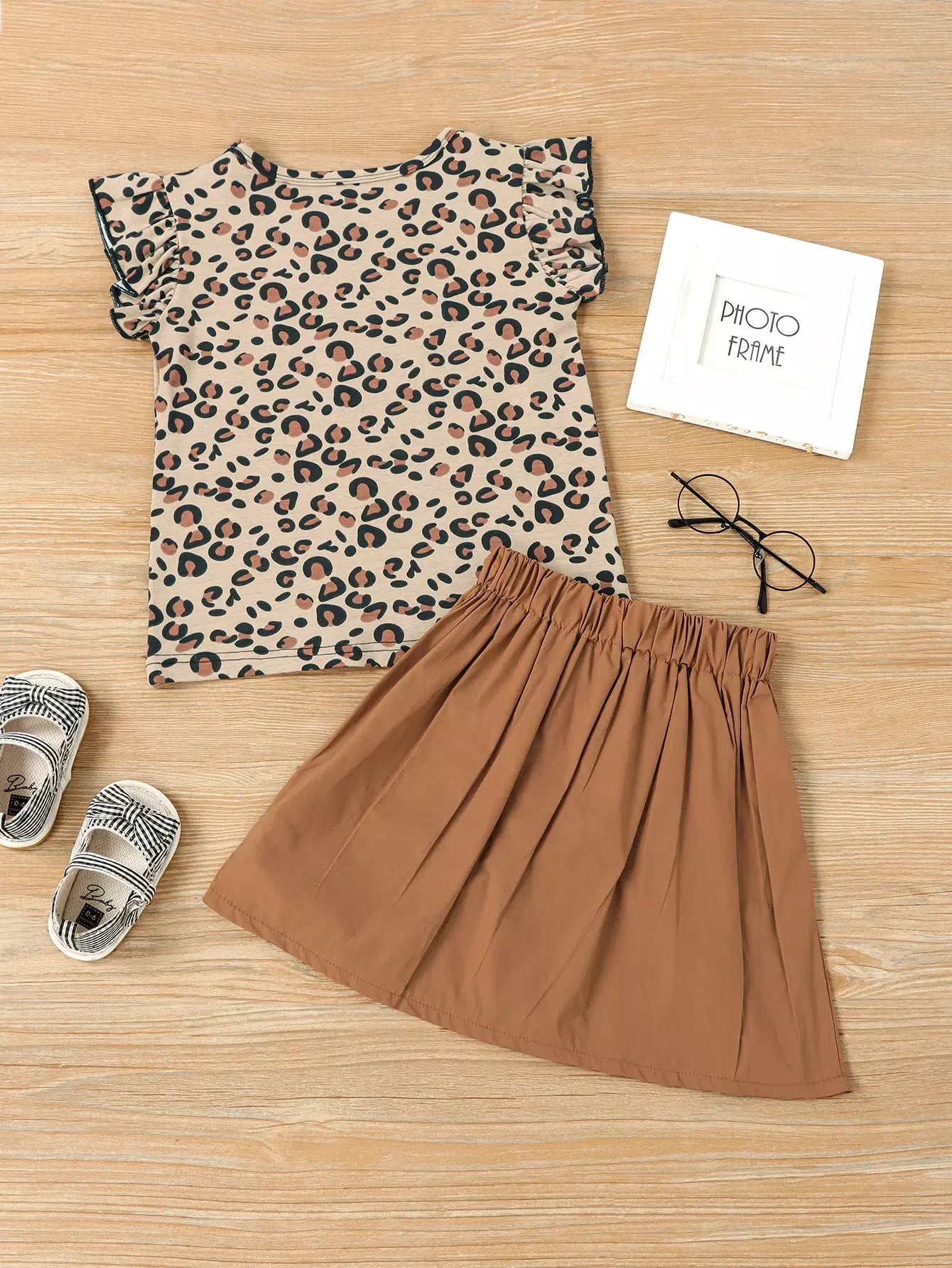 تي شيرت وتنورة فتيات صغيرات بقصّة كشكش بنقشة جلد النمر