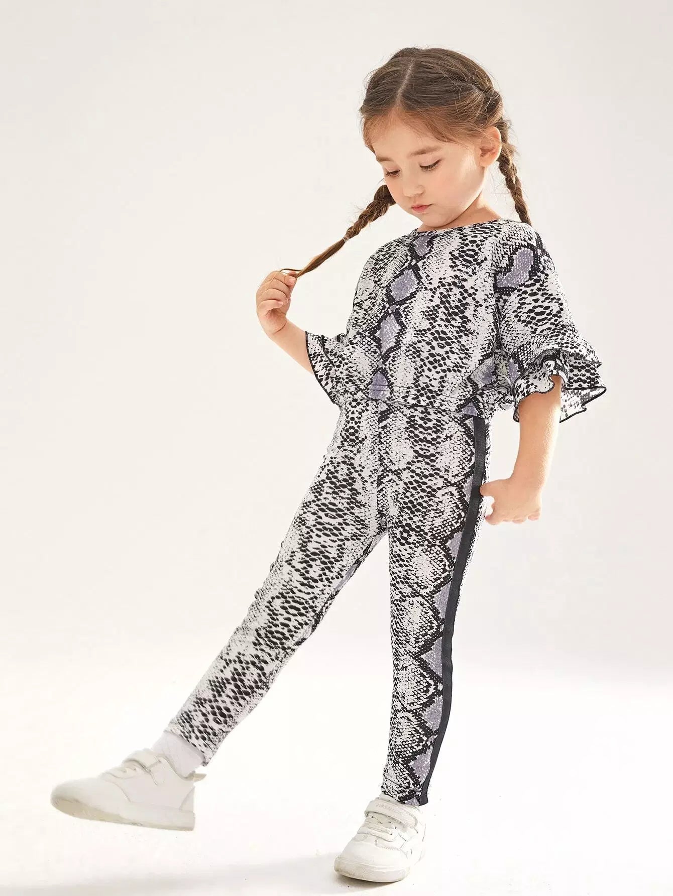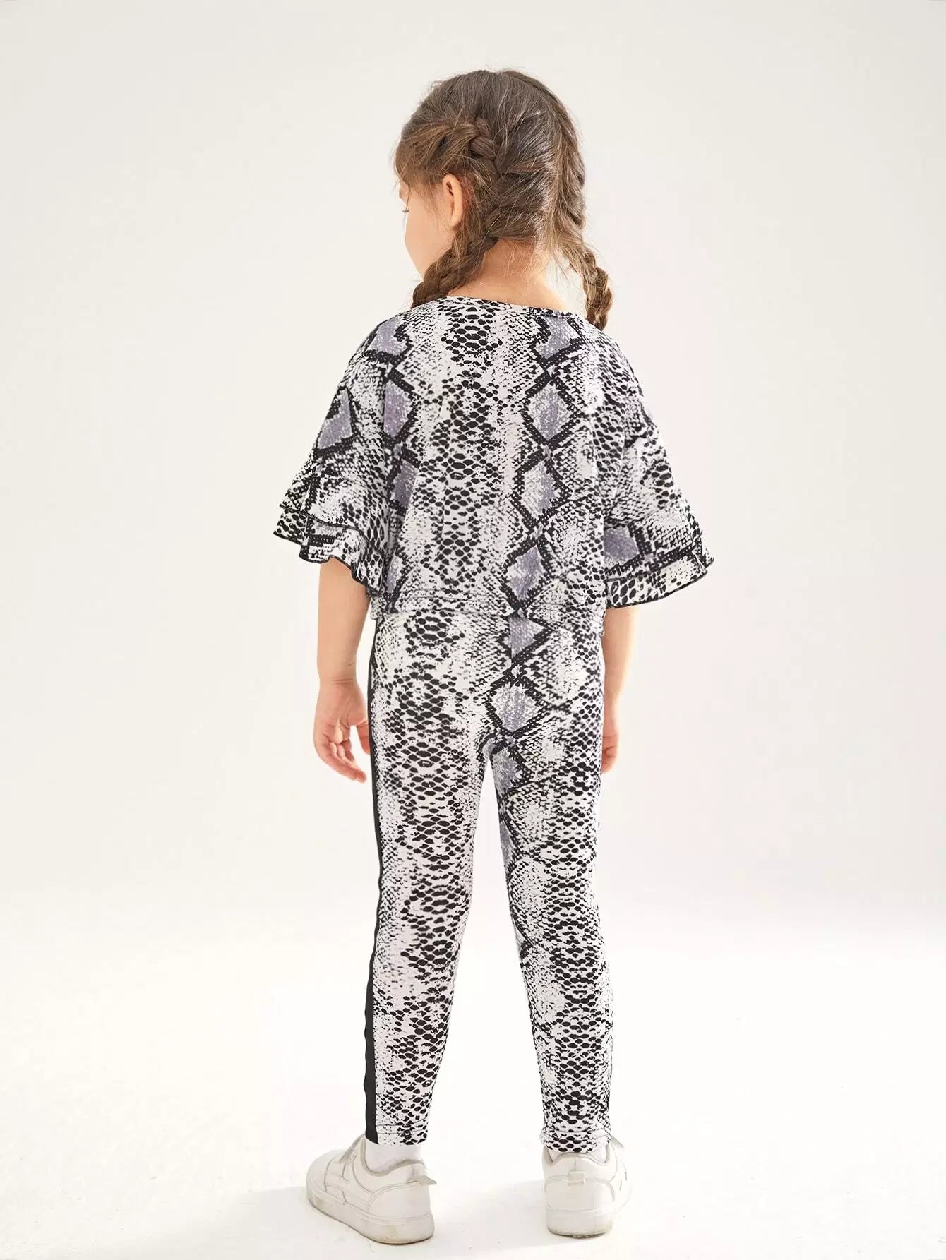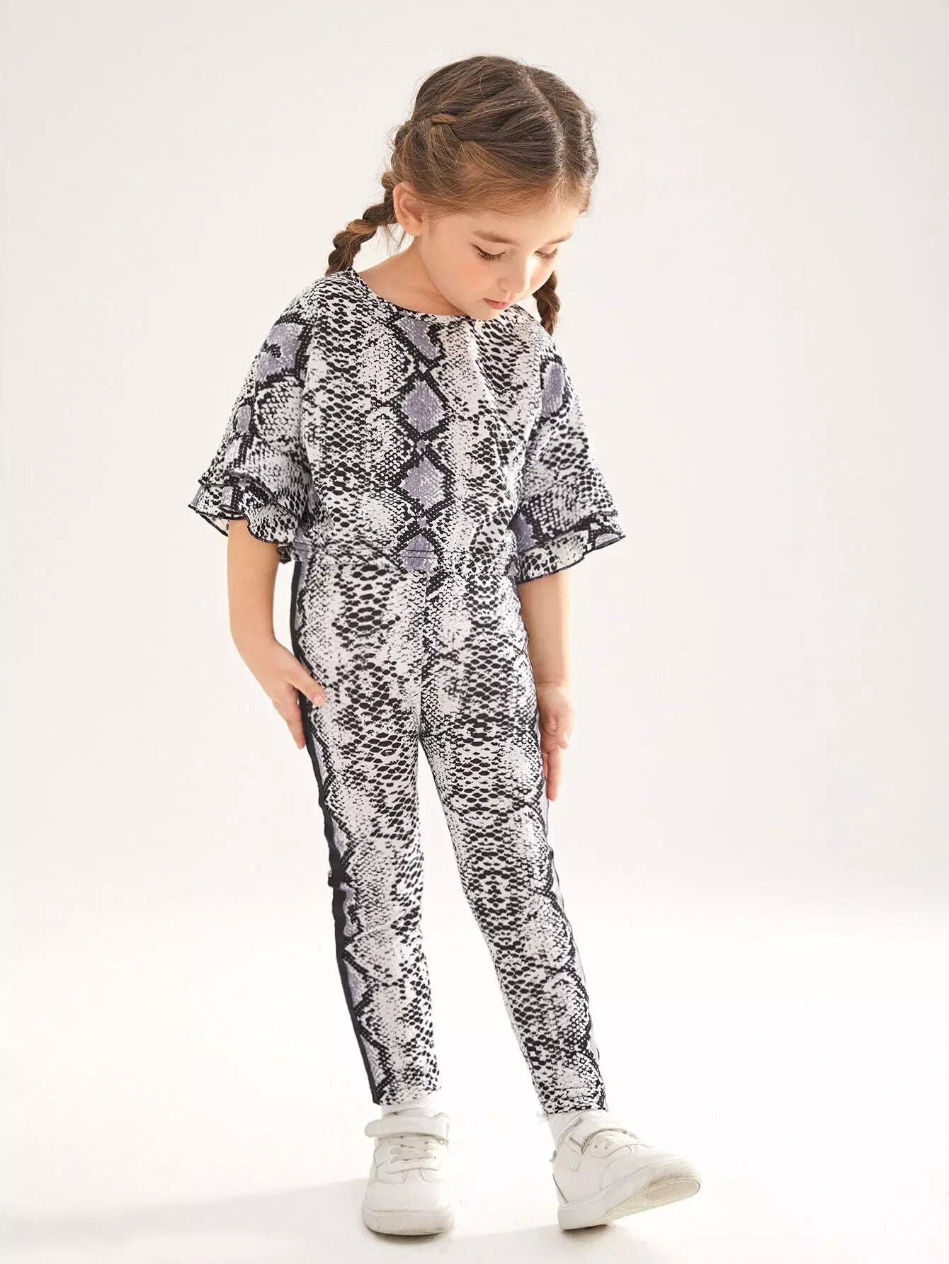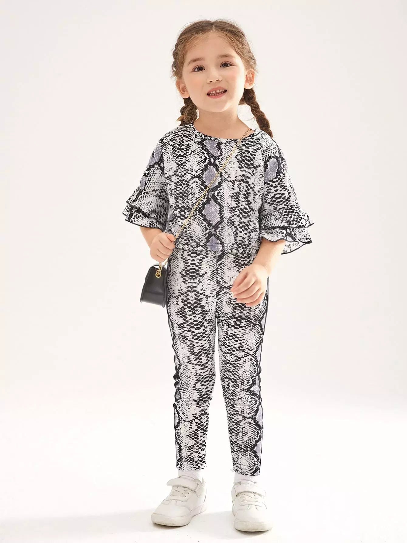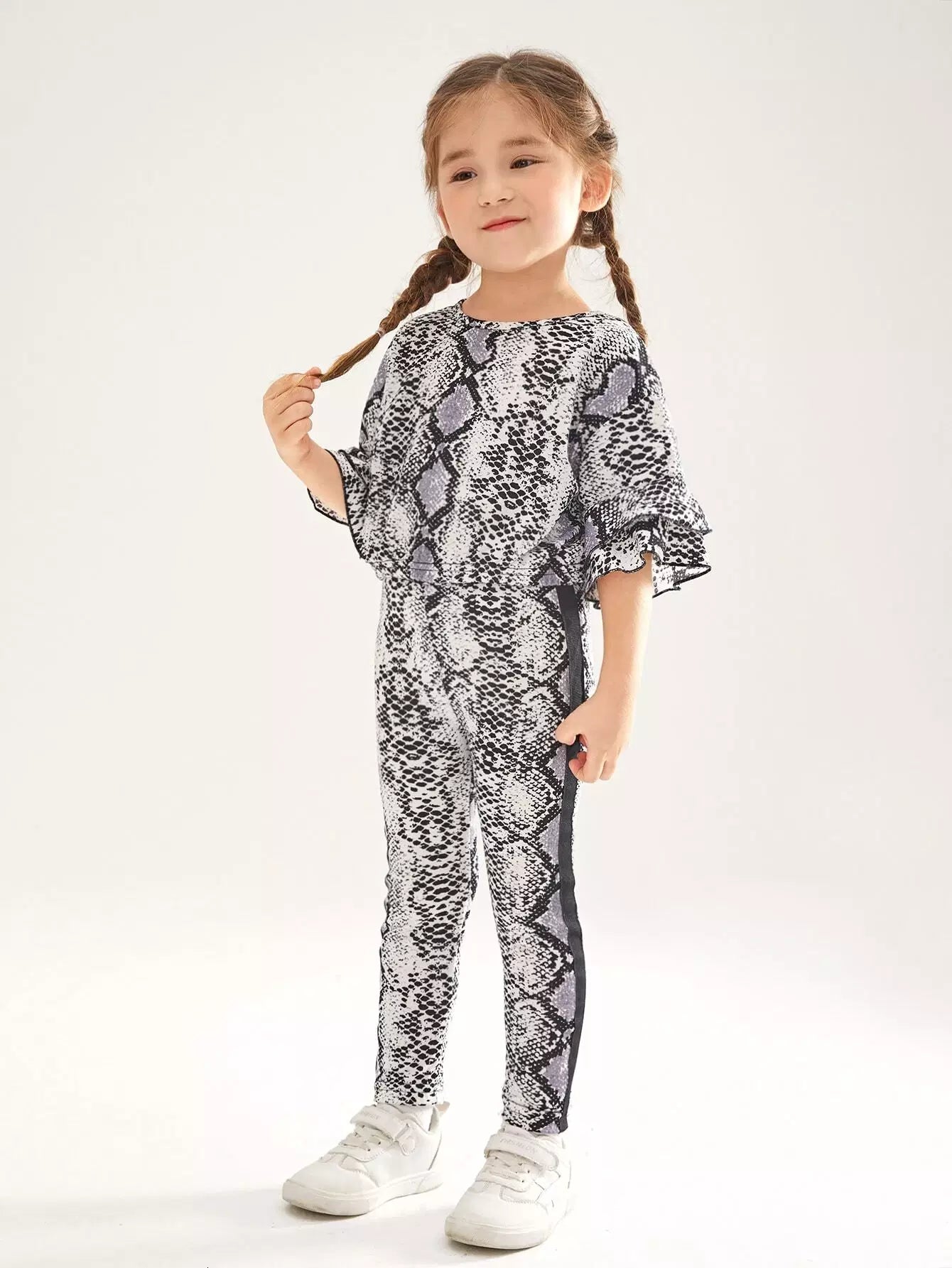بلوزة بأكمام مكشكشة وطبعة جلد الثعبان للبنات الصغار وبنات صغيرات