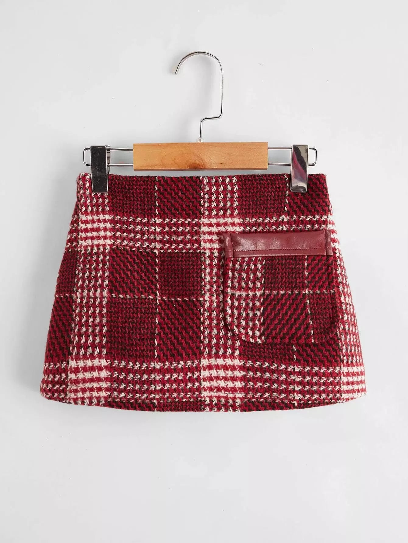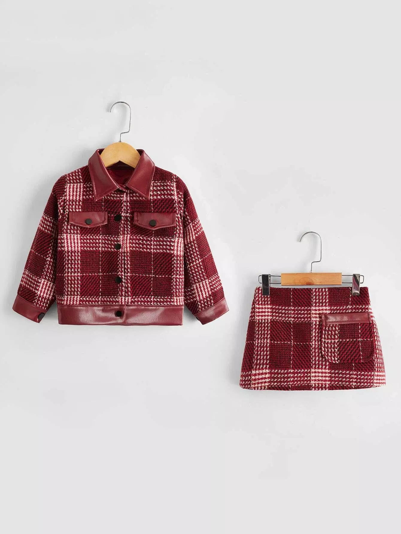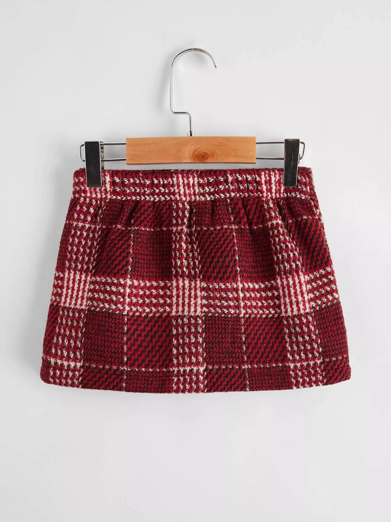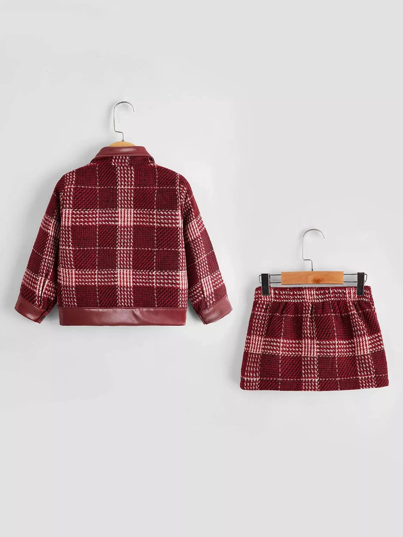 جاكيت وتنورة تويد منقوشة بنقشة هاوندستوث للبنات الصغار