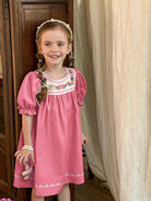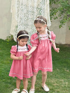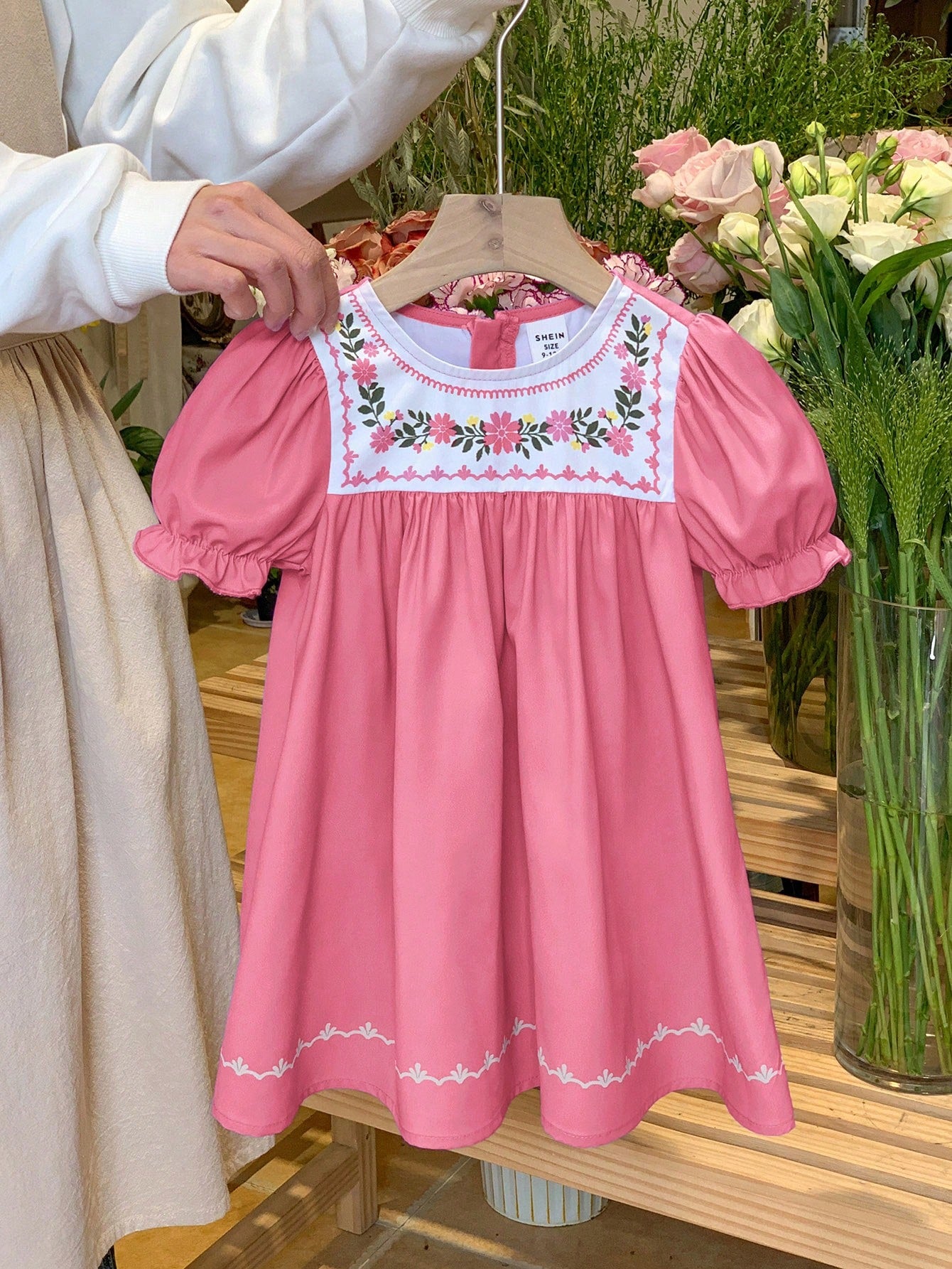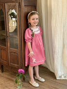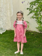 LMoss Kids Young Girl Ditsy Floral Round Neck Puff Sleeve Fitted Casual Dress
