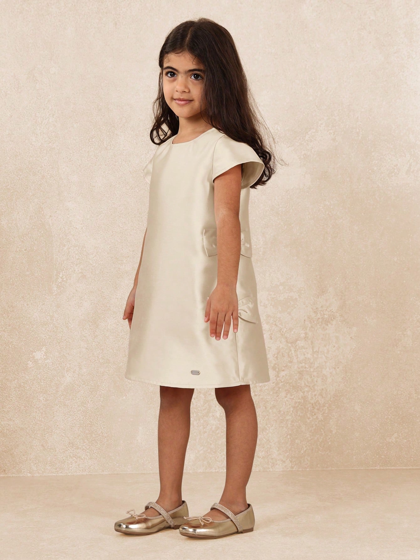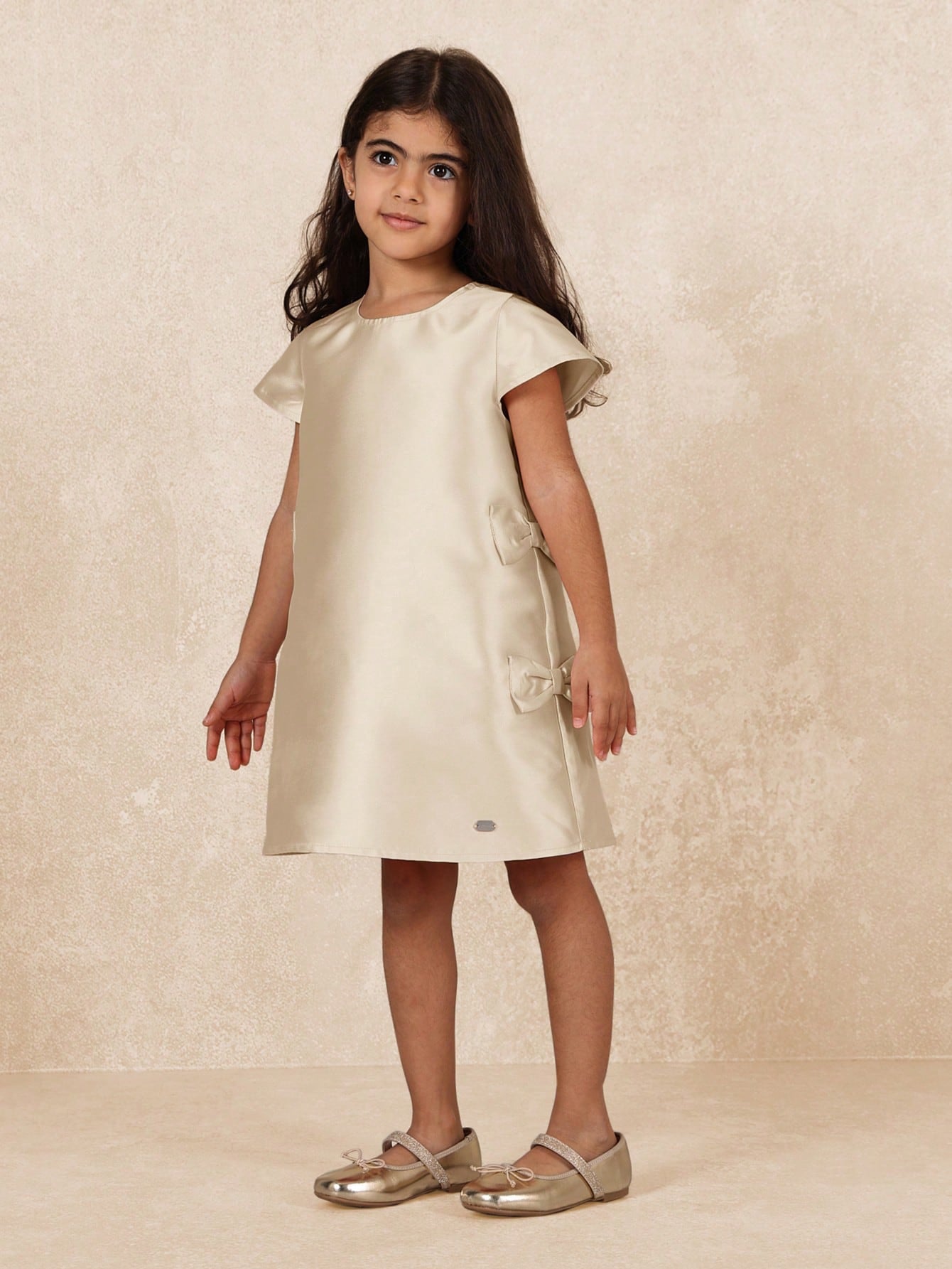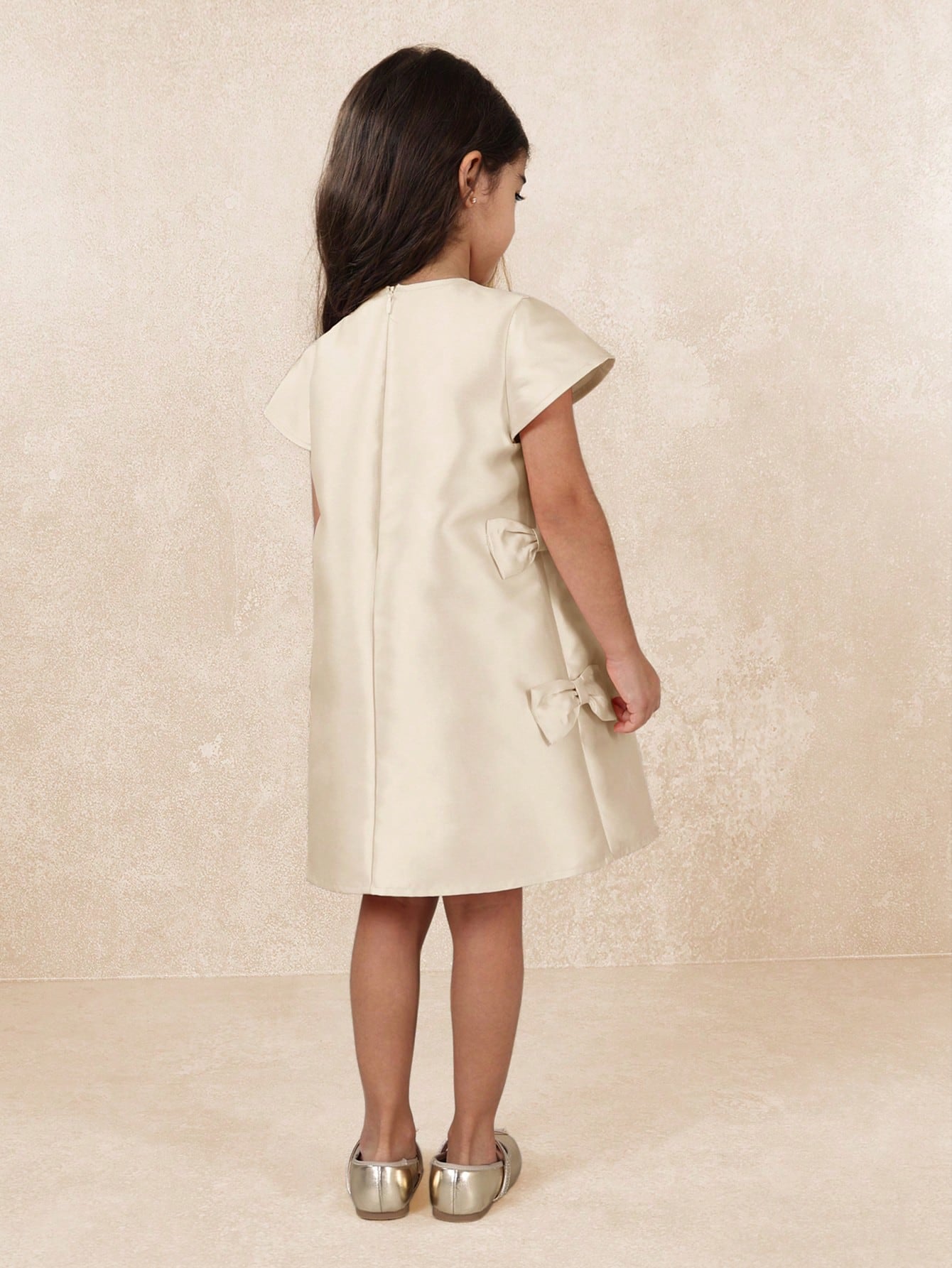 kids SUMWON Elegant Double Bow Shift Party Dress Flutter Sleeves Special Occasion Holiday Wedding Easter Flower Girl Birthday Celebration Formal Wear