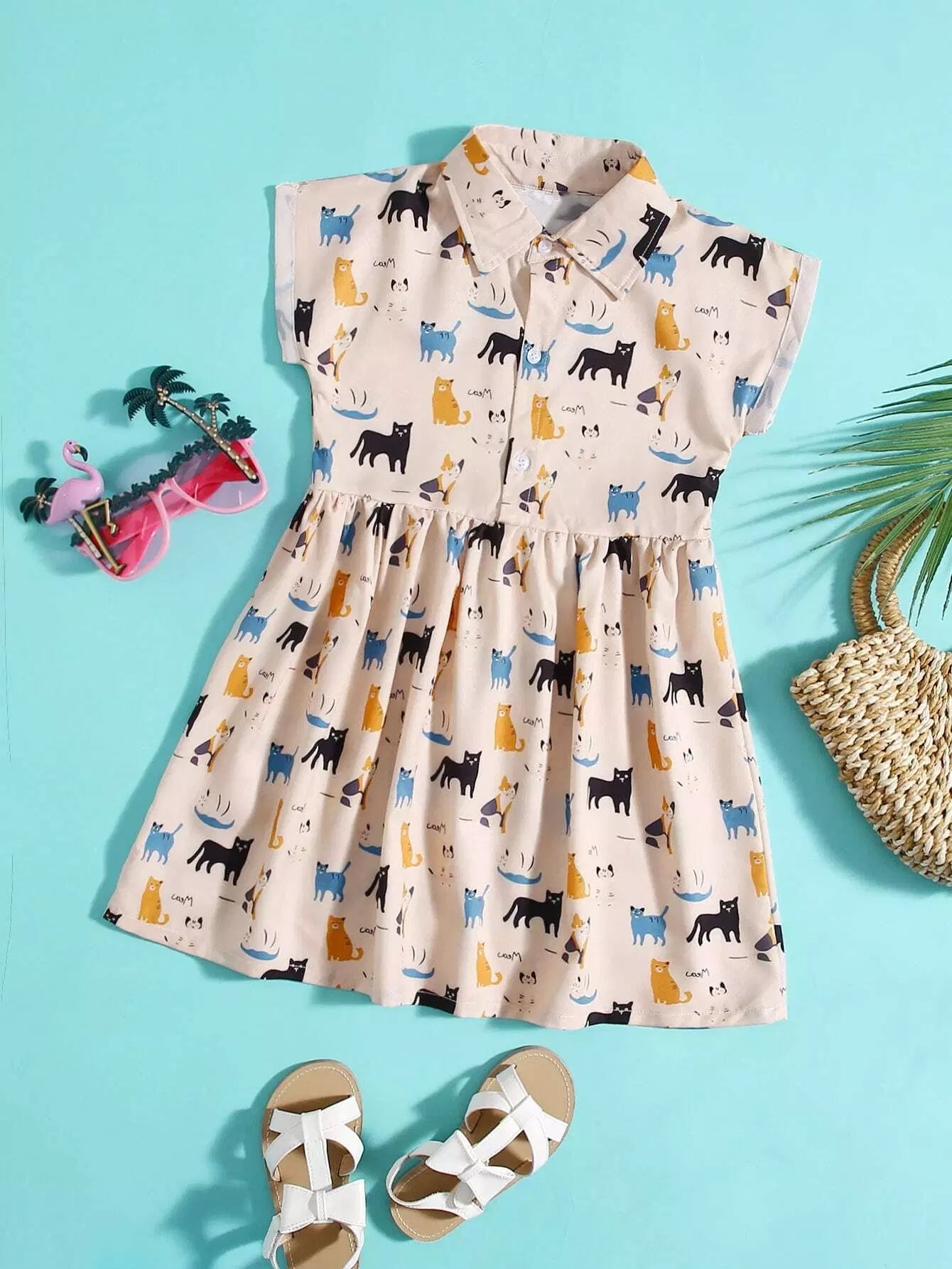 فستان سموك كارتون جرافيك كرتوني للبنات بقطعة واحدة