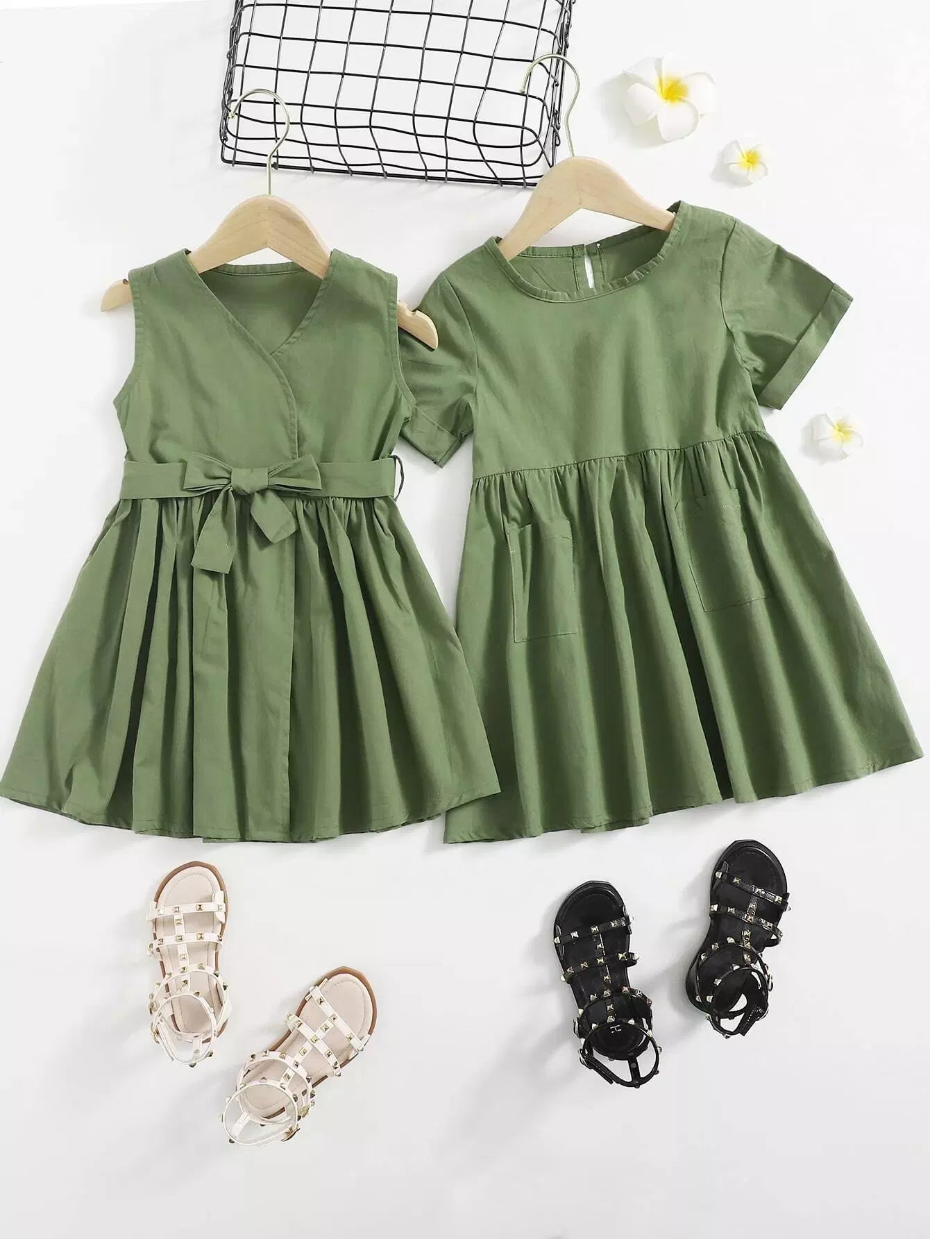 فستان فضفاض من الأمام للفتيات الصغيرات قطعة واحدة بدون حزام
