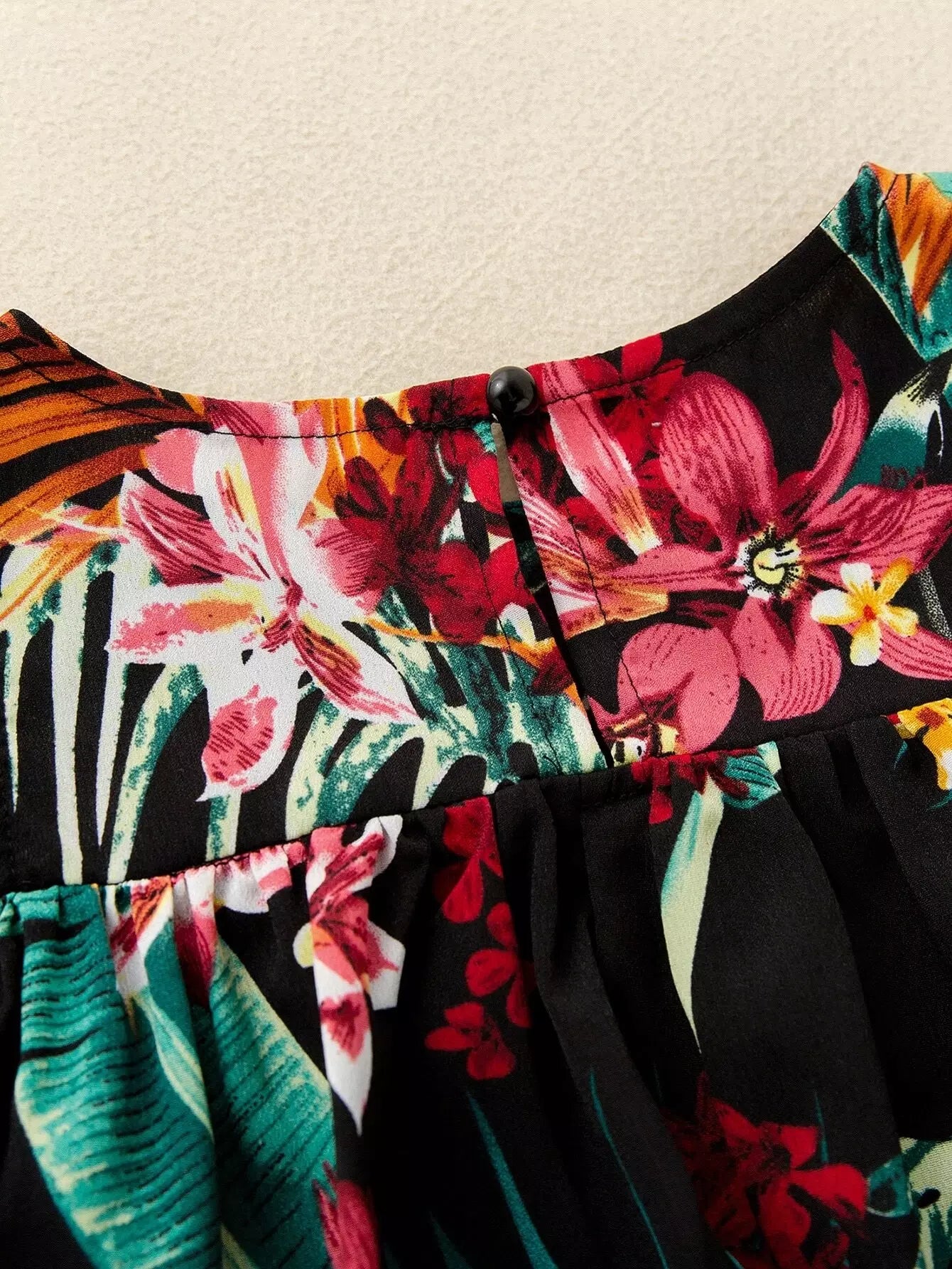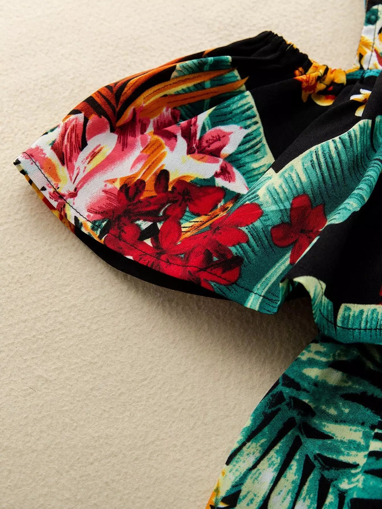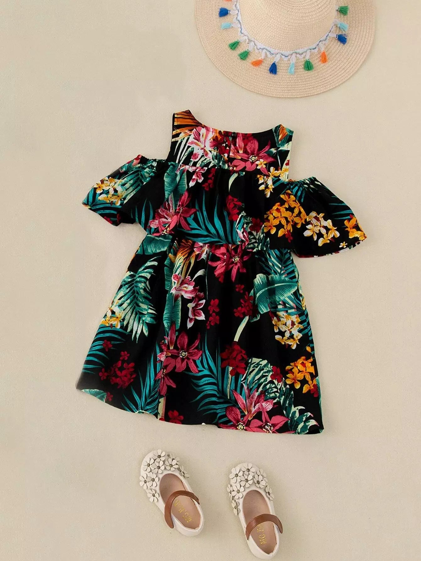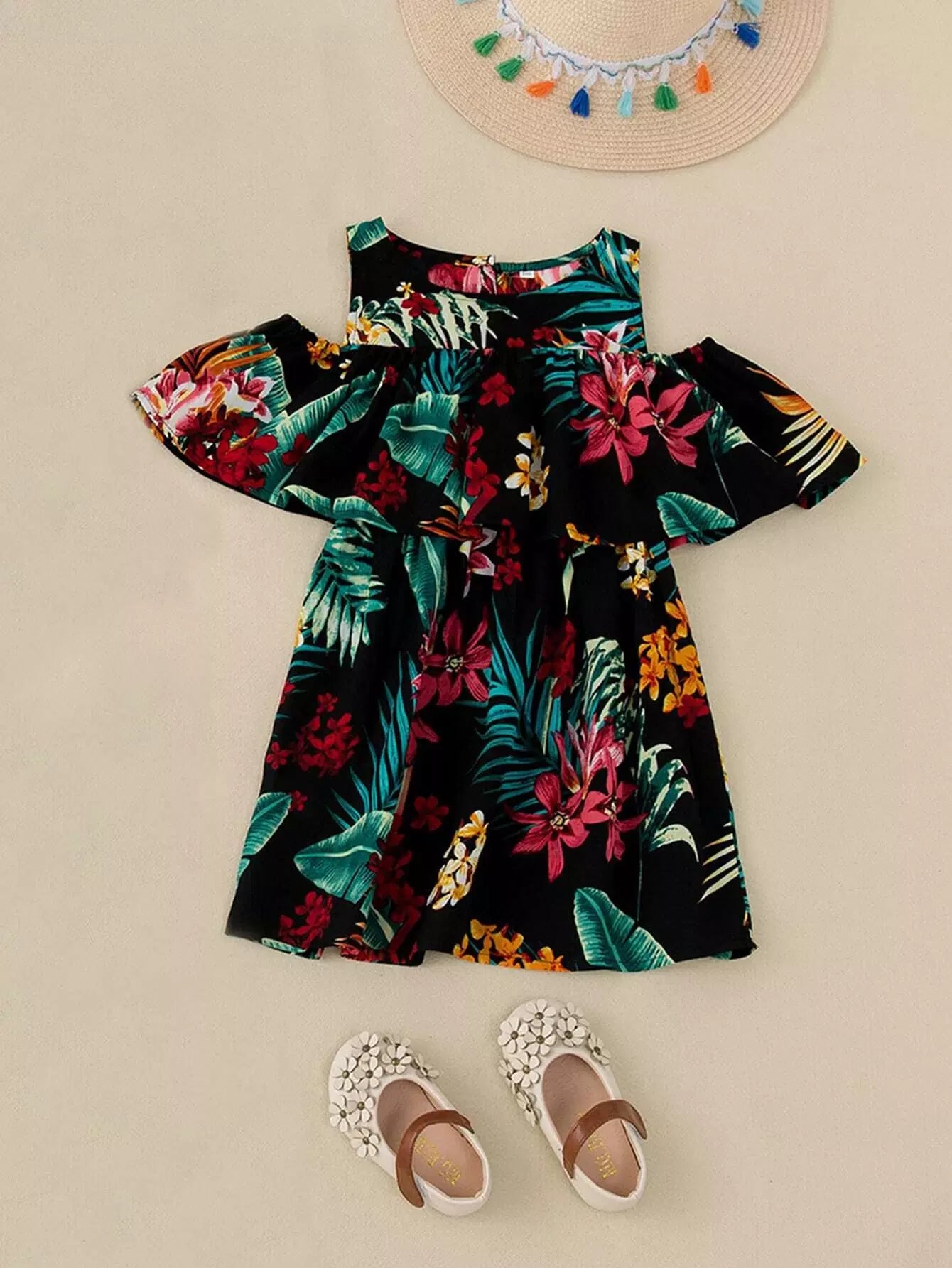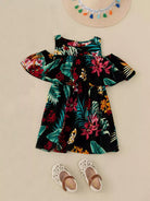 فستان أكتاف بارد مطبوع بطبعة استوائية للبنات الصغار 1 قطعة