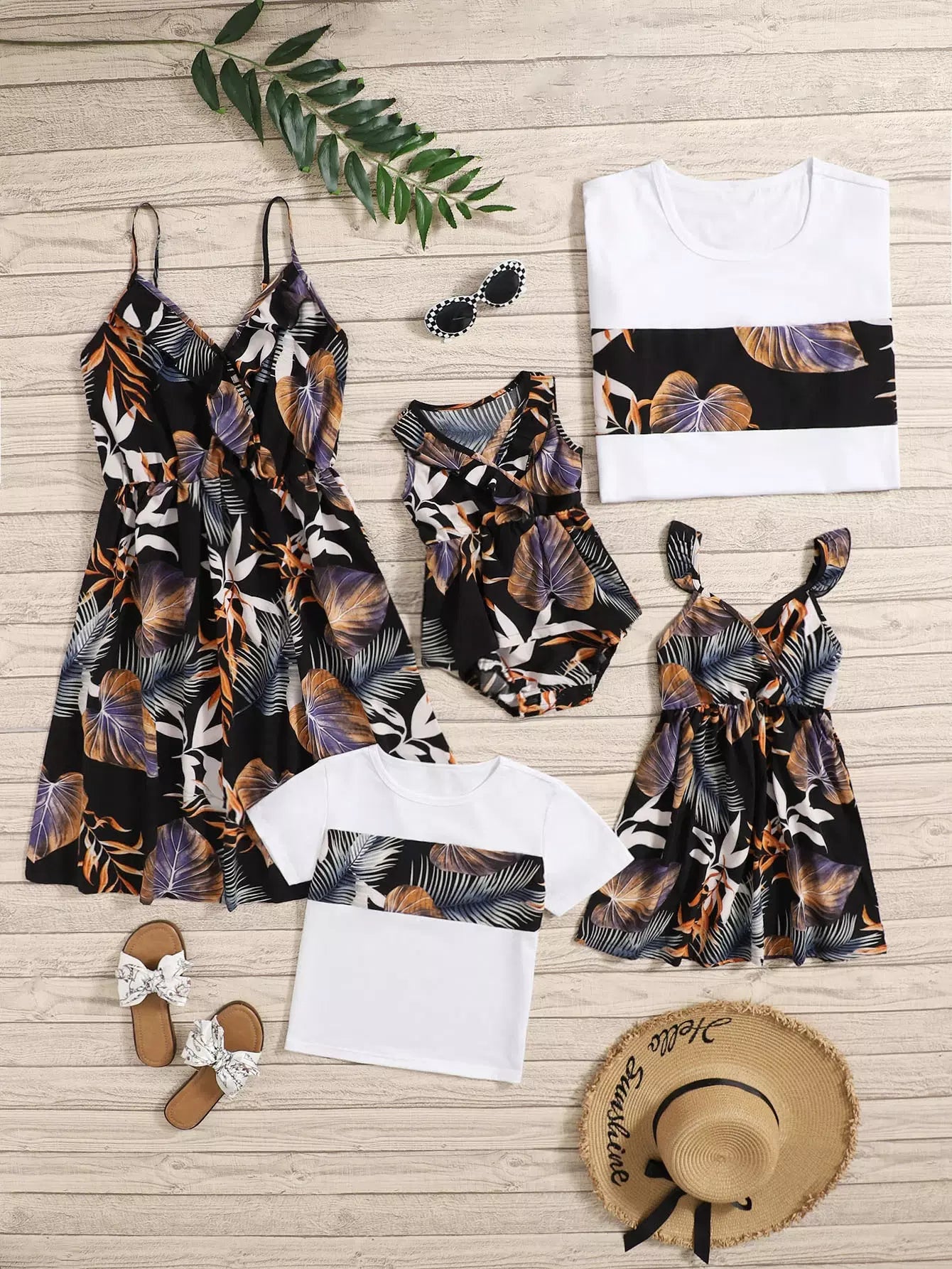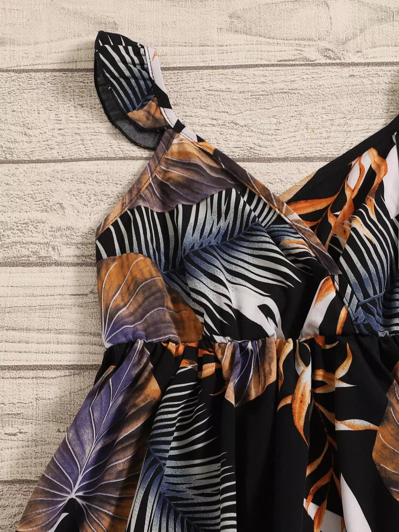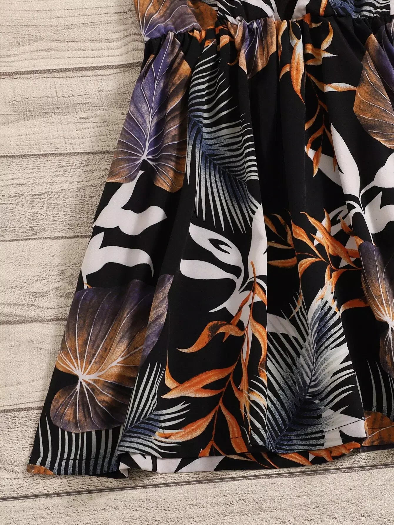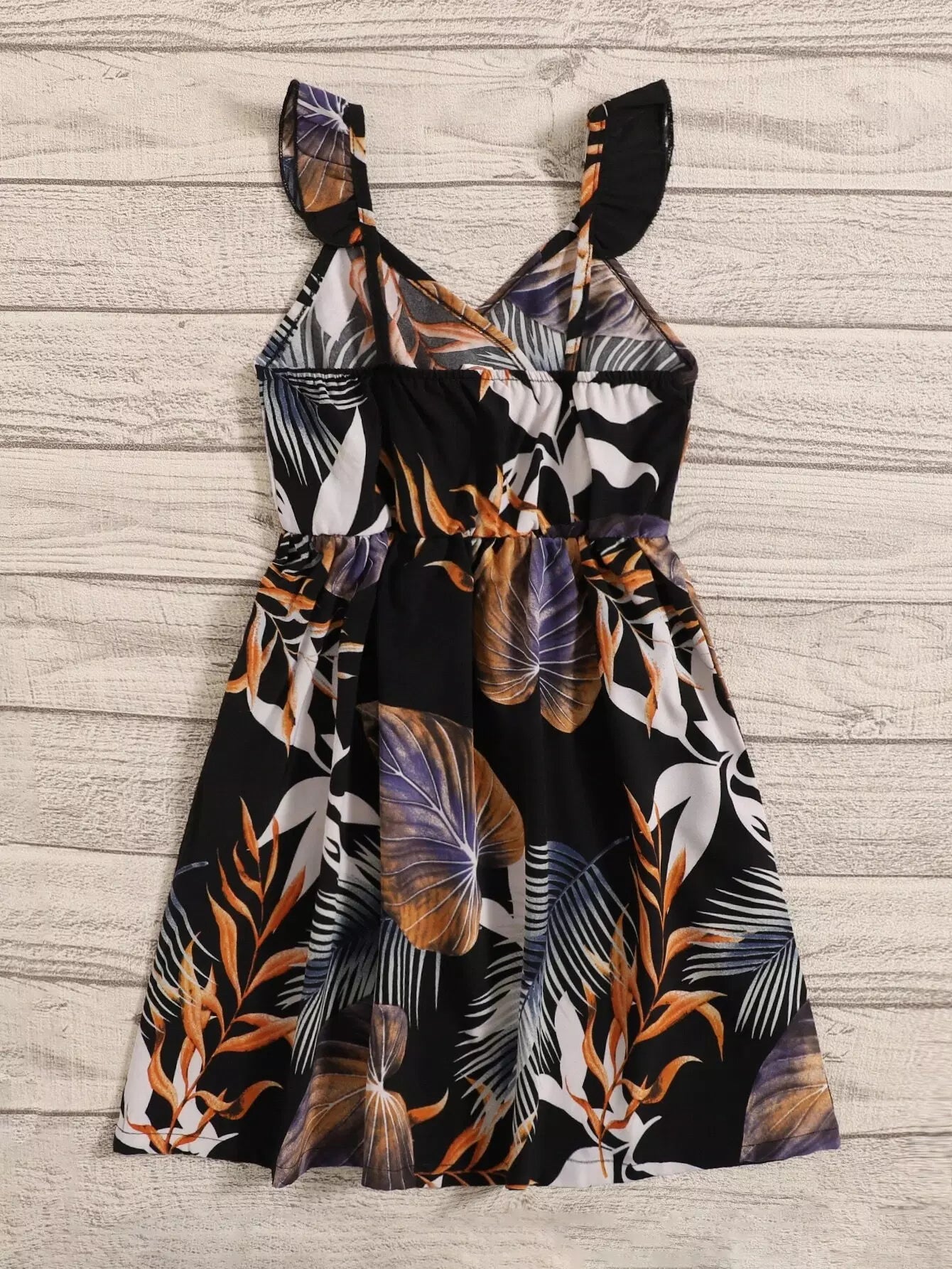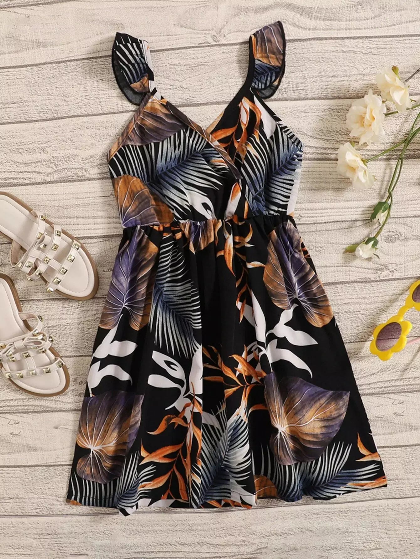 فستان بناتي صغيرات 1 قطعة طبعة استوائية بطبعة كشكش للبنات