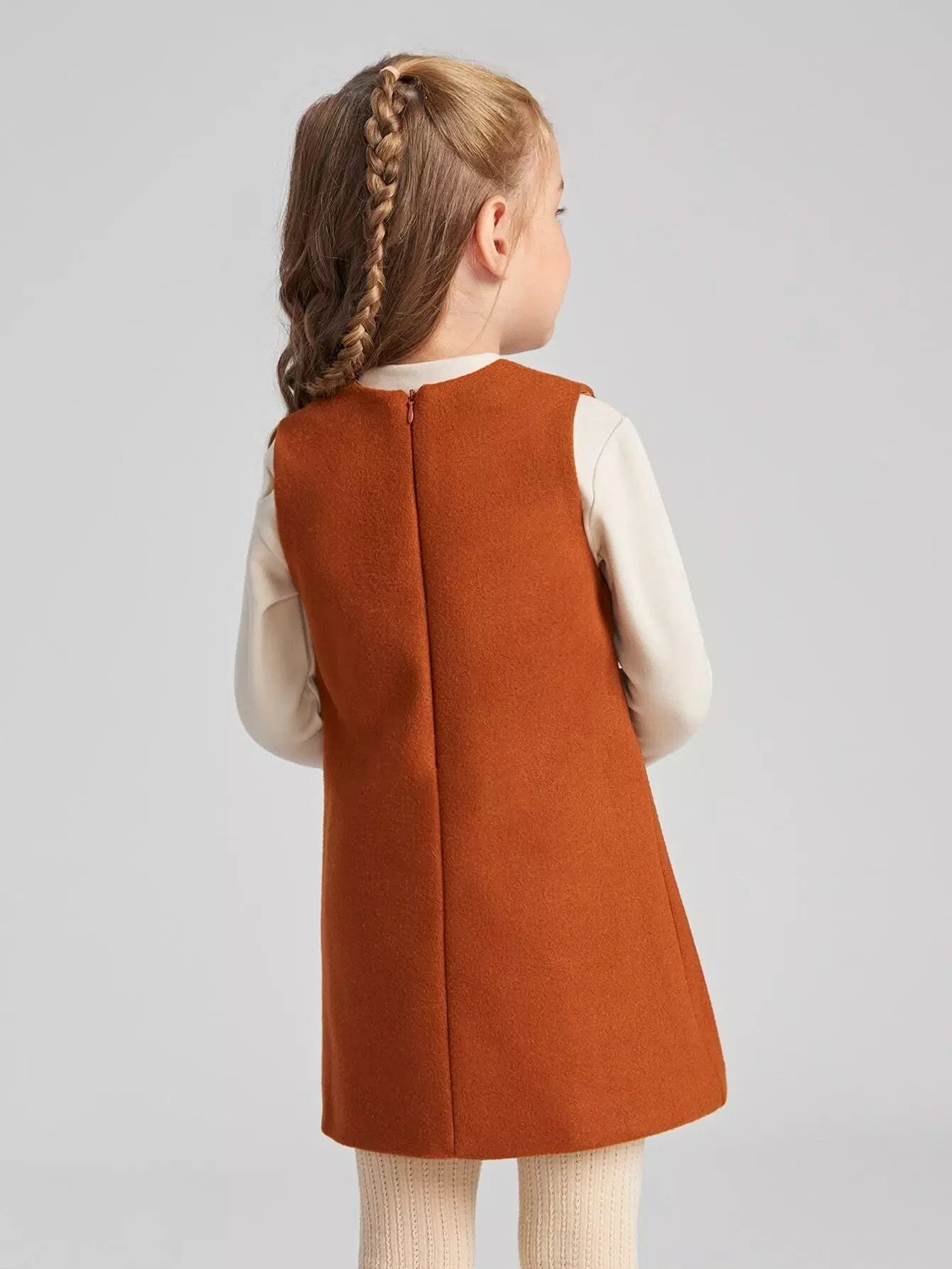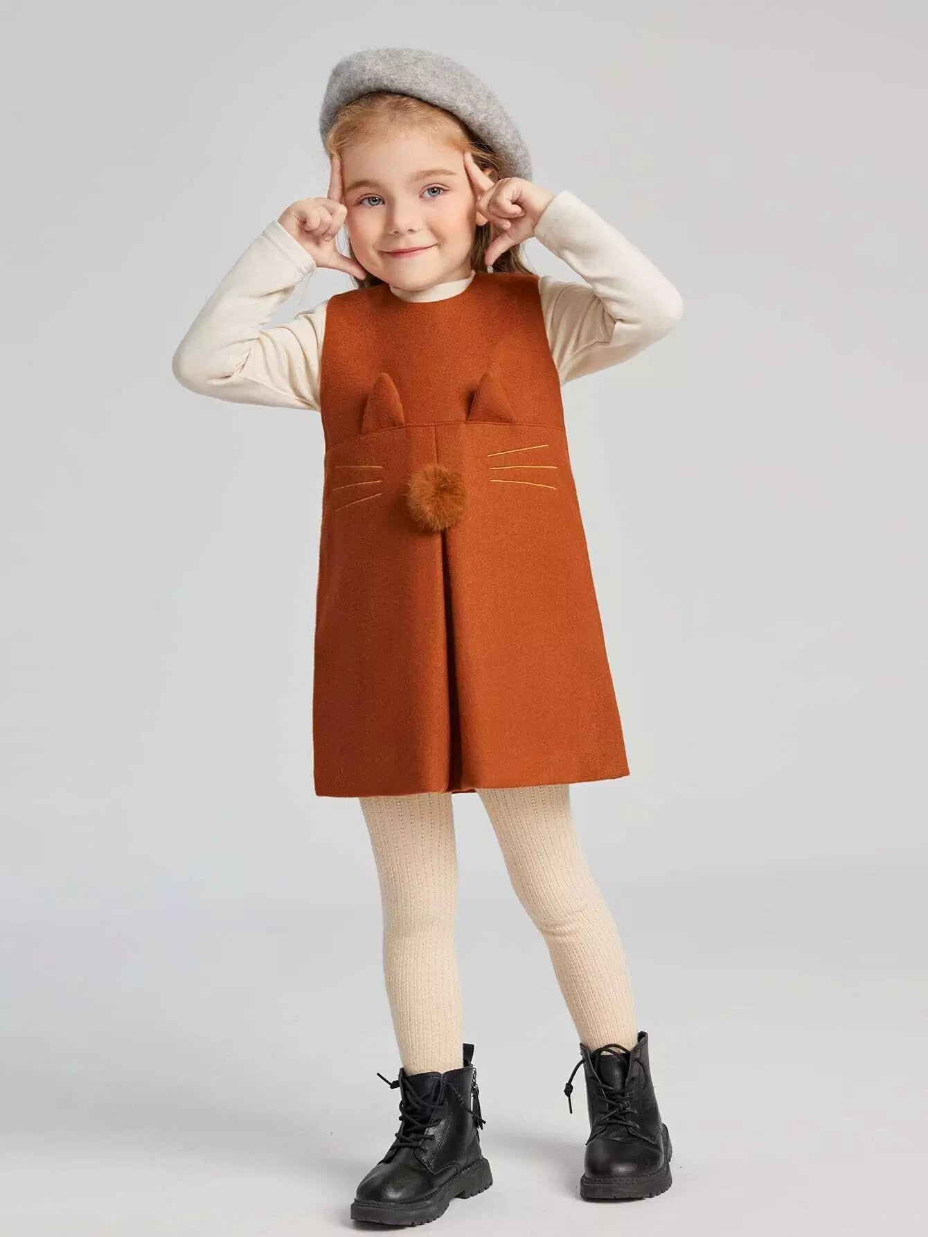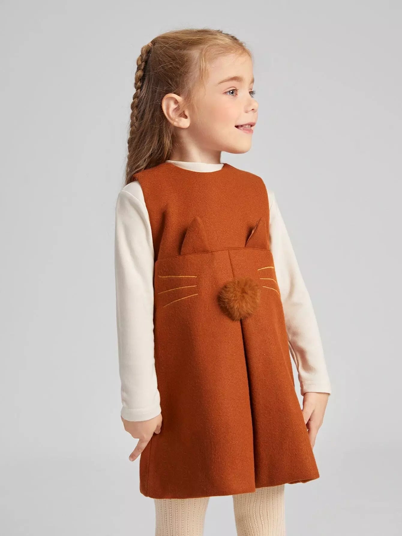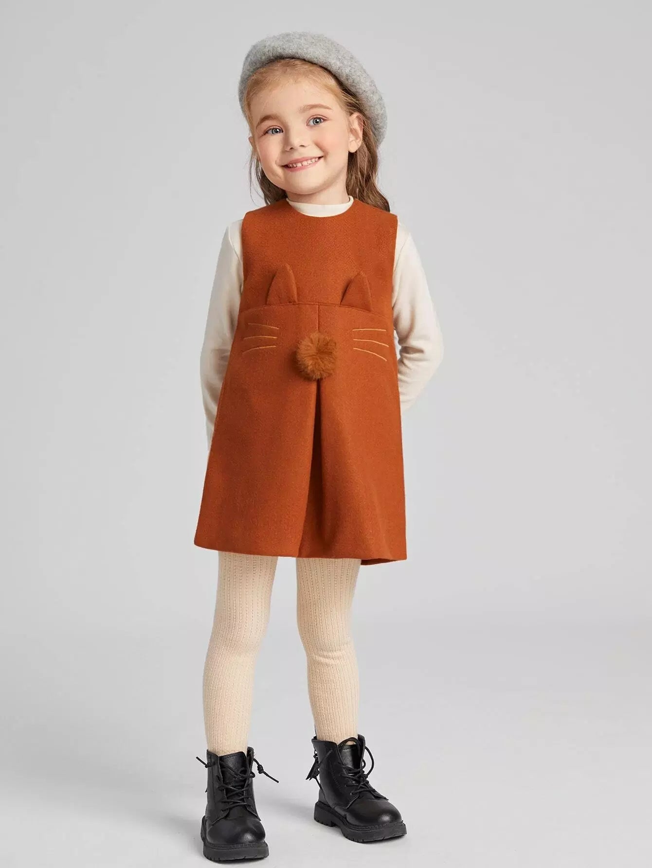 فستان بناتي صغير بدون أكمام مطوي ومطرز برسومات كرتونية ثلاثية الأبعاد
