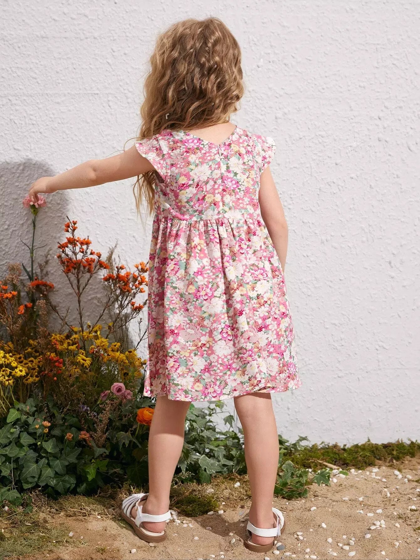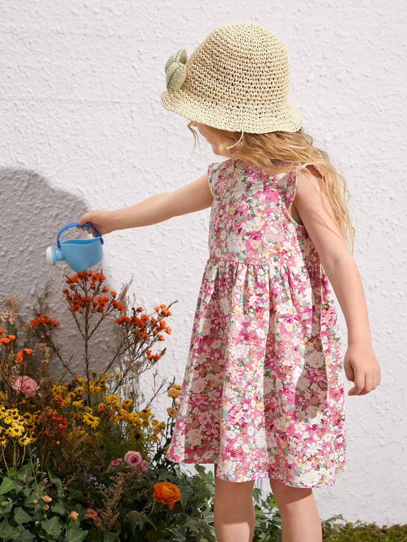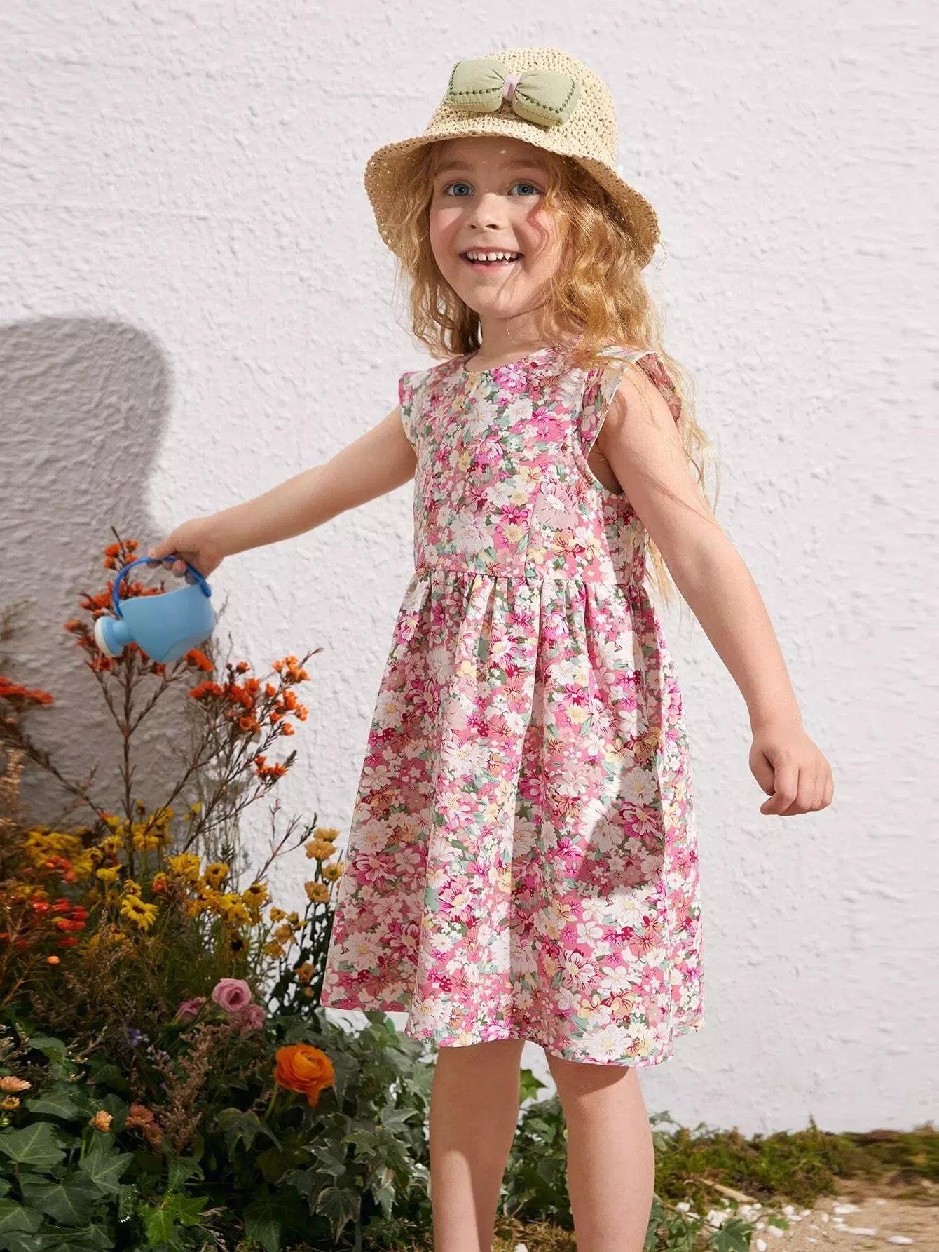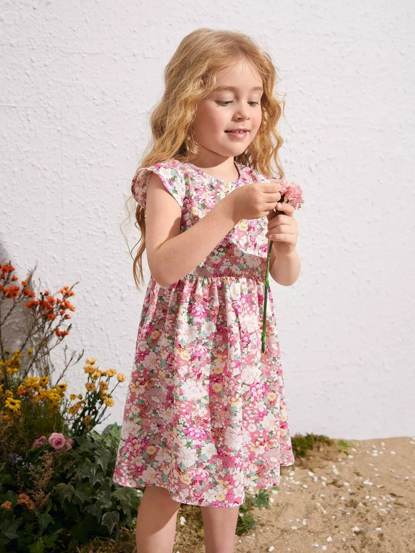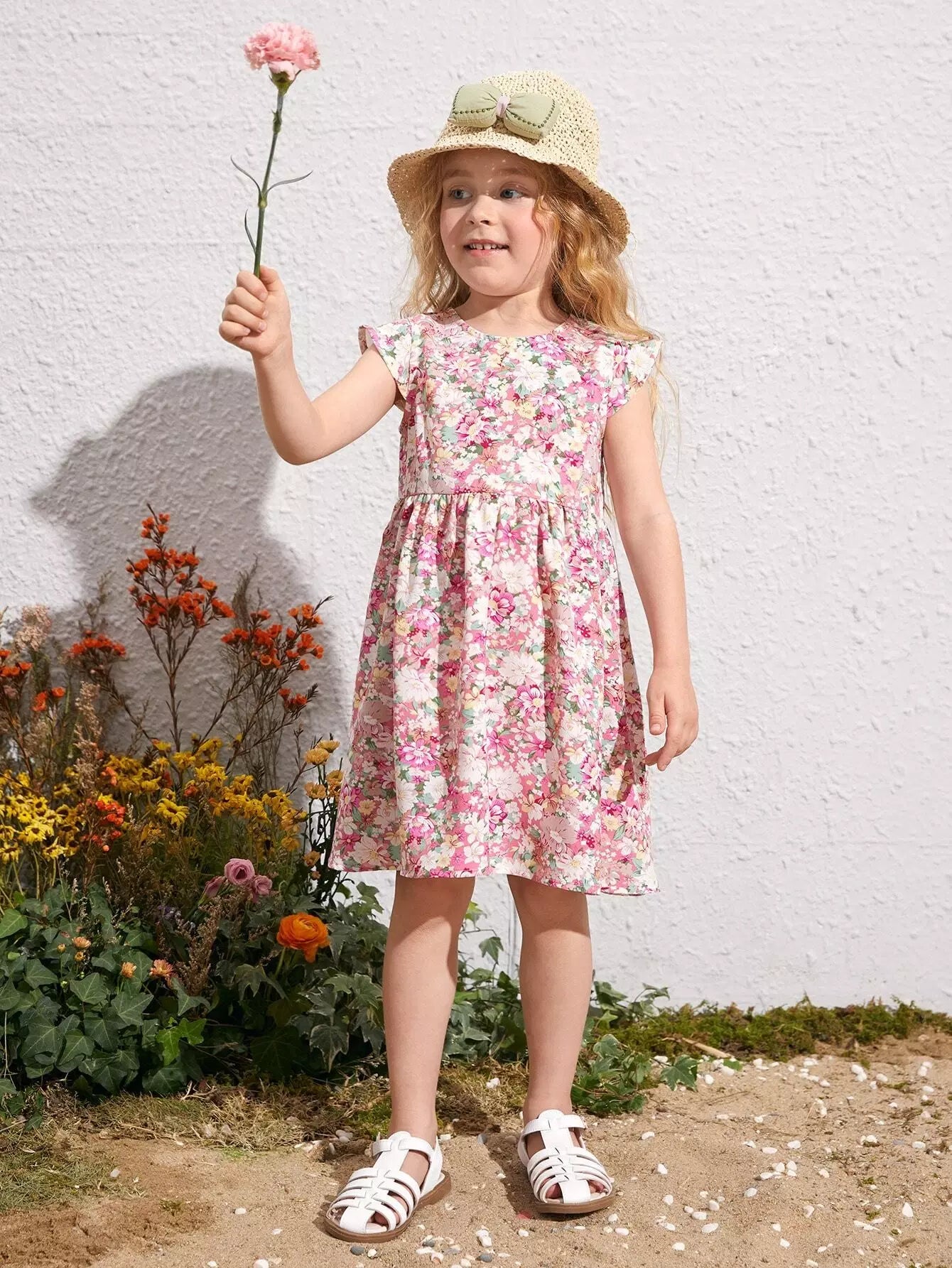 فستان مطبوع عليه زهور بالكامل للبنات الصغار