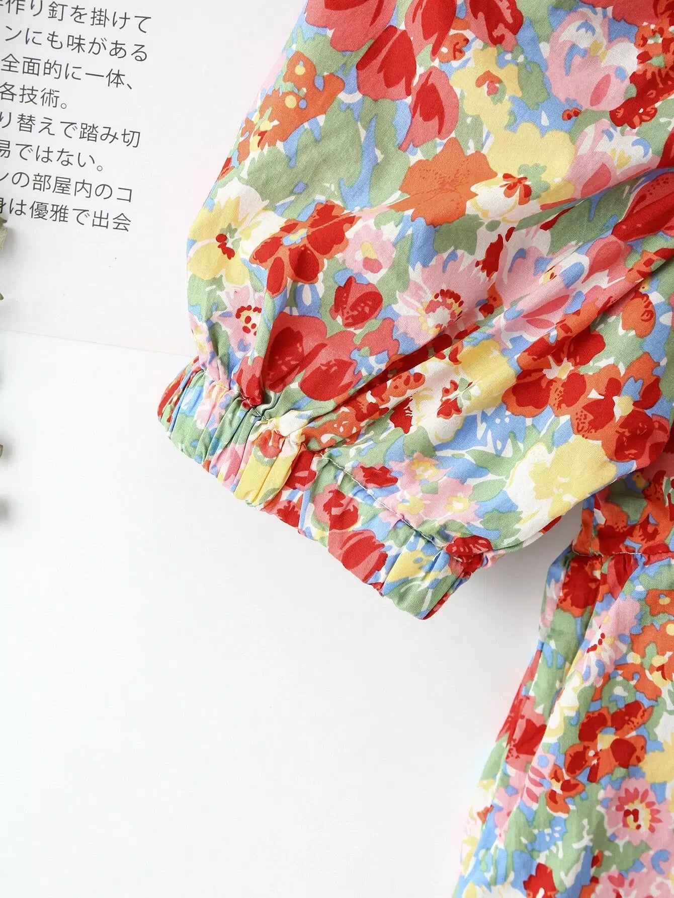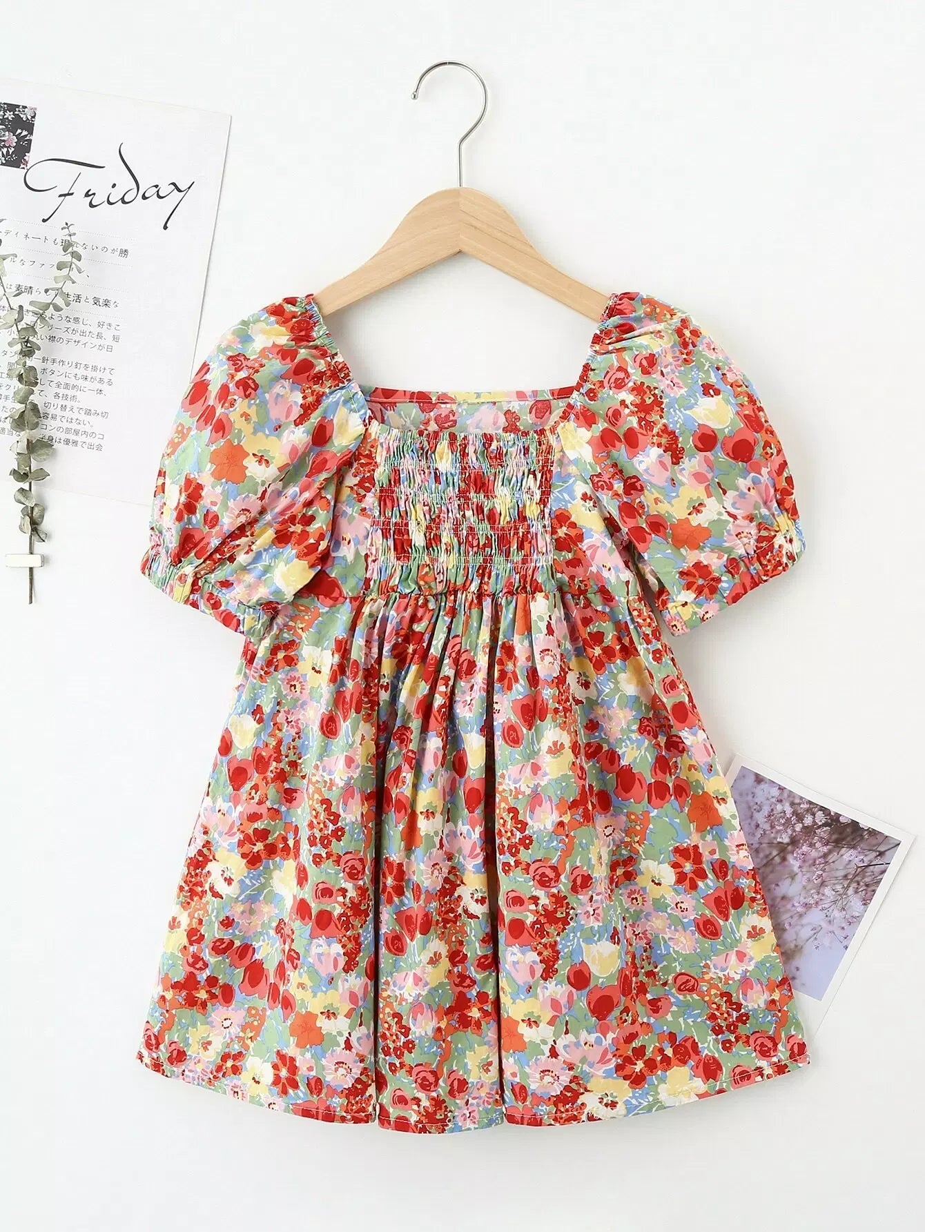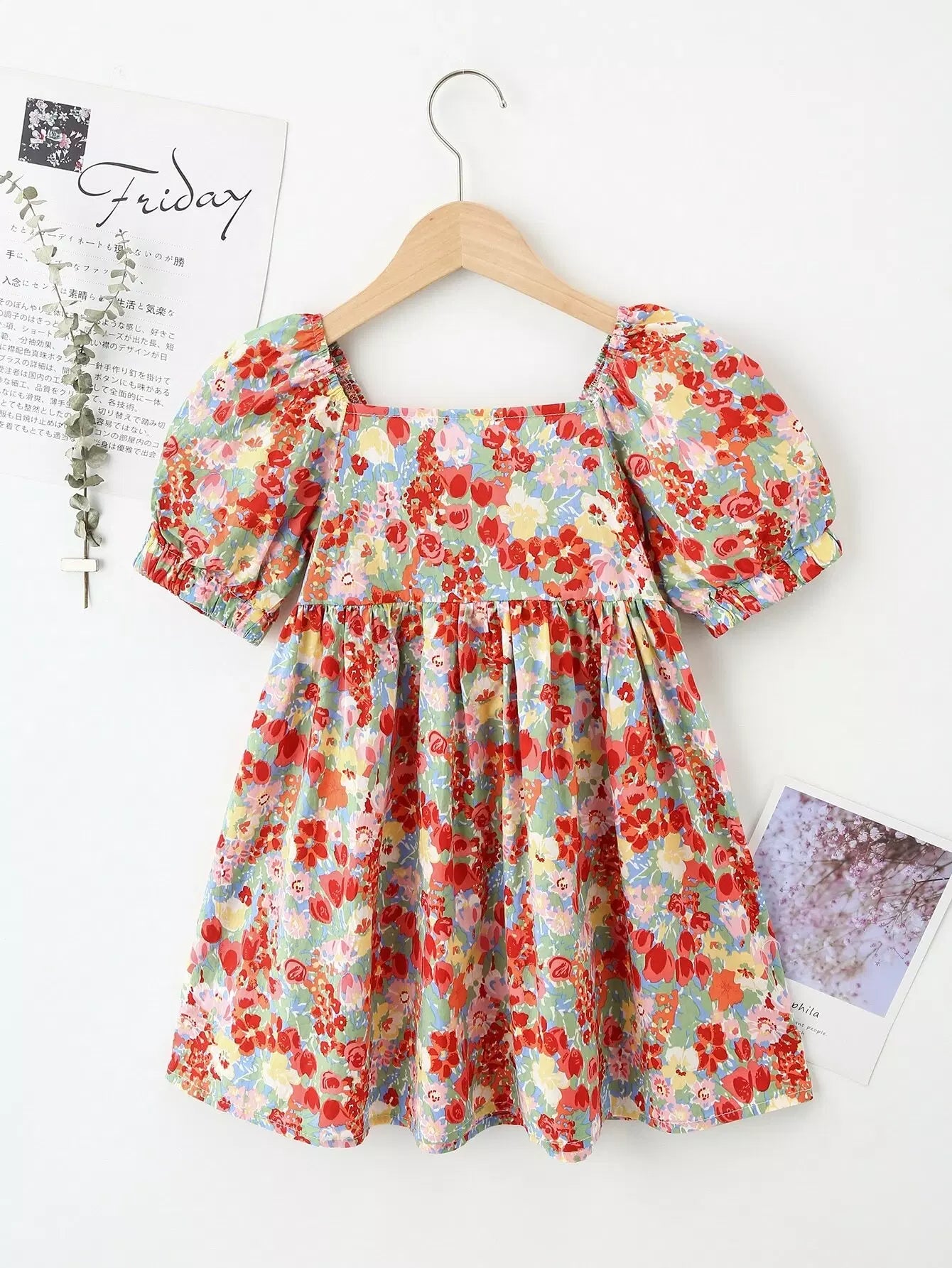 فستان بناتي صغيرات بطبعة زهور بالكامل بنقشة زهور وشيرد