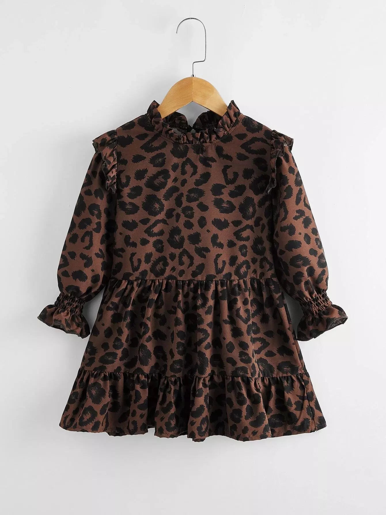 فستان بيبيدول برقبة رقبة كشكش مطبوع بالكامل للبنات الصغار