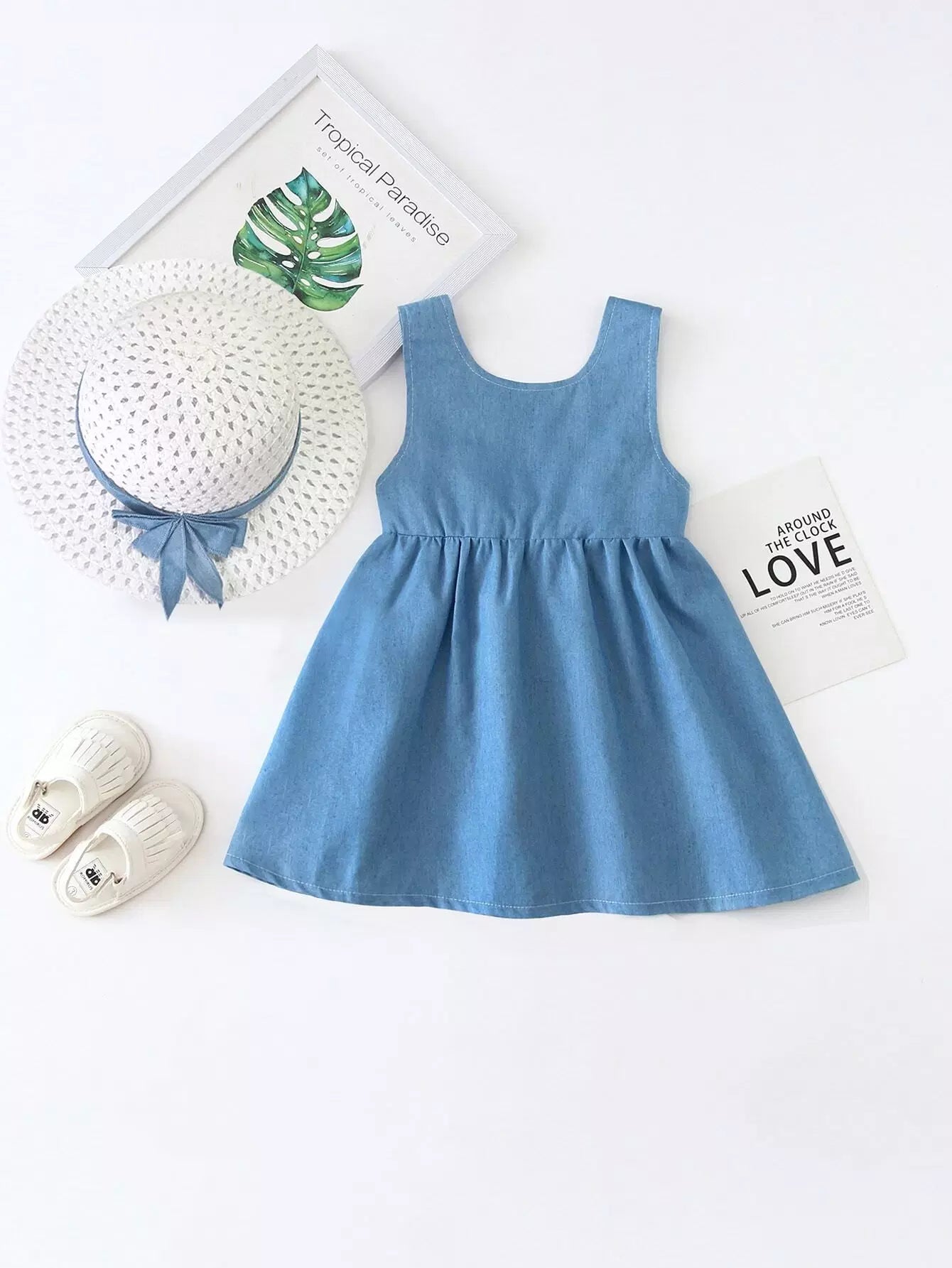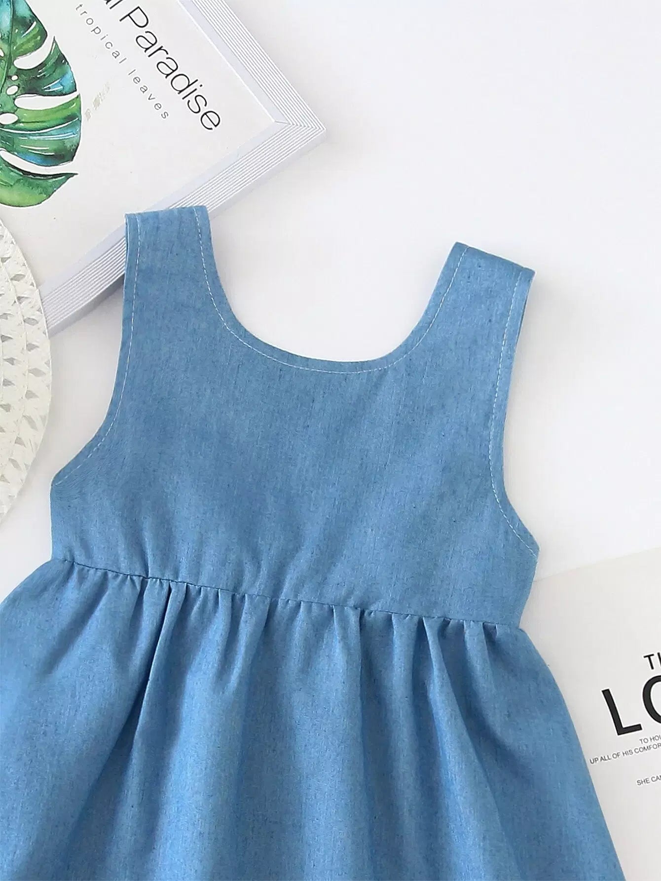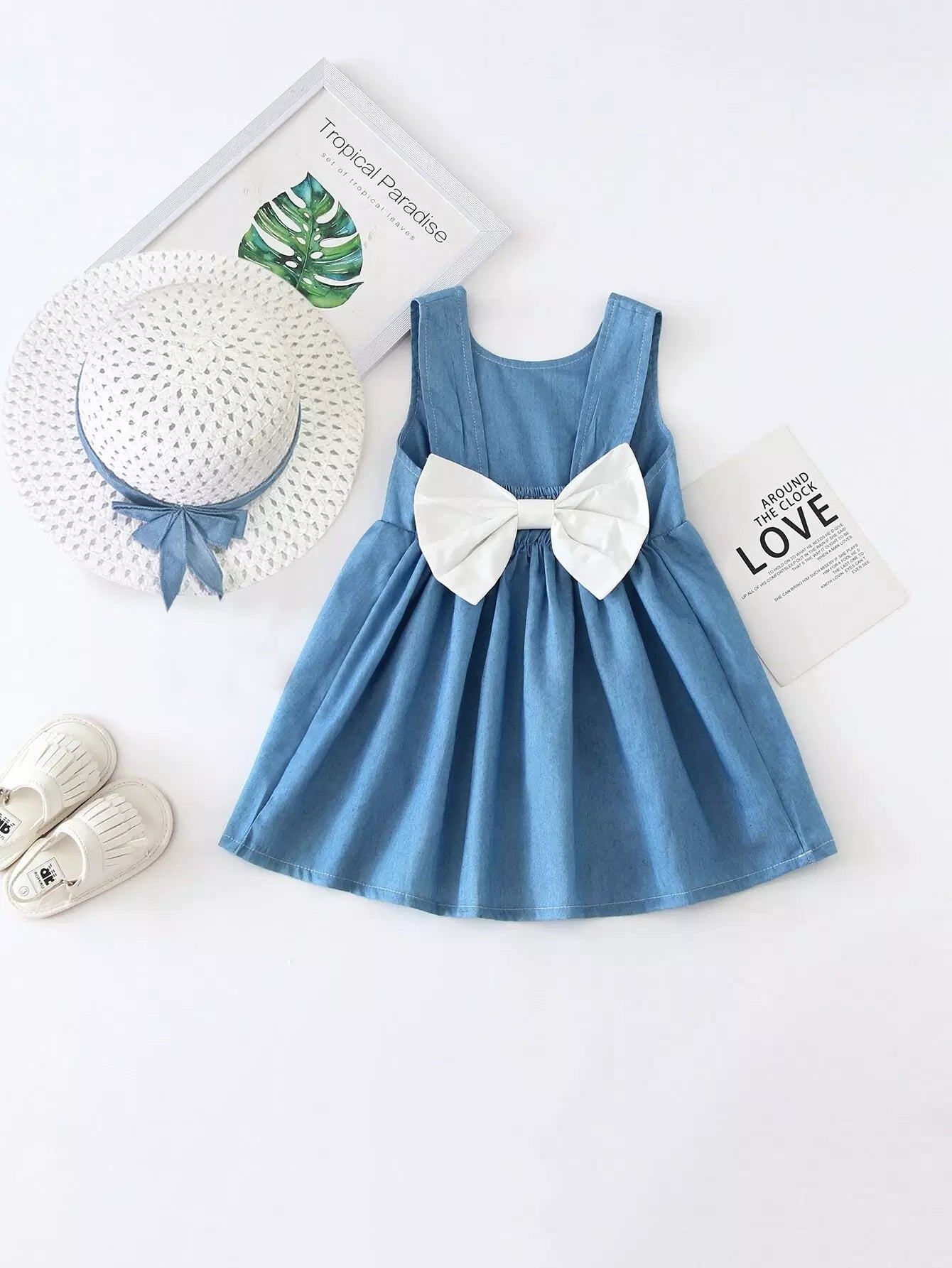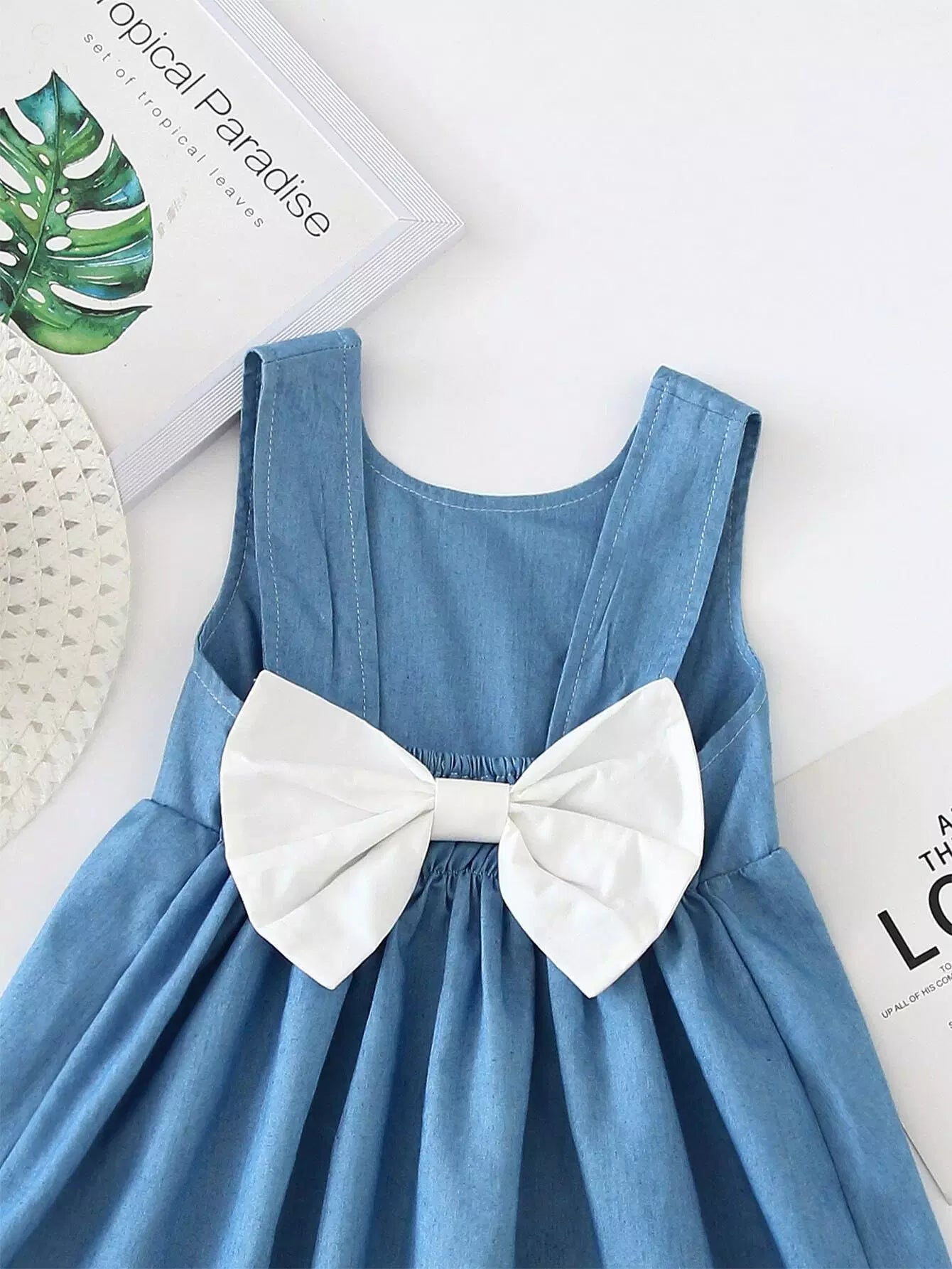 فستان فتيات صغيرات بعقدة على شكل قميص على الظهر