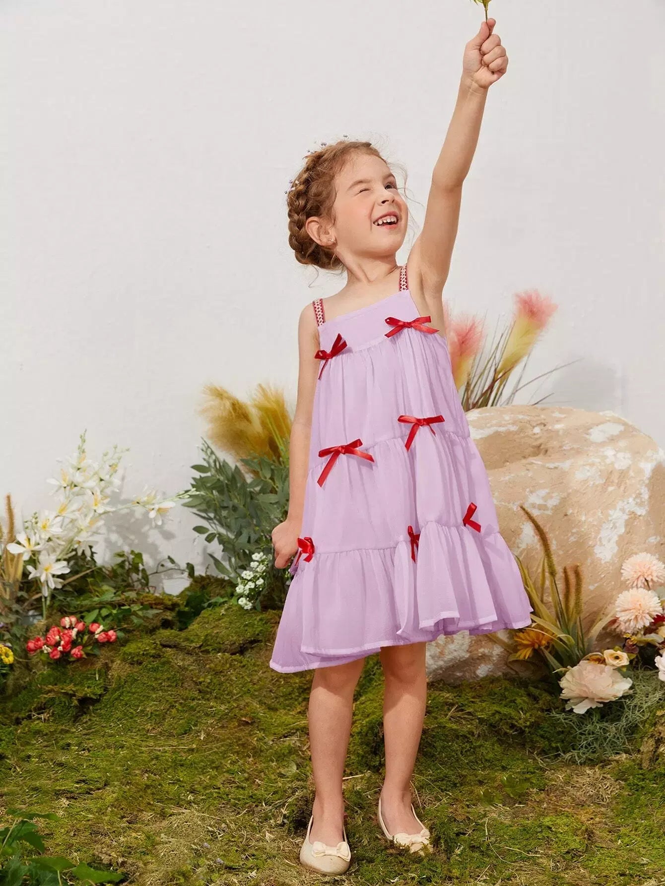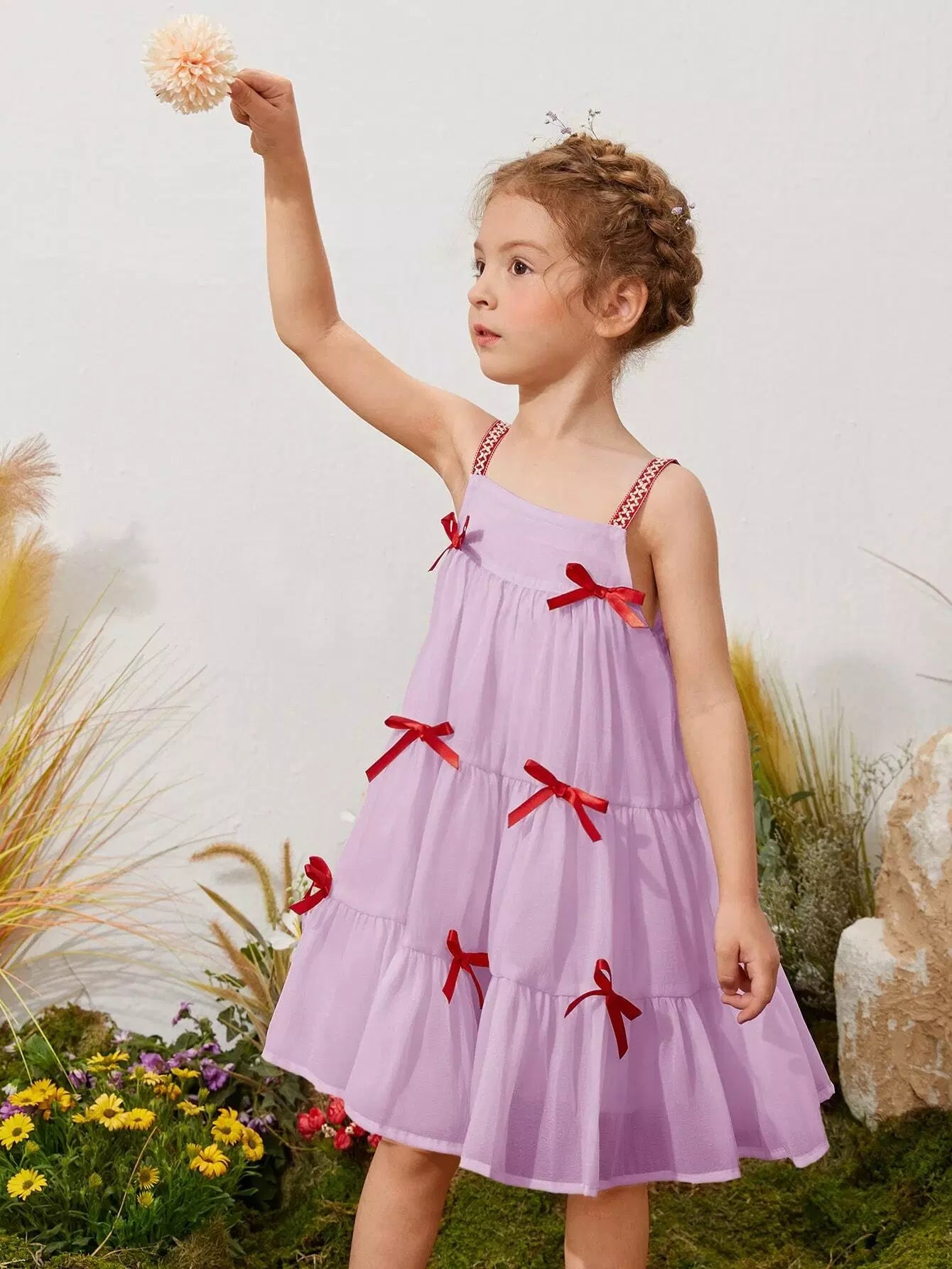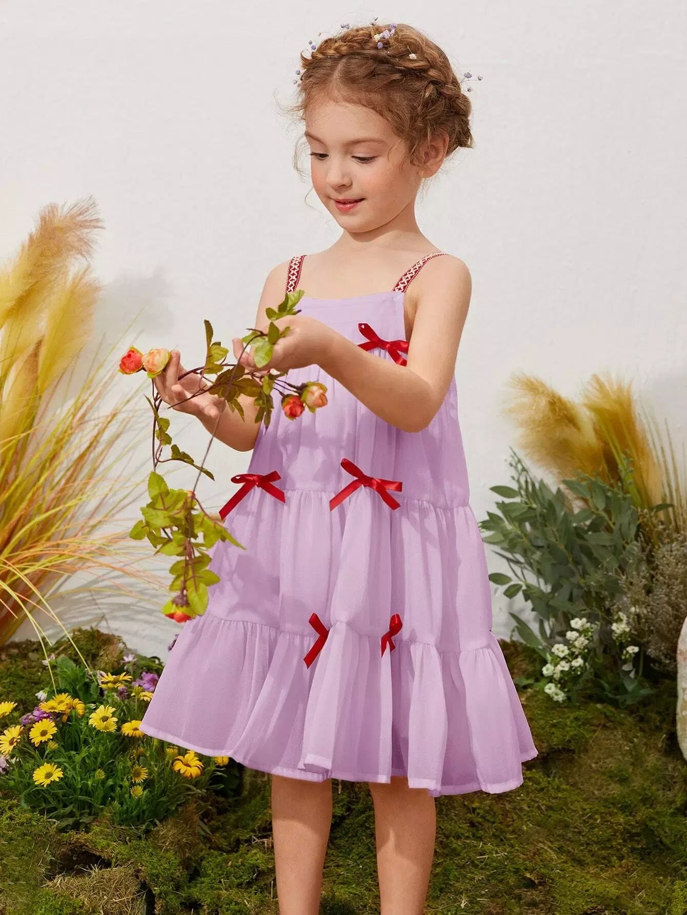 فستان بناتي صغيرات كمي بعقدة أمامية