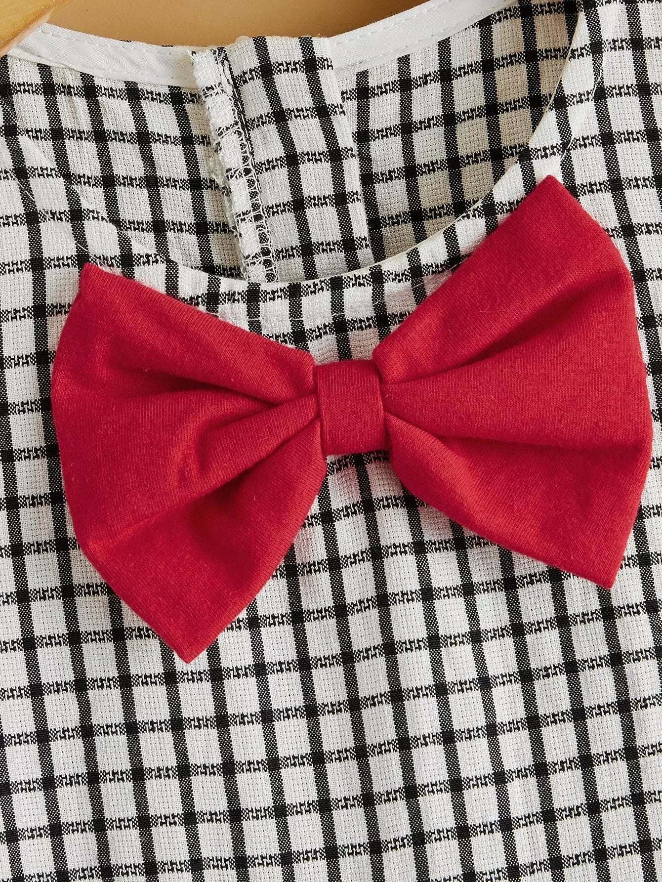 فستان سموك منقوش بعقدة أمامية للبنات الصغار