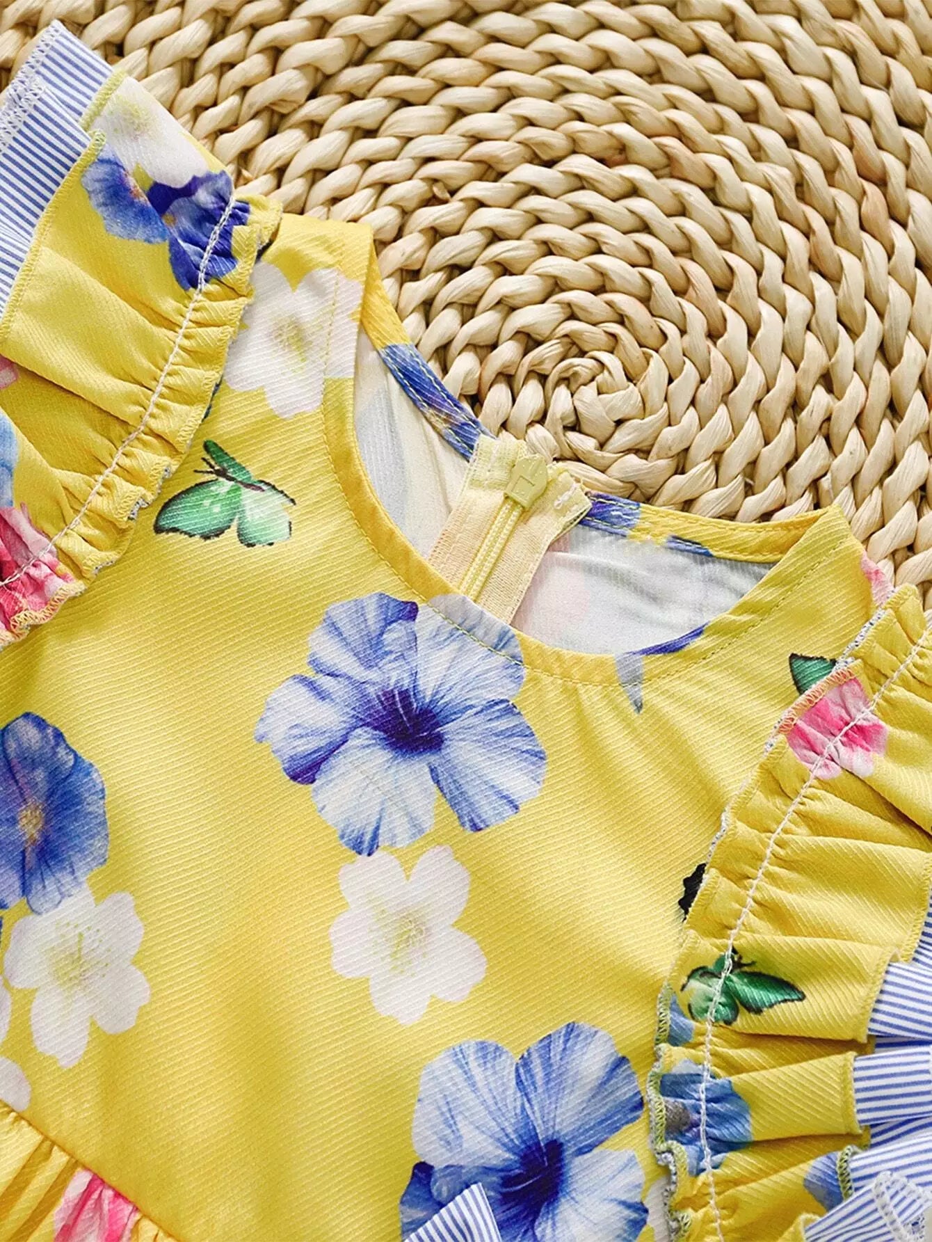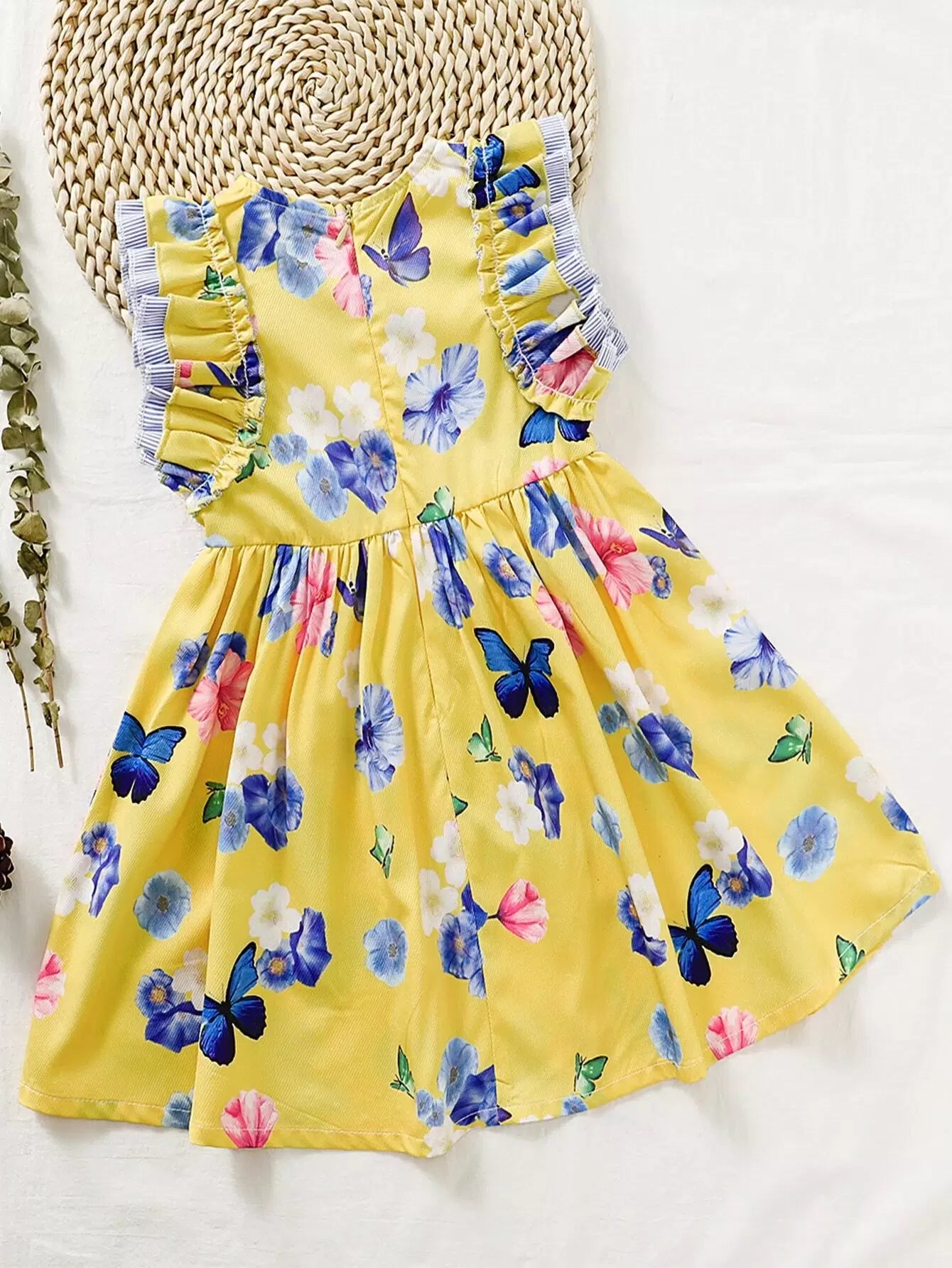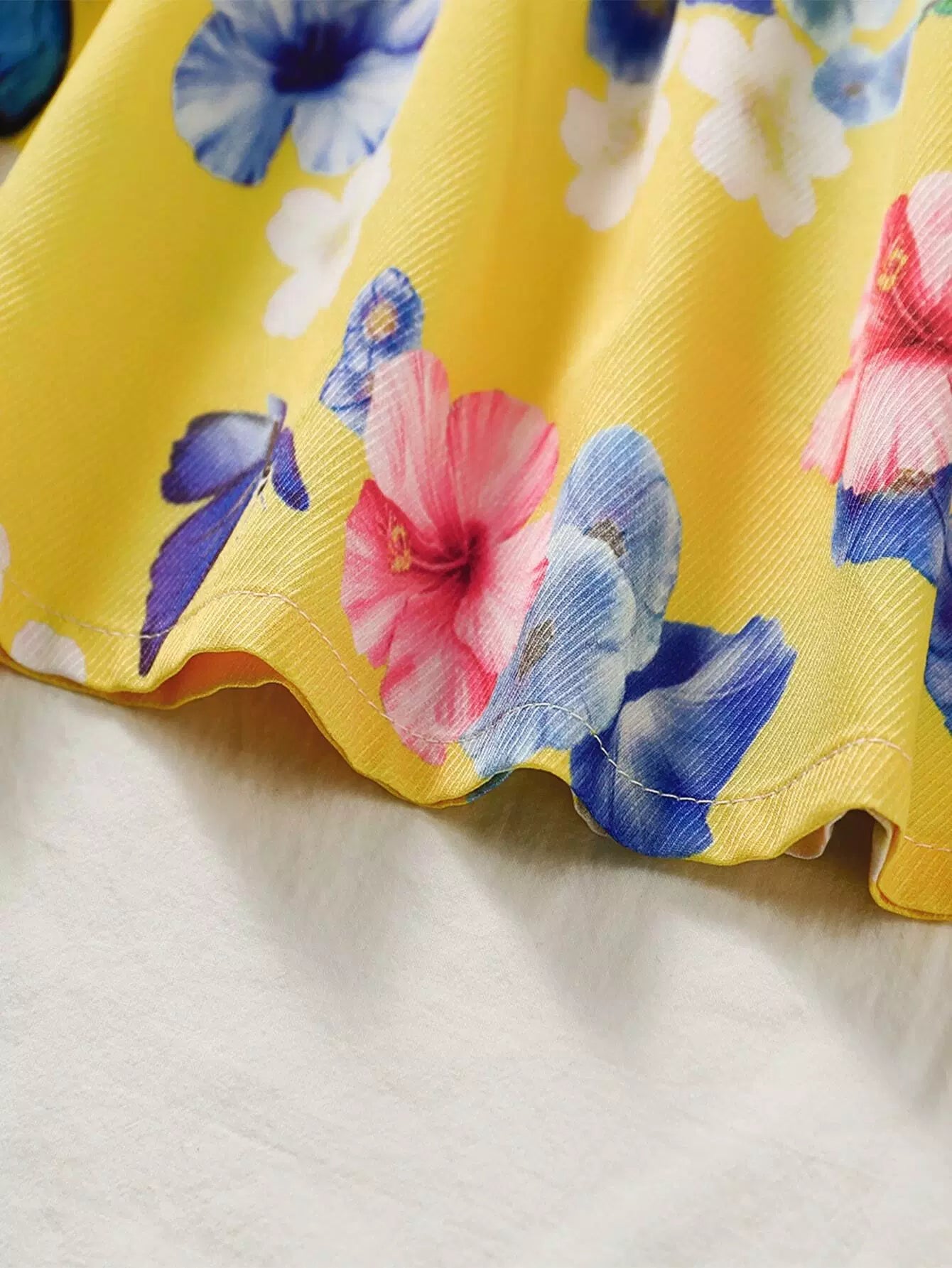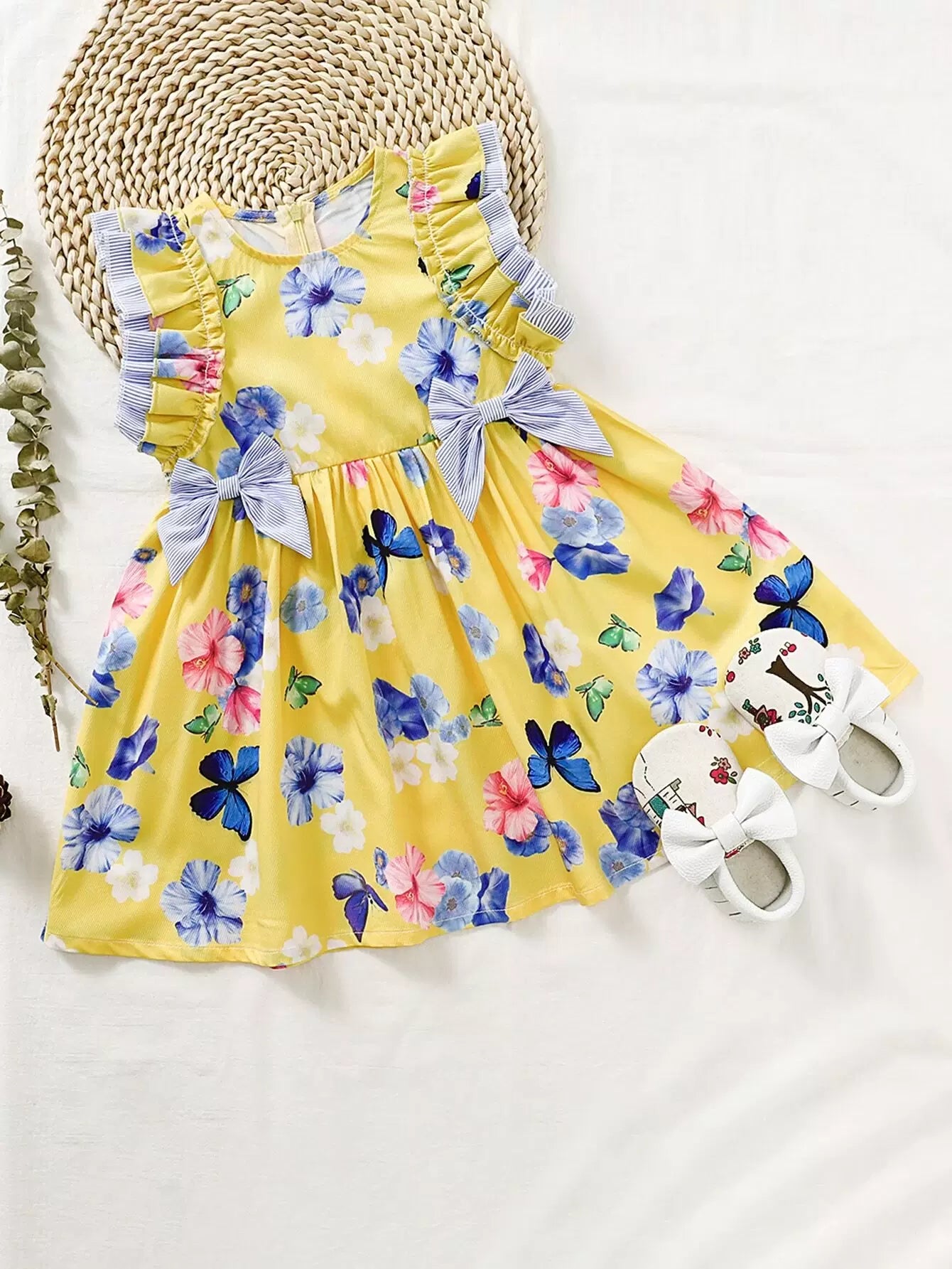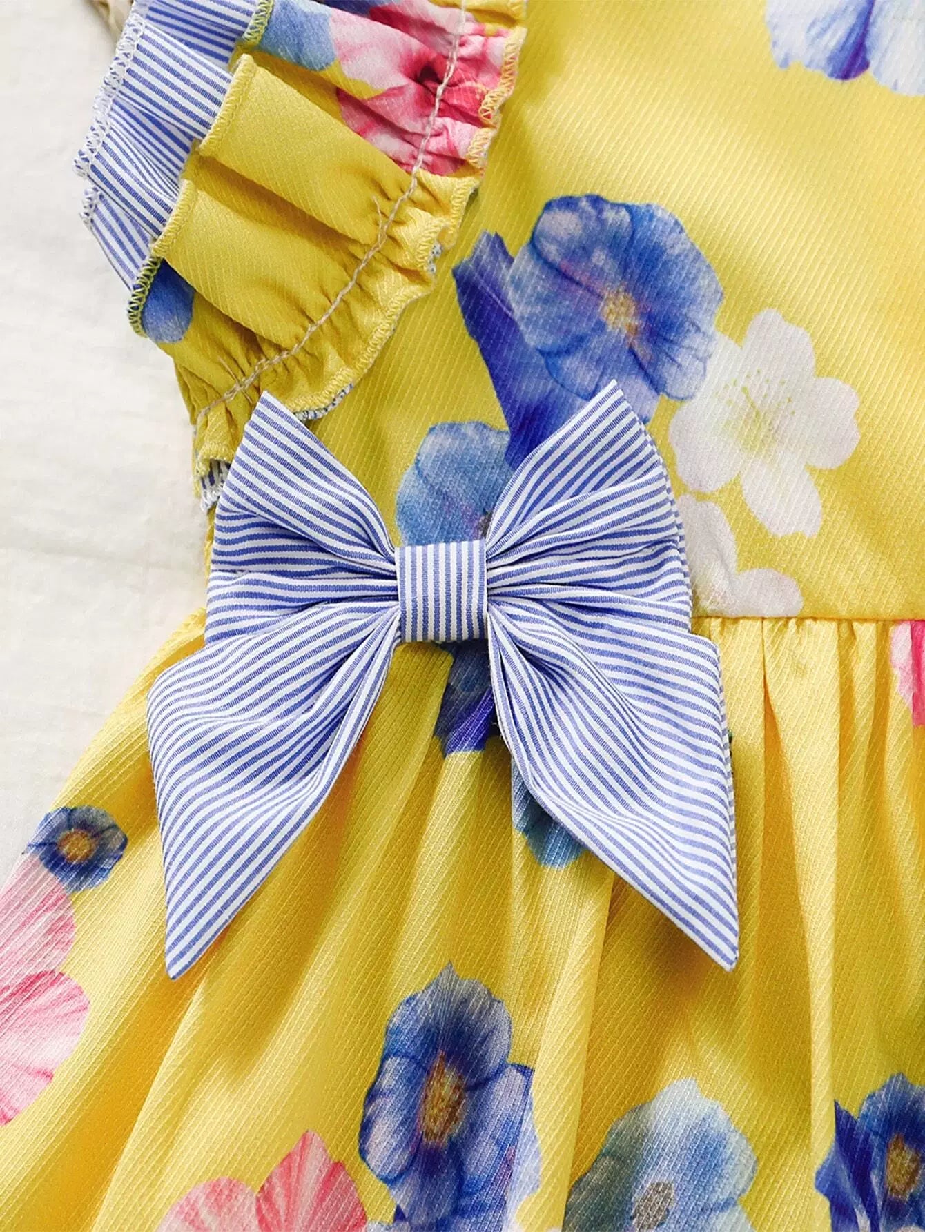 فستان بناتي صغيرات بعقدة أمامية مكشكشة على شكل زهور