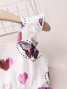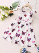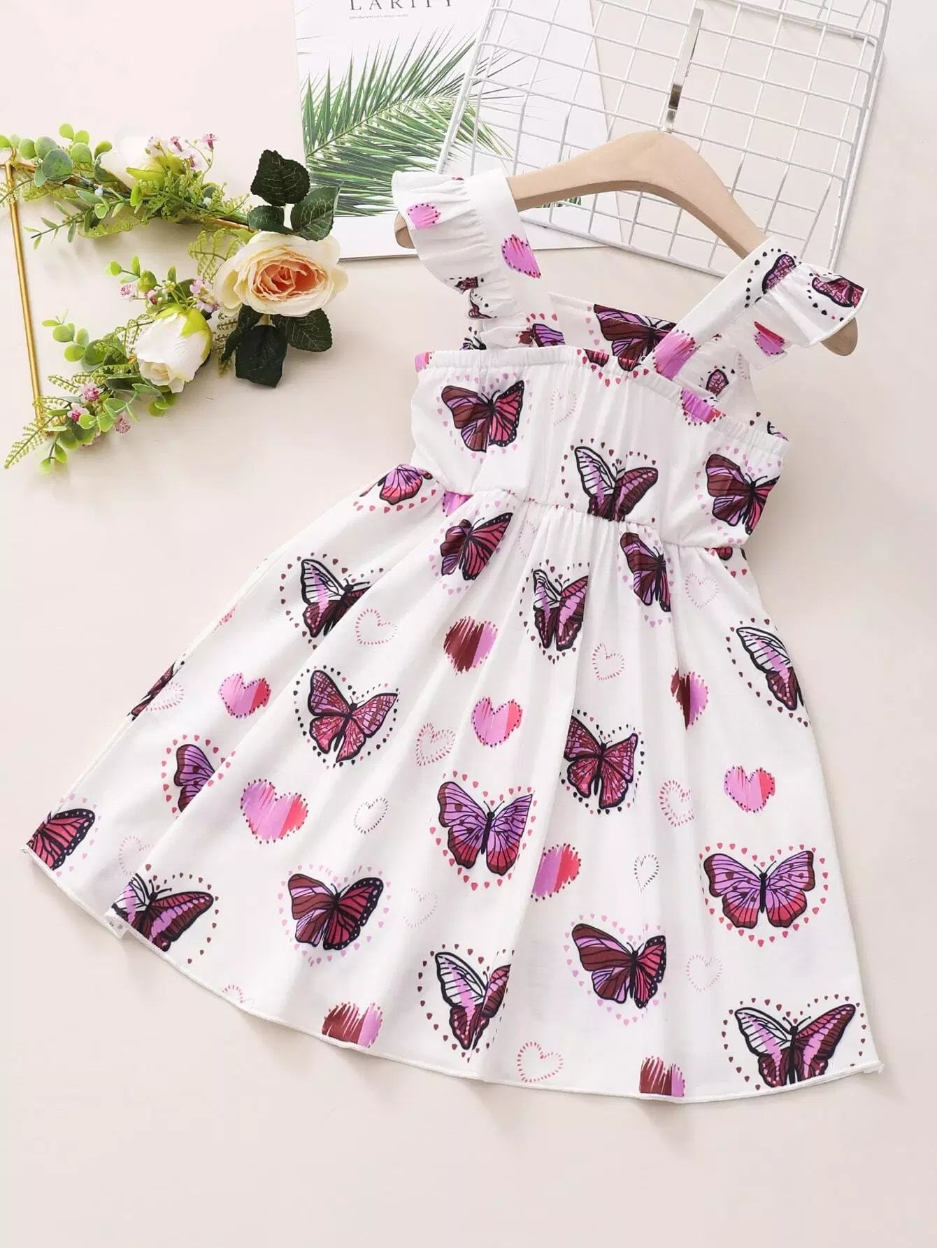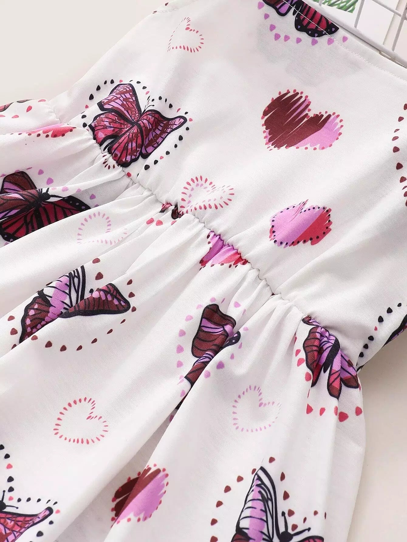 فستان بناتي صغيرات بطبعة فراشة وقلب مزين بكشكشة