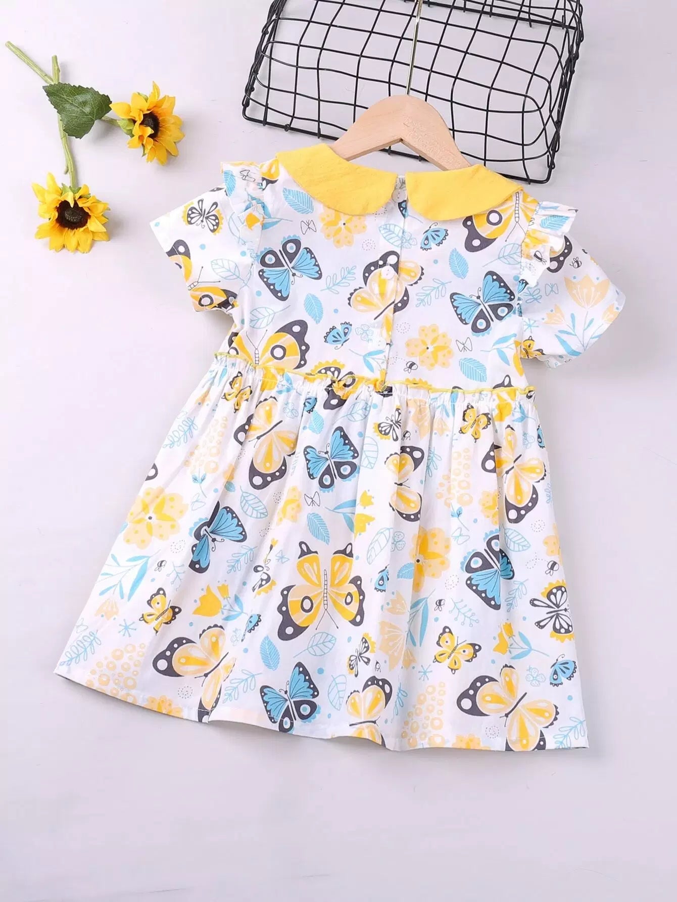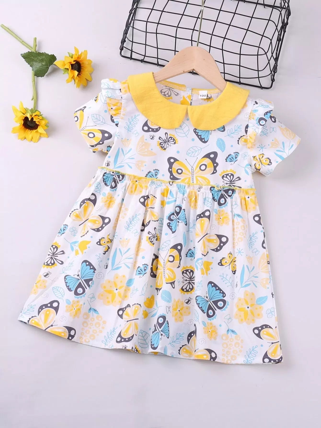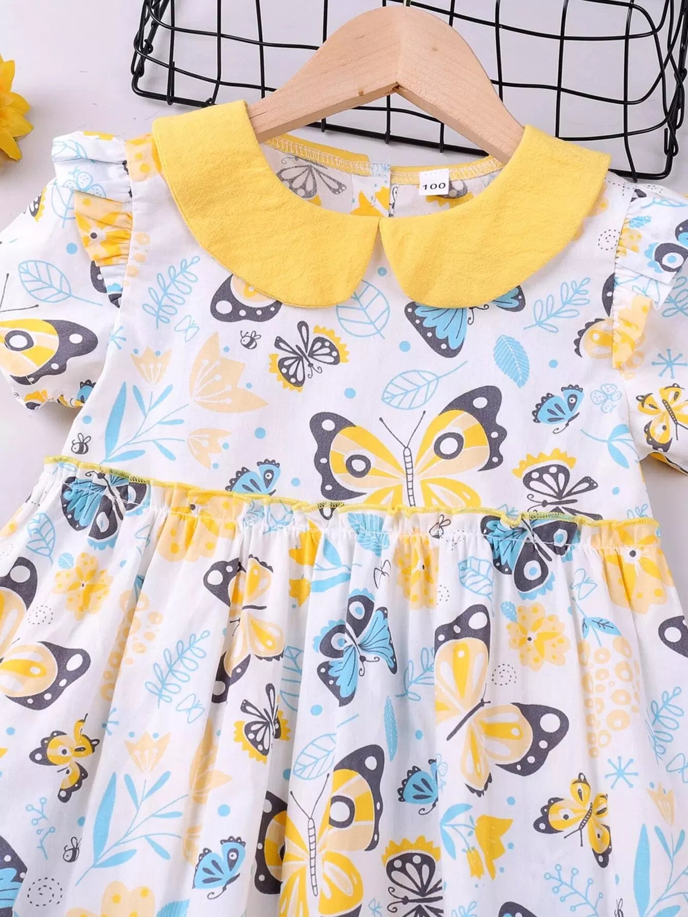 فستان بياقة بيتر بان بطبعة فراشات للبنات الصغار