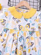 الأطفال - فستان بياقة بيتر بان وطبعة فراشات للفتيات الصغيرات