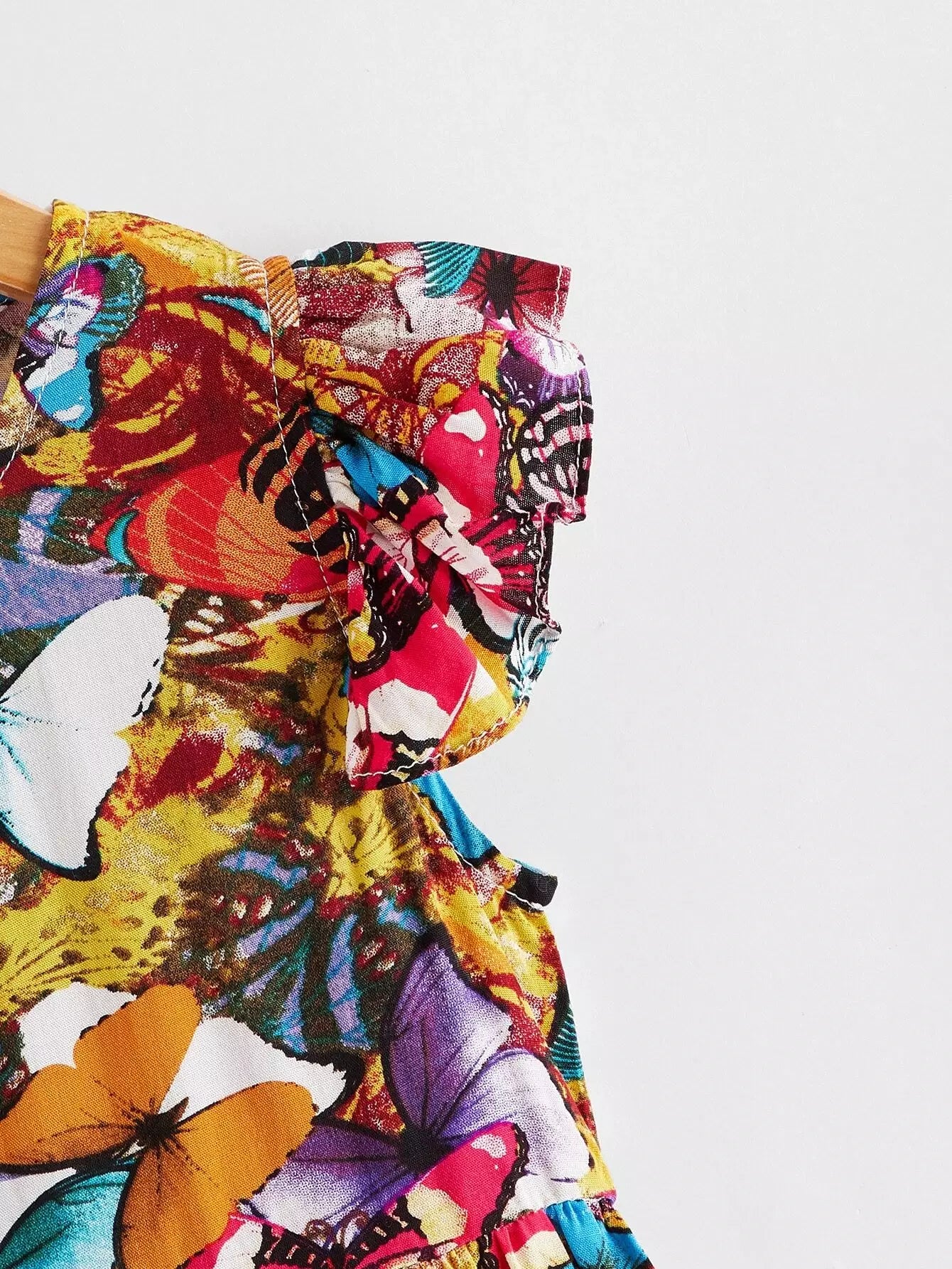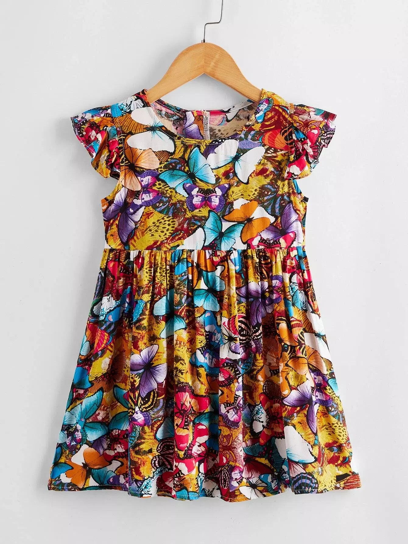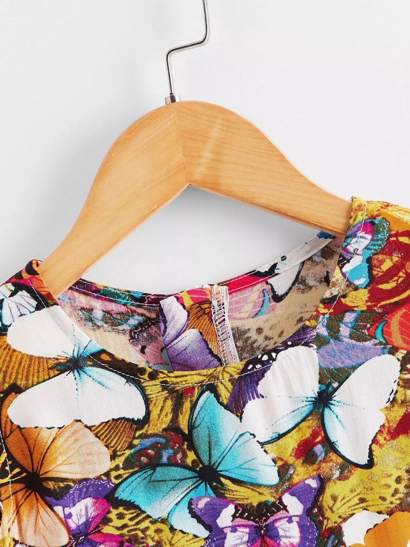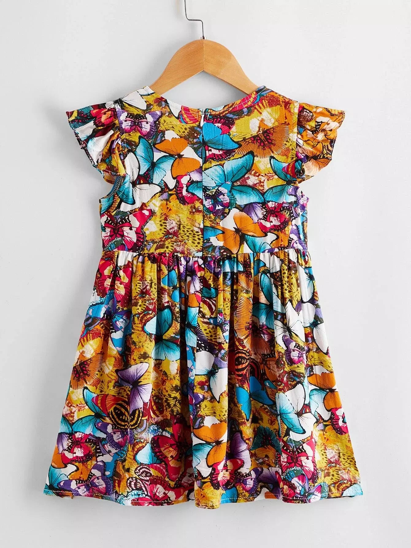 فستان بناتي صغيرات بطبعة فراشات مزين بكشكش بحواف مكشكشة