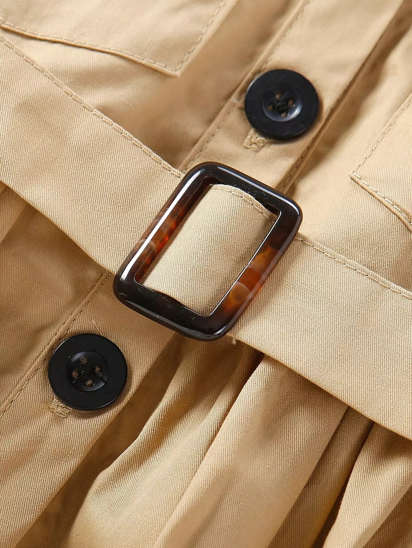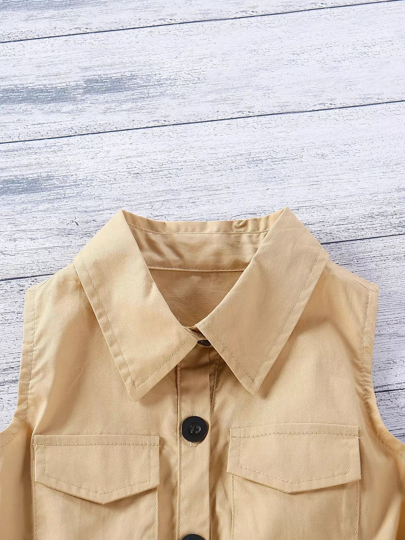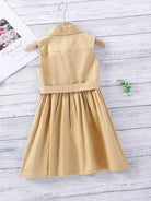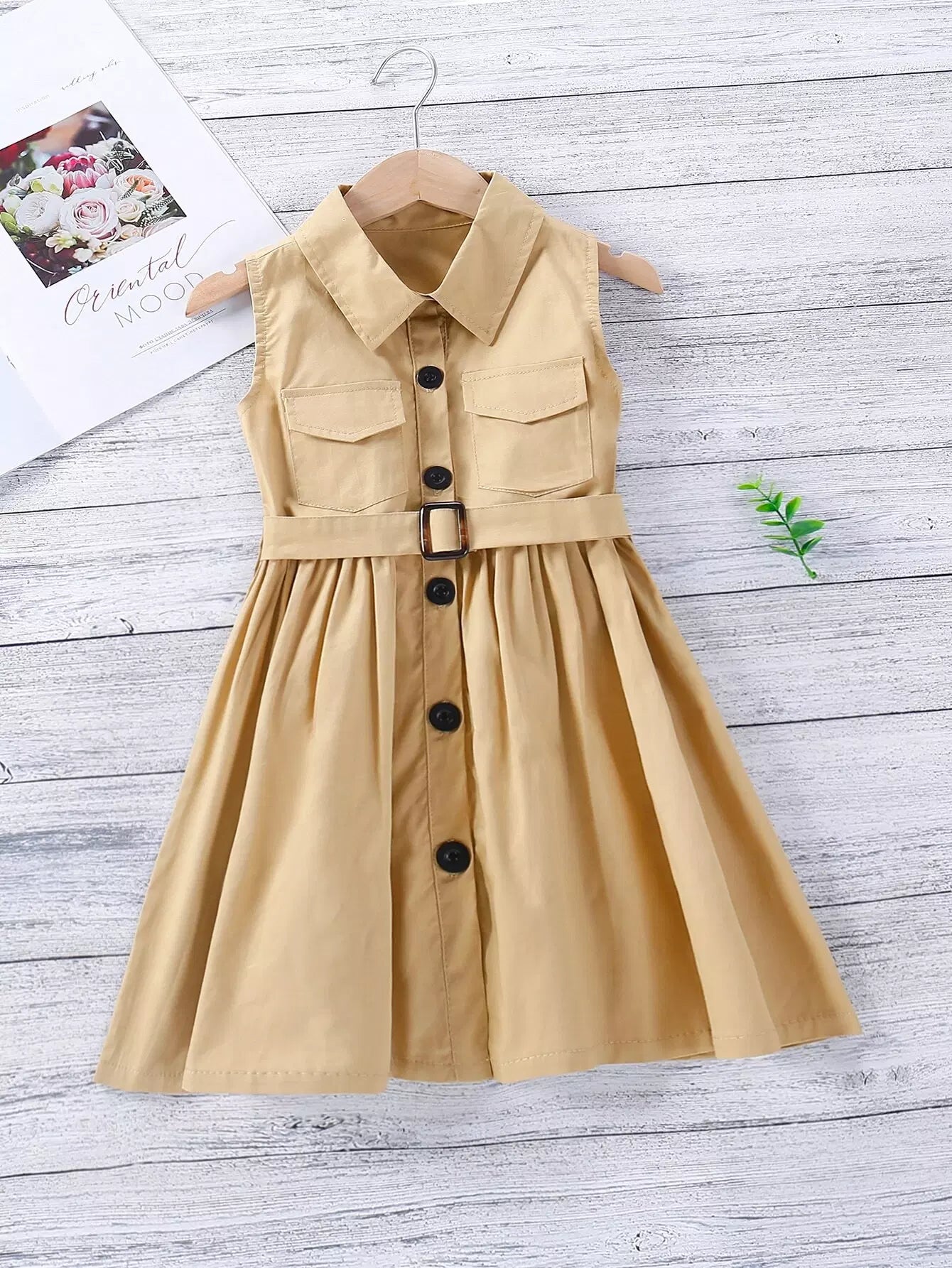 فستان قميص بأزرار أمامية للفتيات الصغيرات بدون حزام