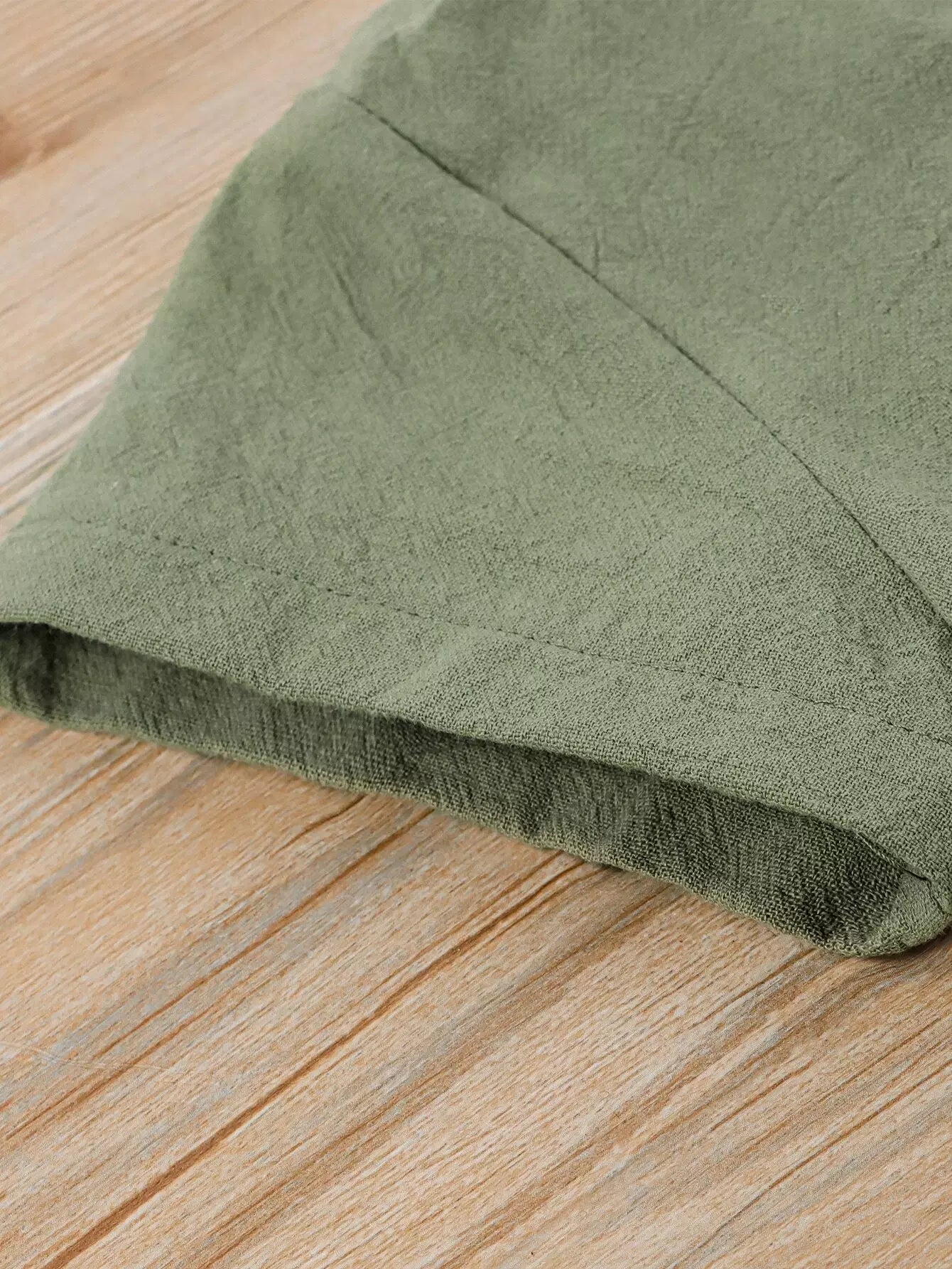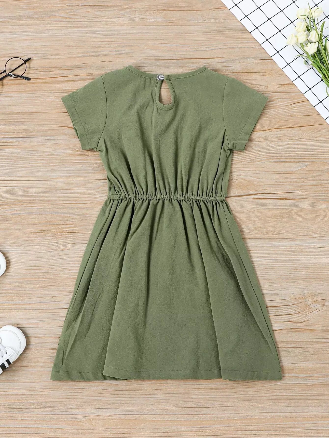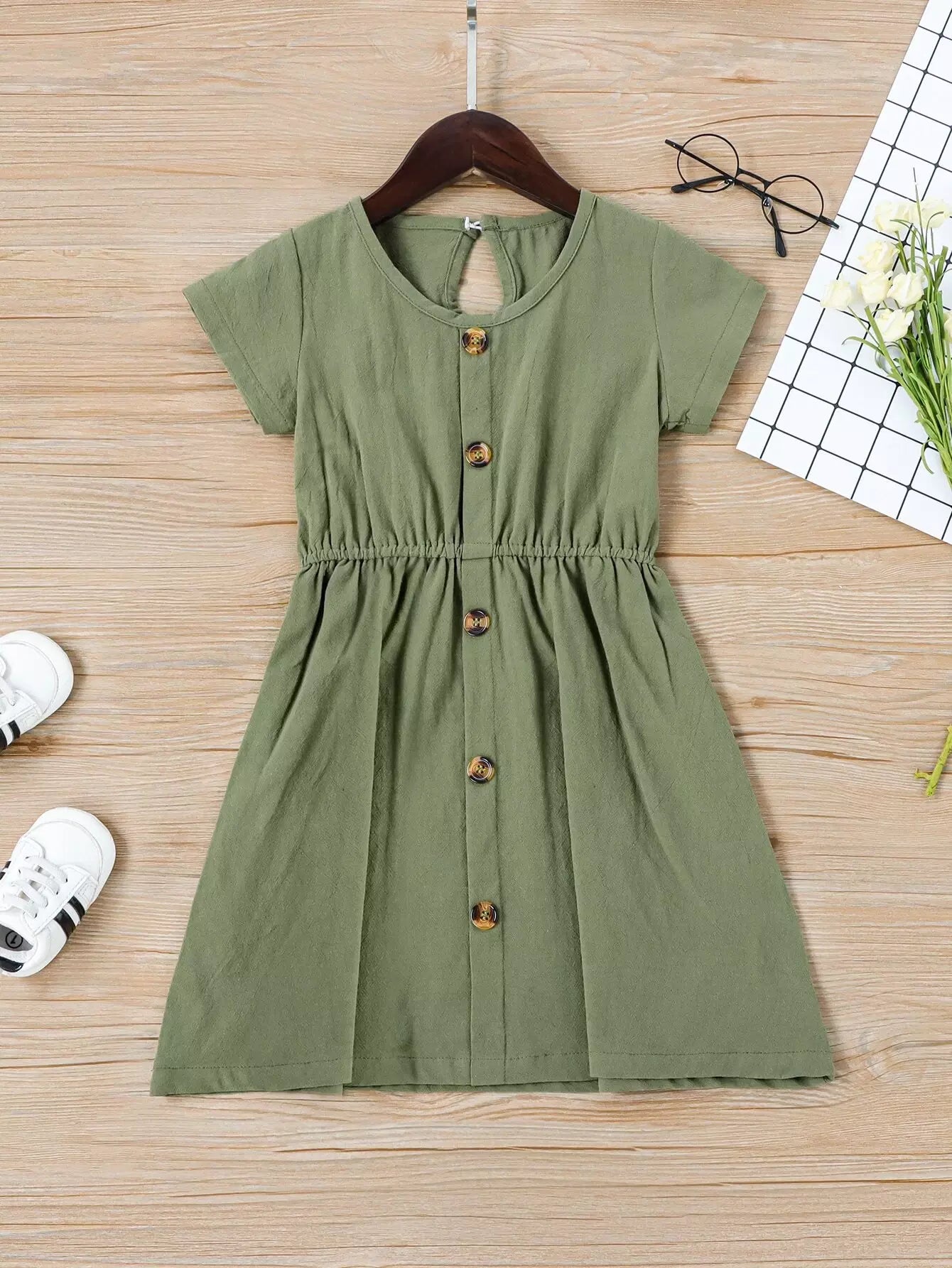 فستان بنات صغيرات بأزرار أمامي بأزرار وخصر مطاطي على شكل حرف A
