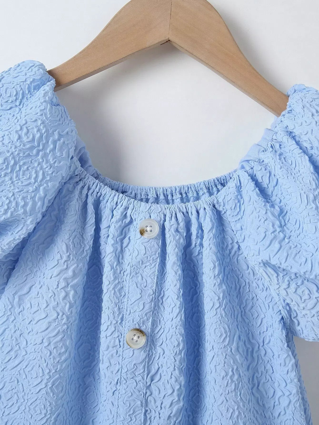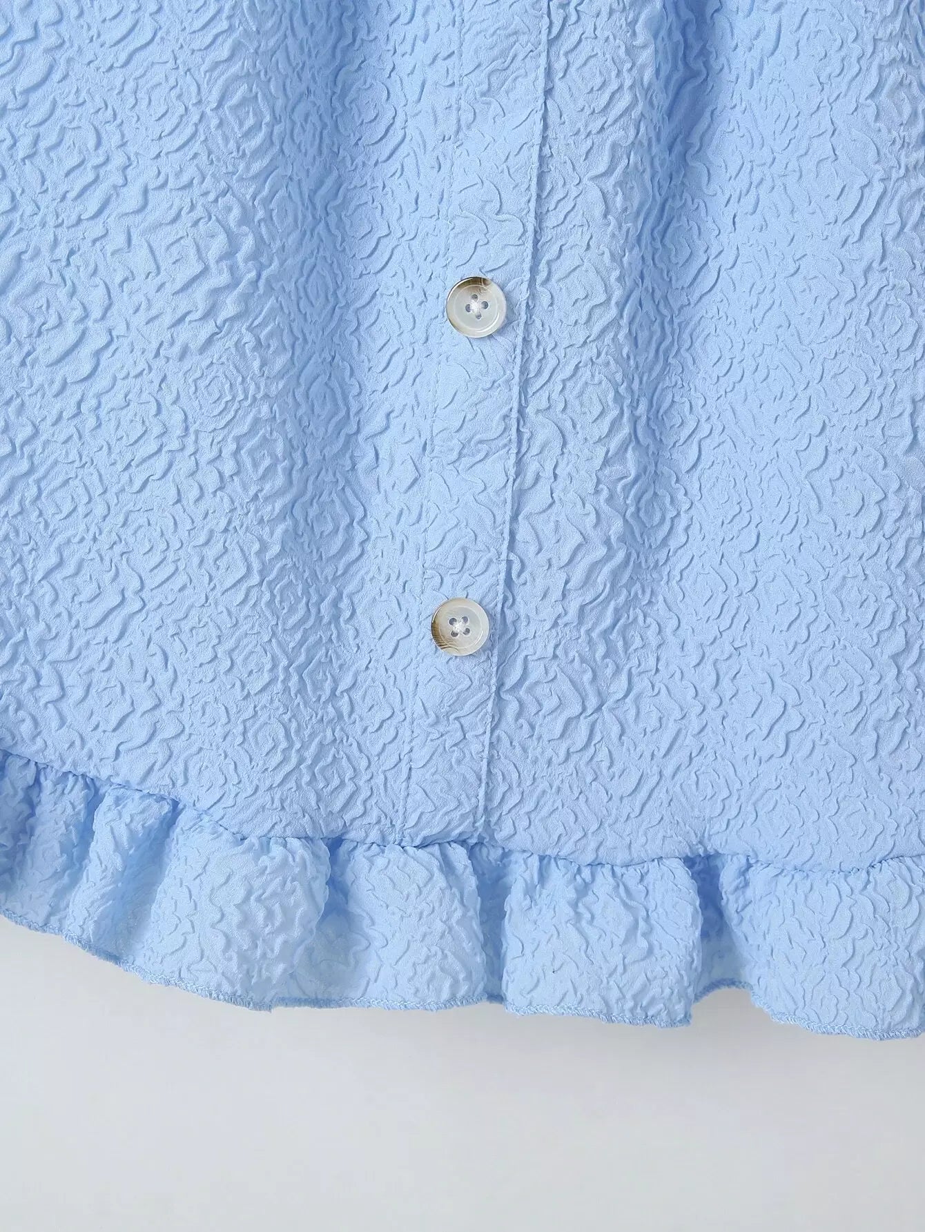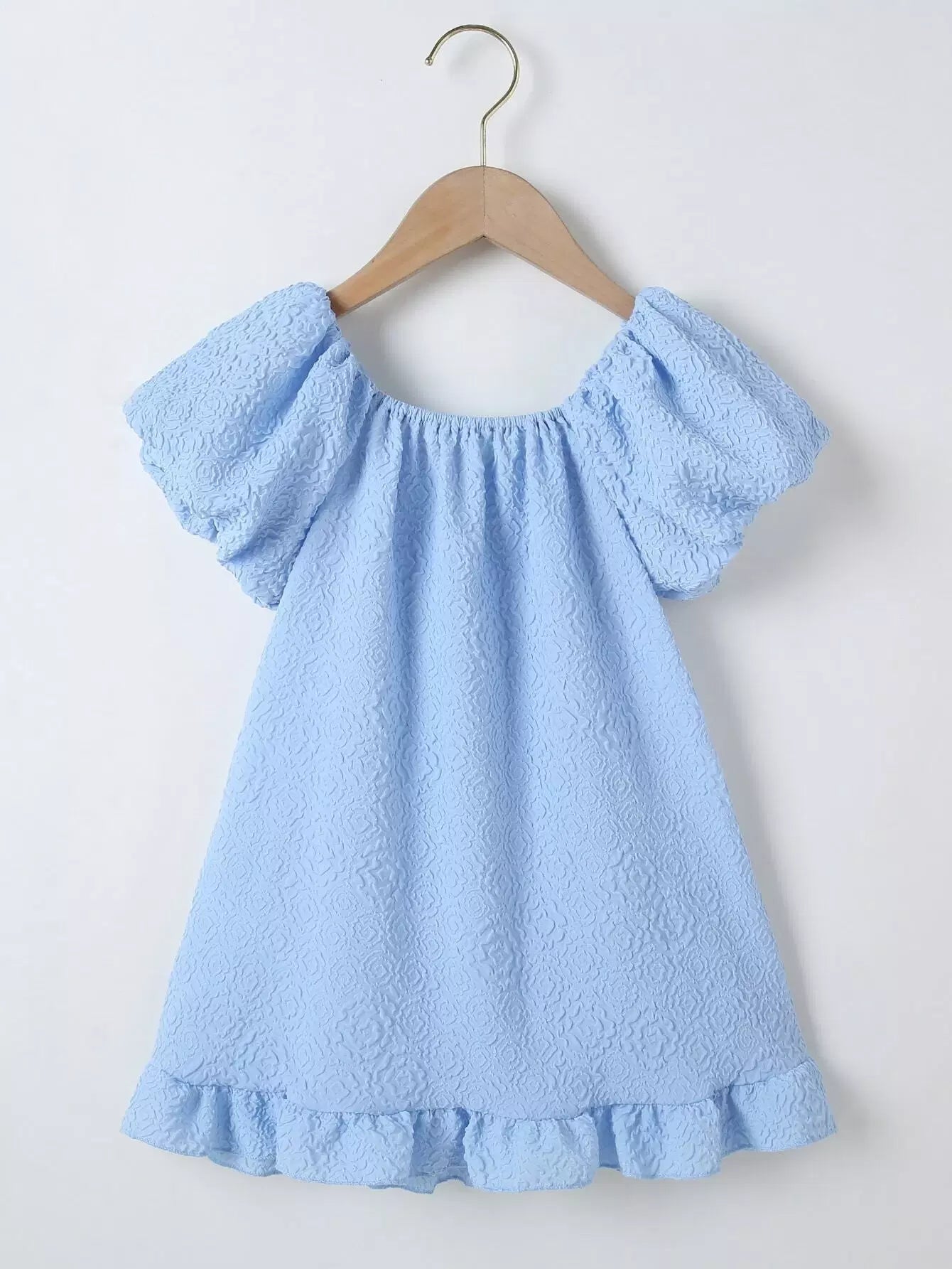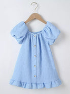 فستان بنات صغيرات بأزرار أمامية مكشكشة بحافة كشكش