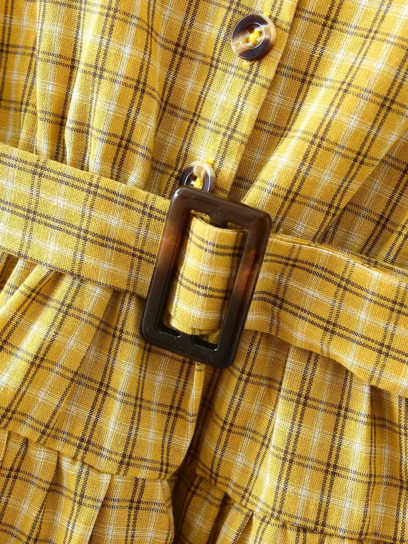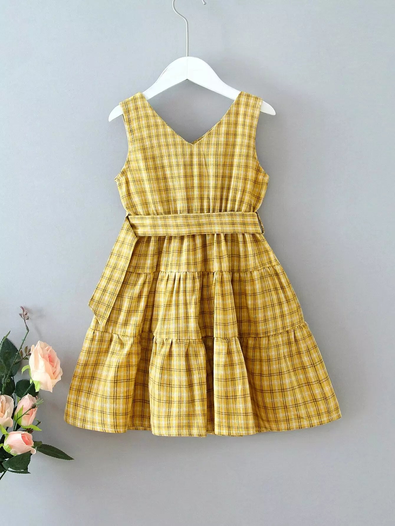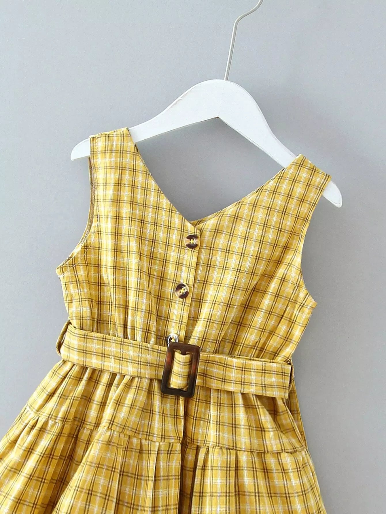 الأطفال - فستان تارتان بأزرار أمامية ورباط ذاتي للفتيات الصغيرات