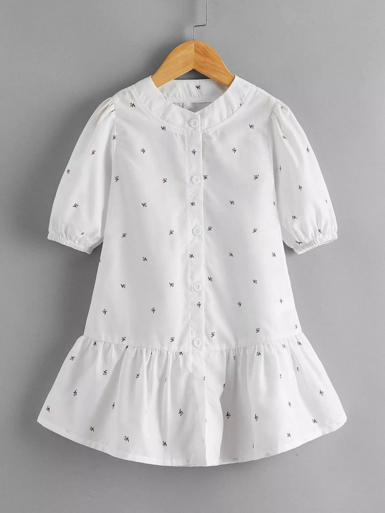 فستان بنات صغيرات بأزرار من خلال حافة كشكش