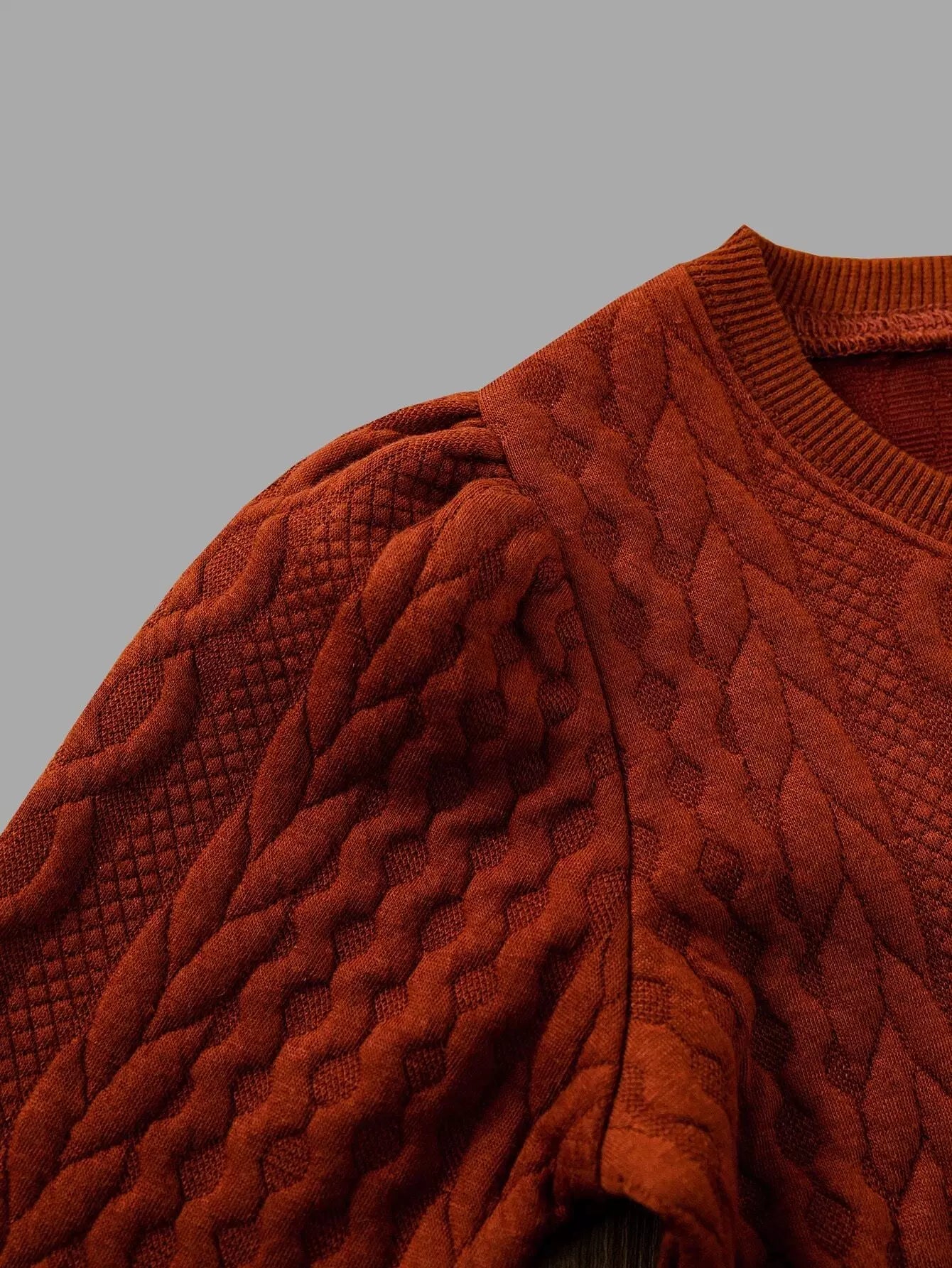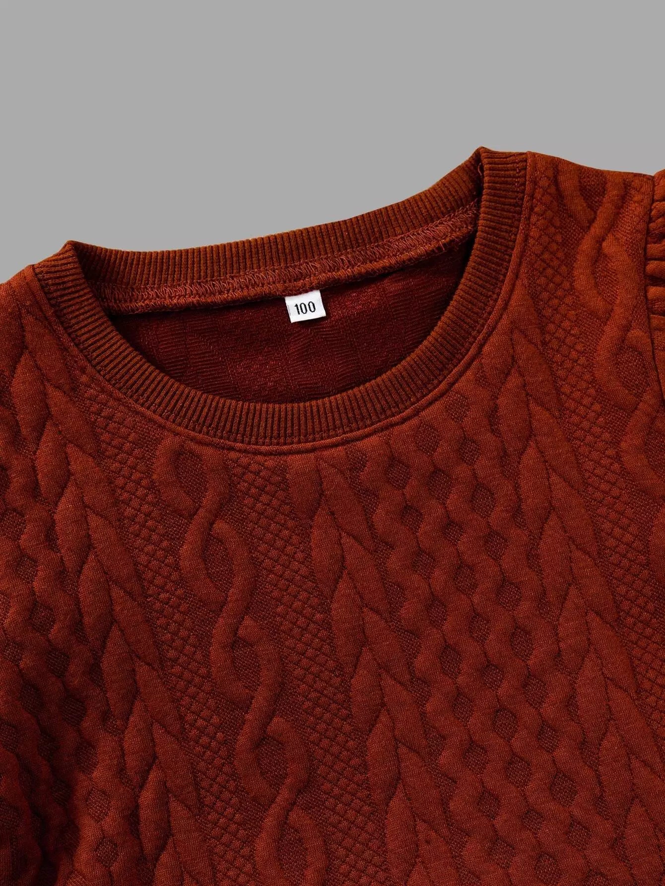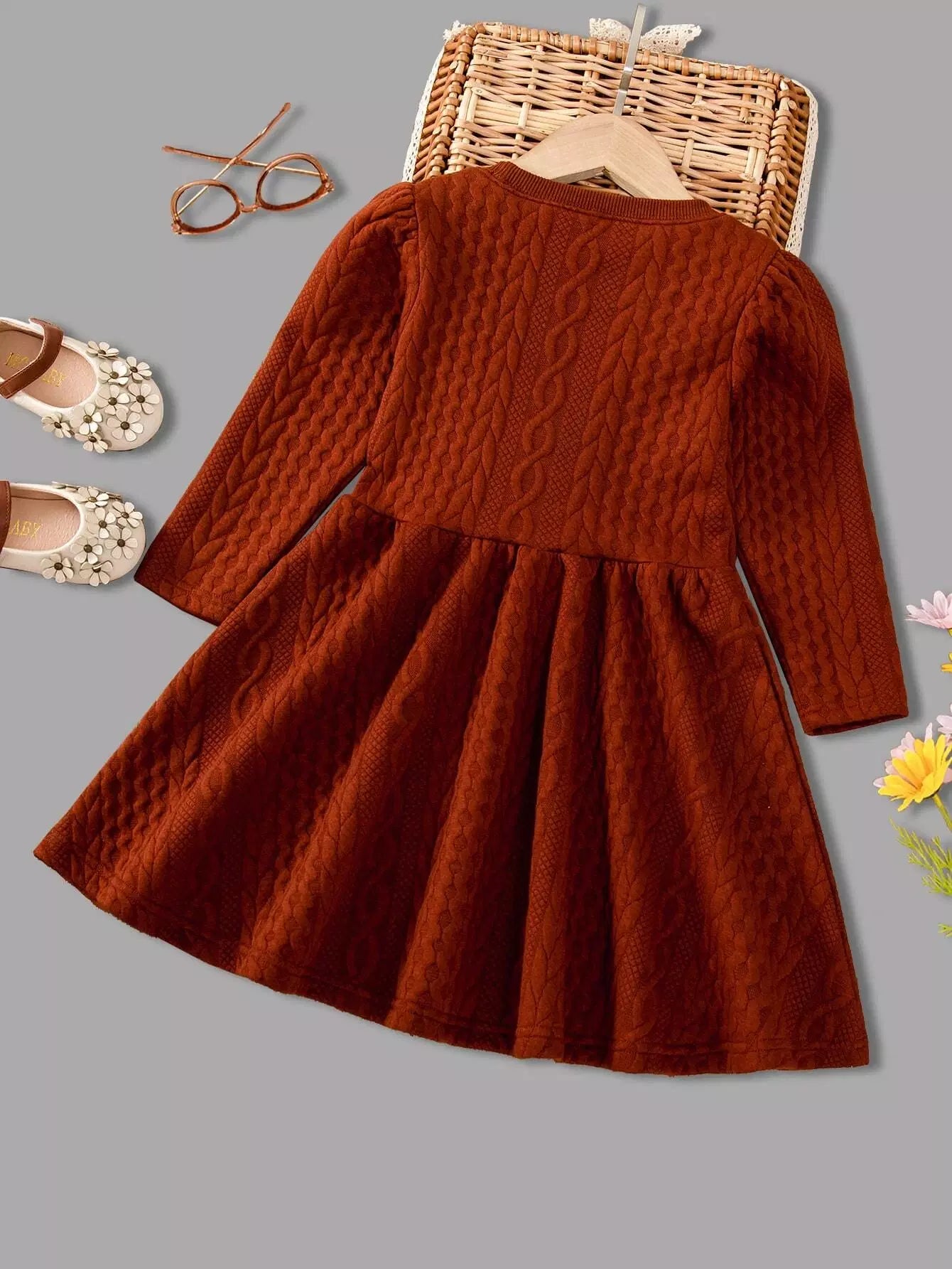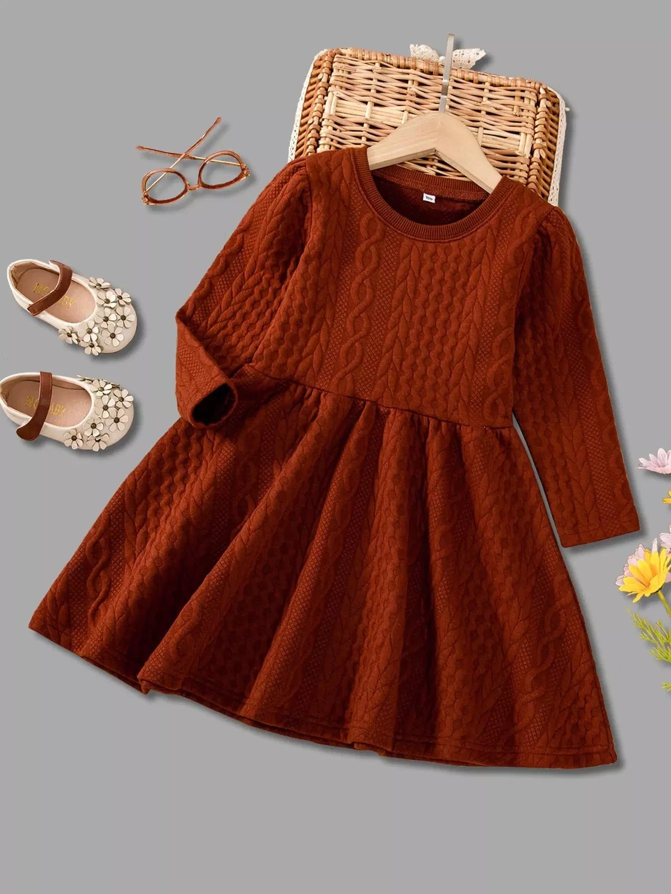 فستان بنات صغيرات بحواف كابل محبوكة بنقشة واسعة