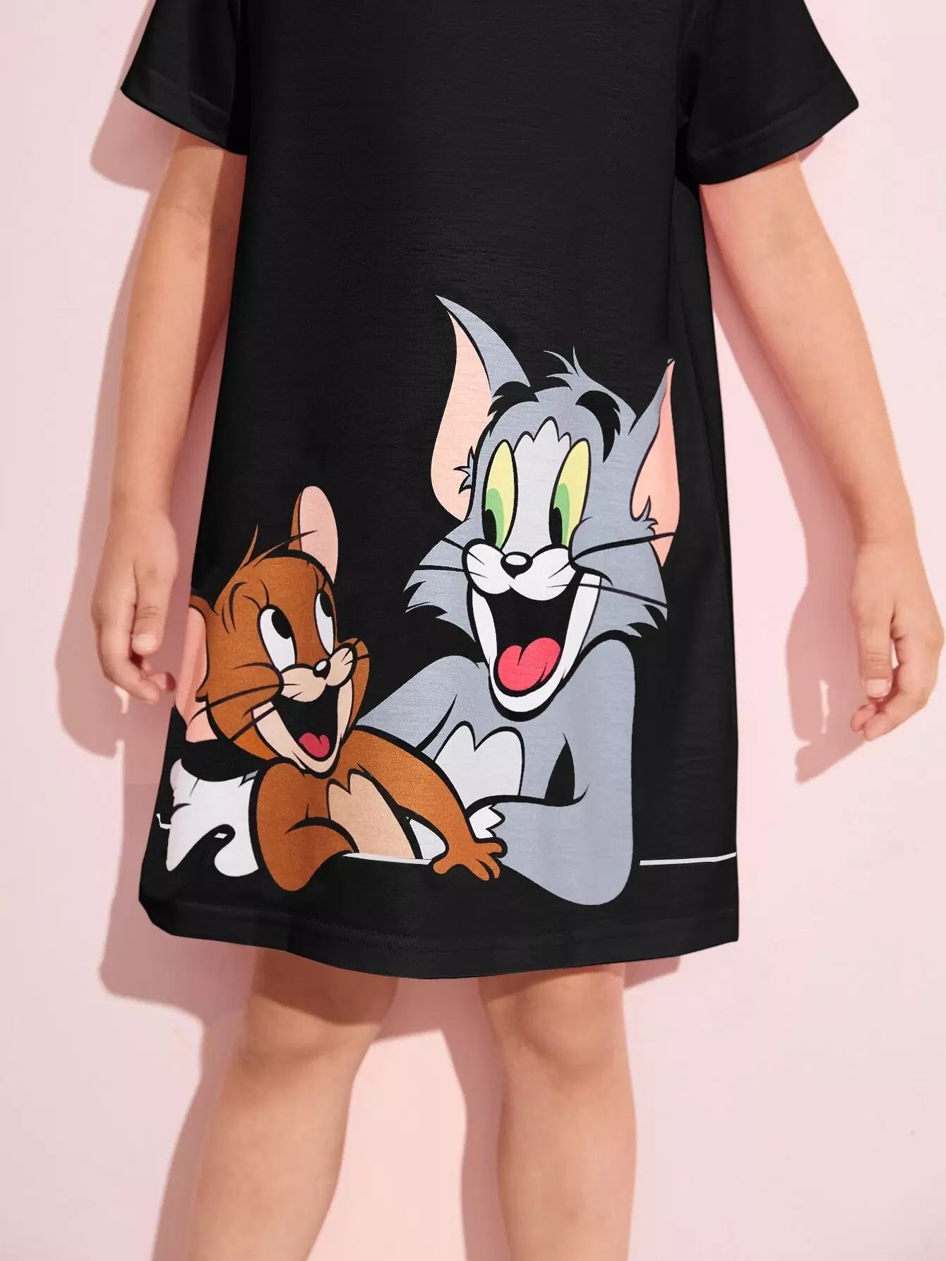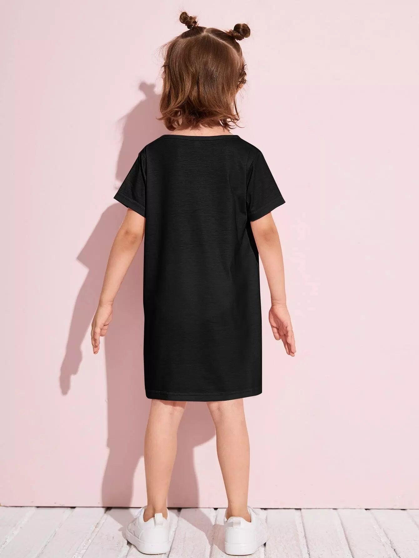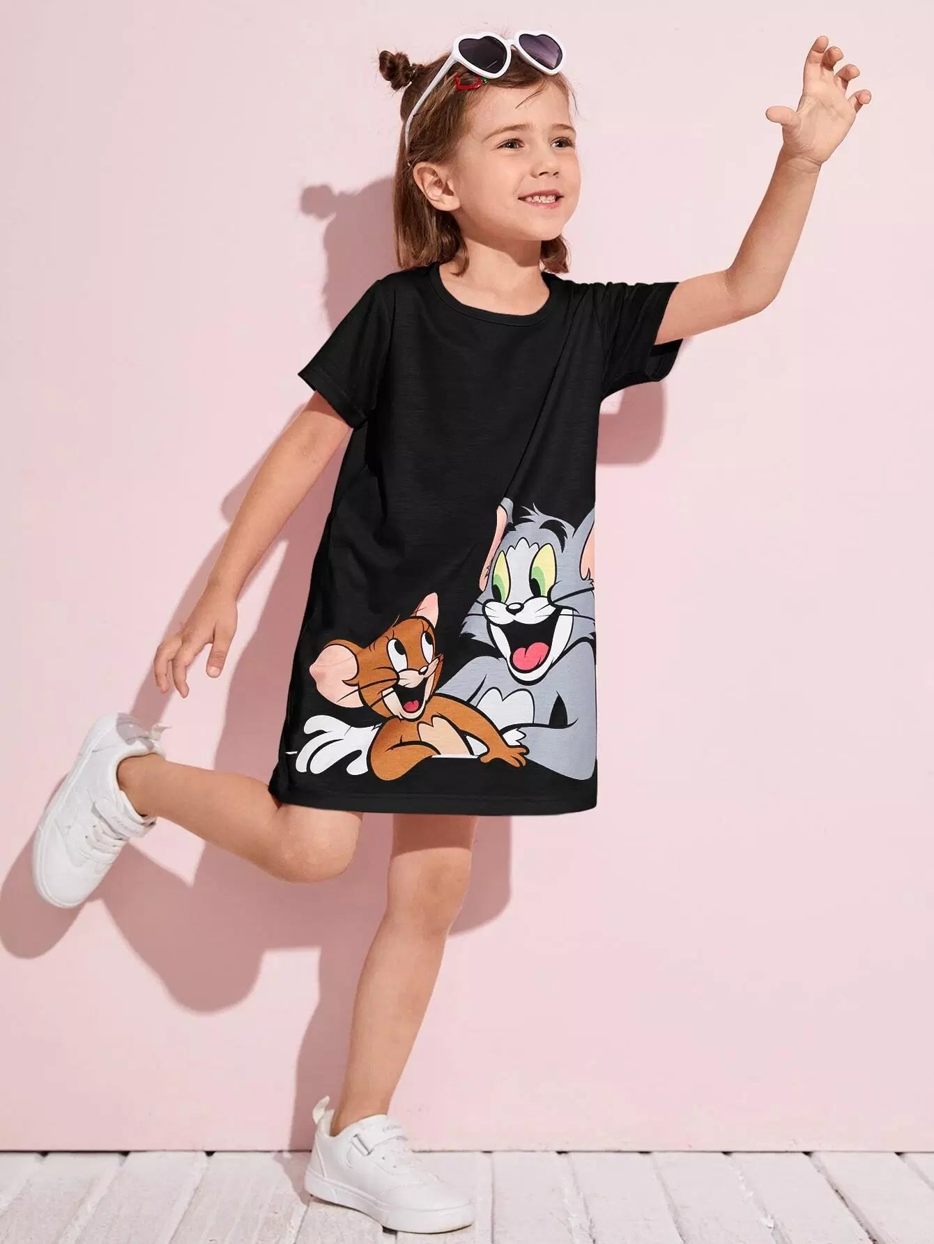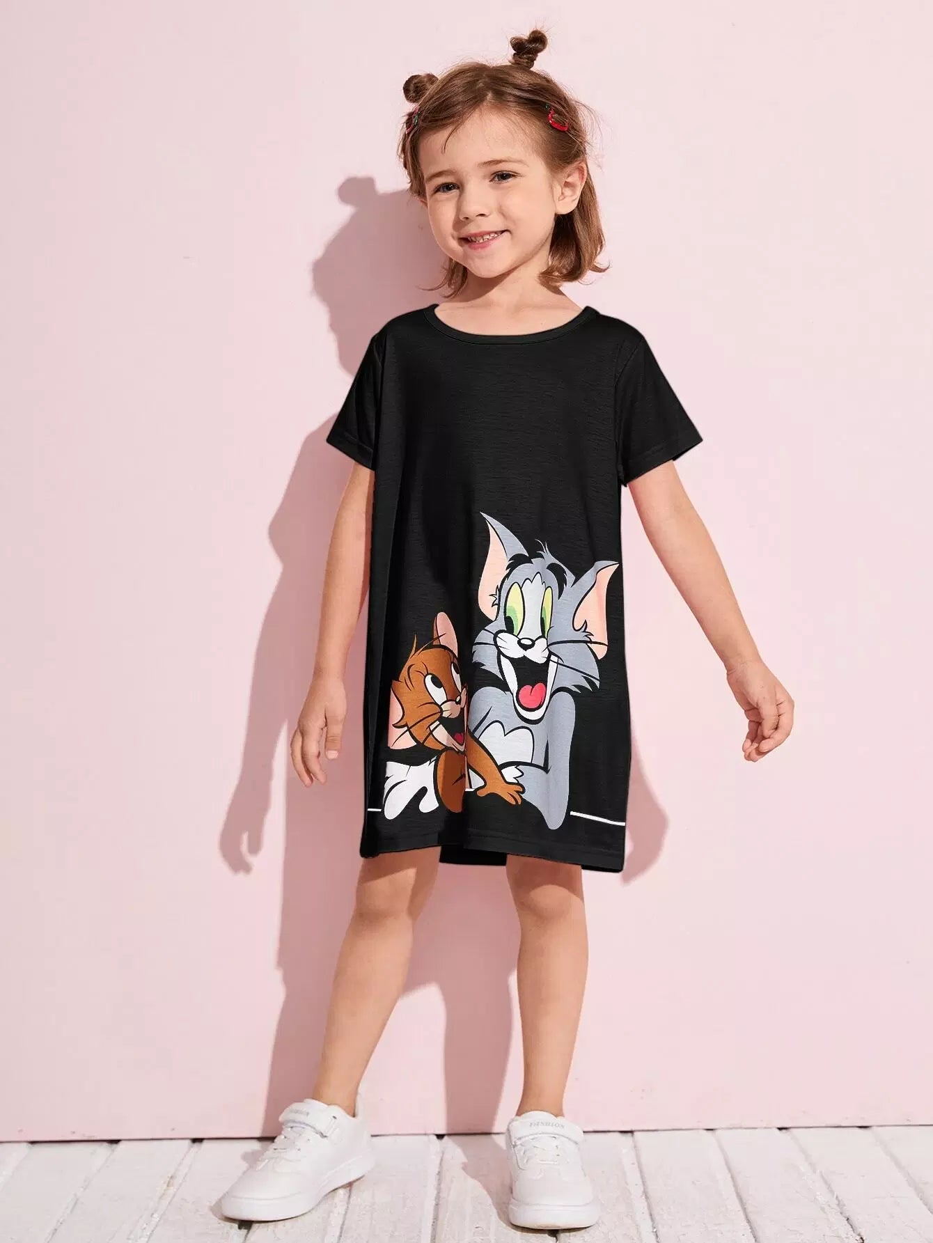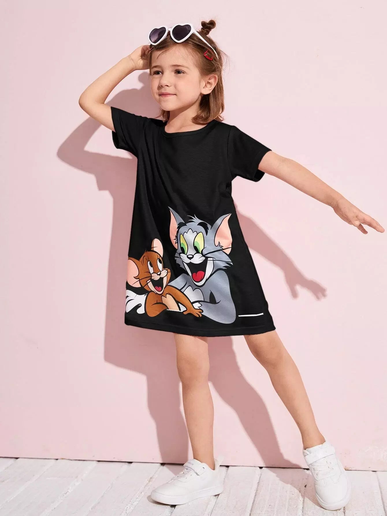 الأطفال - فستان تي شيرت برسوم كارتونية للفتيات الصغيرات