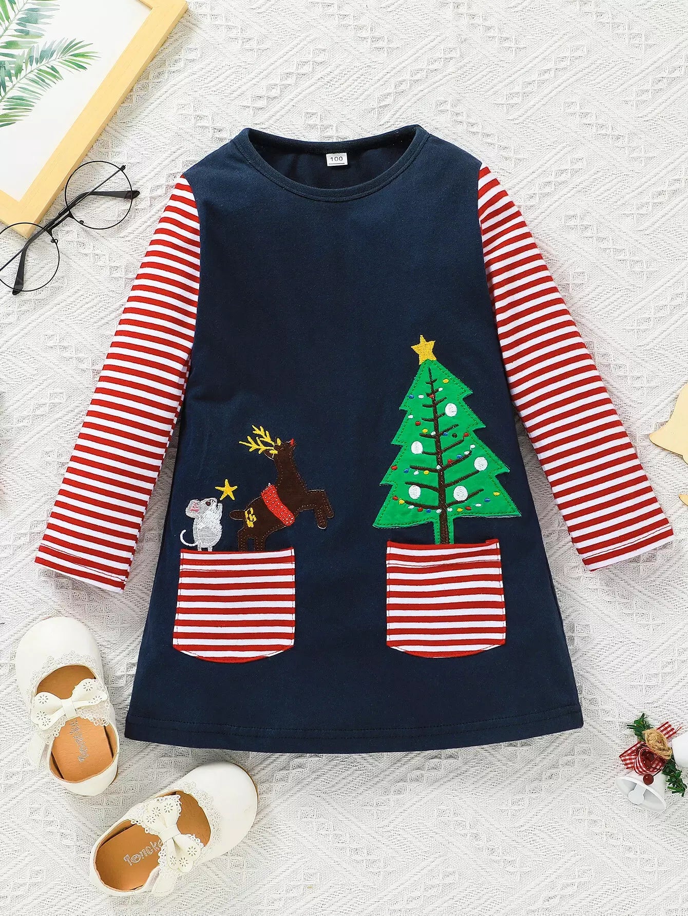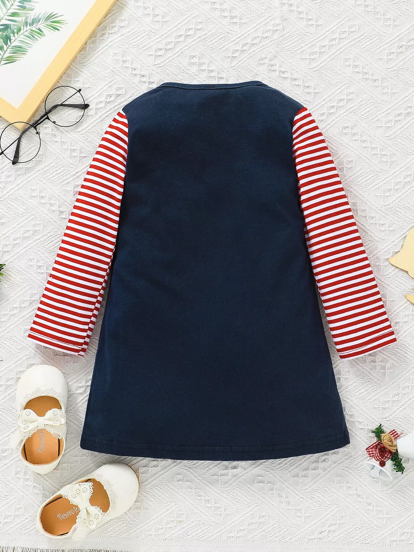فستان بناتي صغيرات بقصّة الكريسماس وتي شيرت بطبعة مخططة