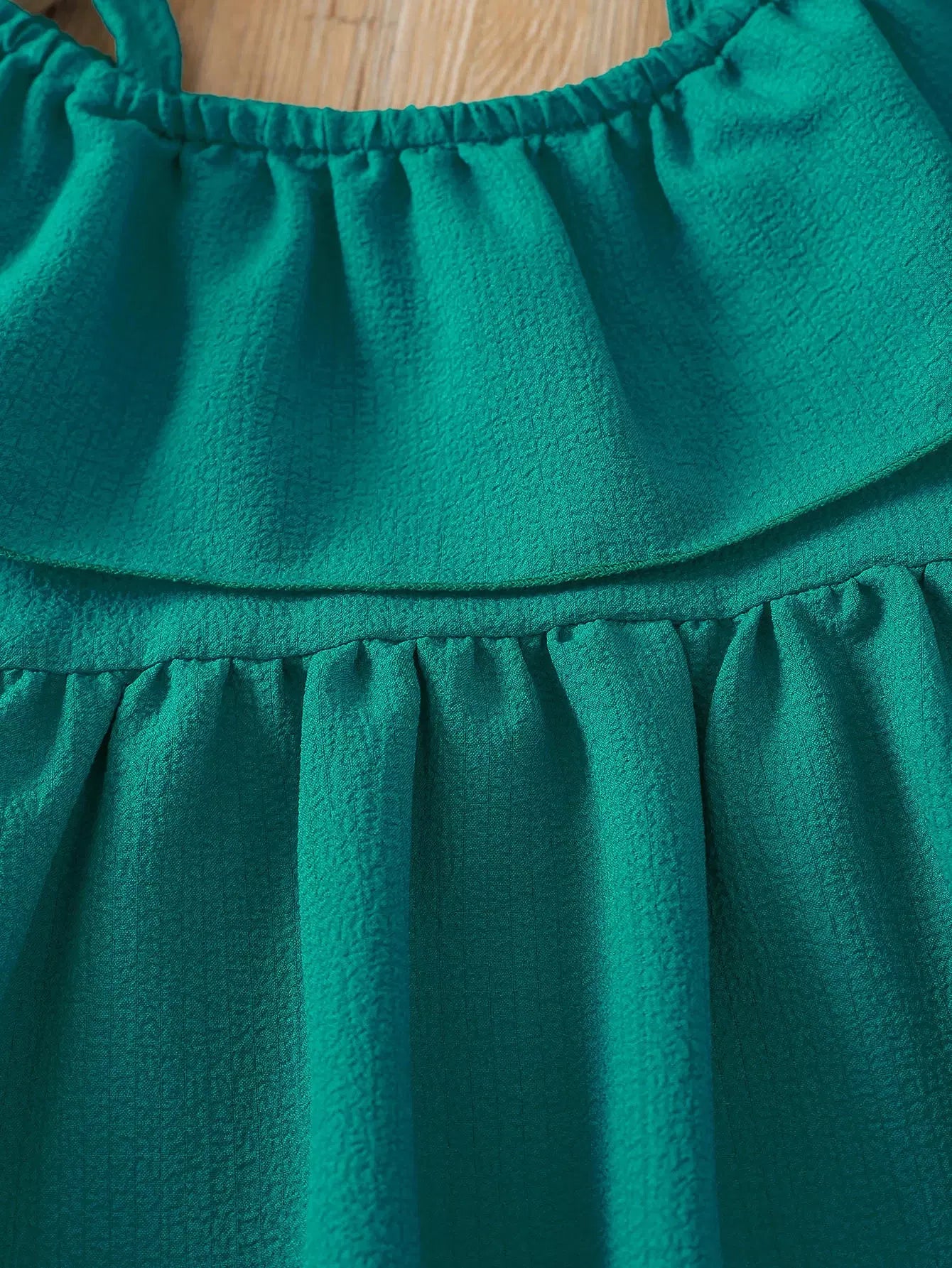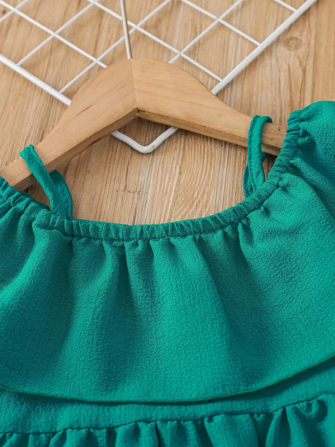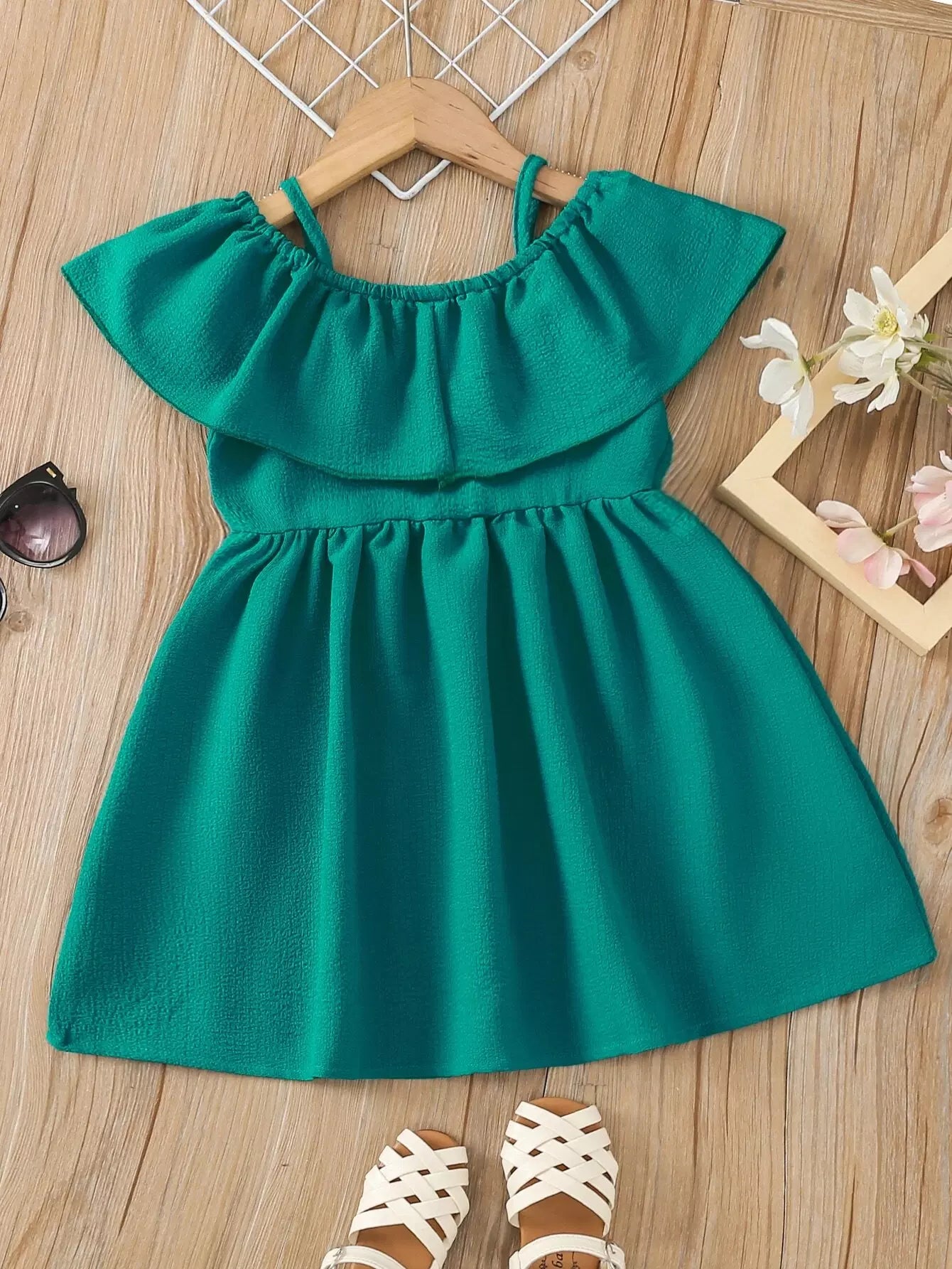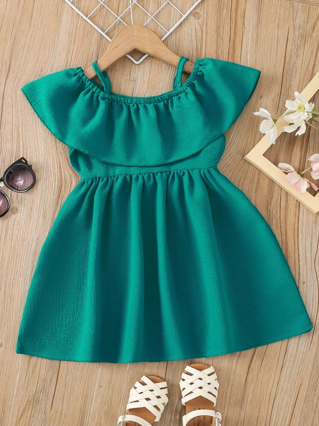 فستان بناتي صغيرات بكتف بارد بحواف كشكش مكشكشة