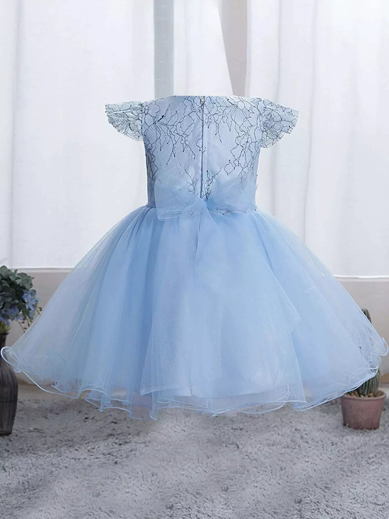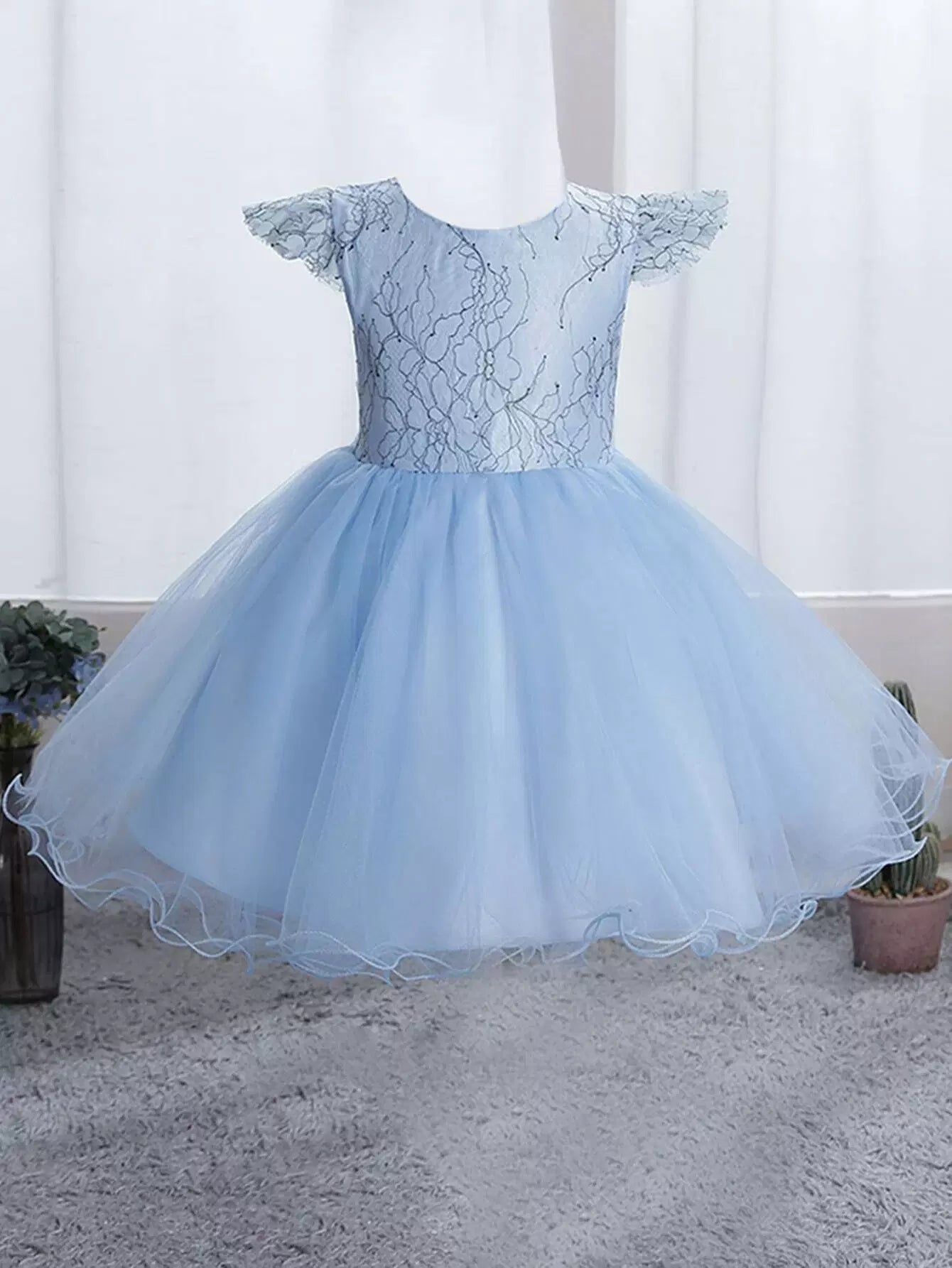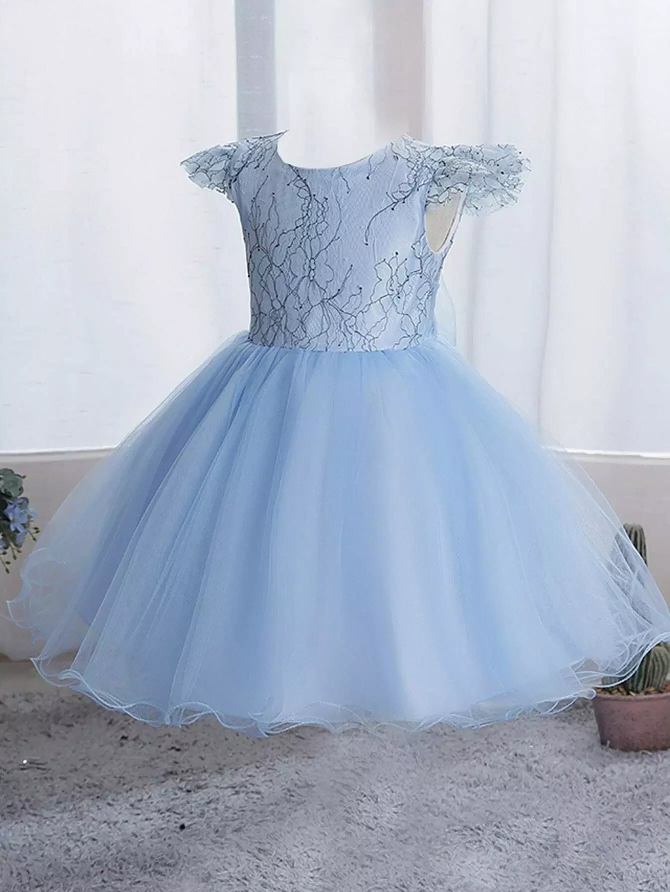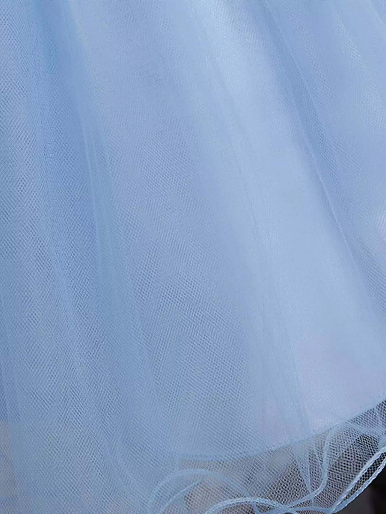 فستان فتيات صغيرات فستان شبكي بلون مغاير بربطة عنق على الظهر