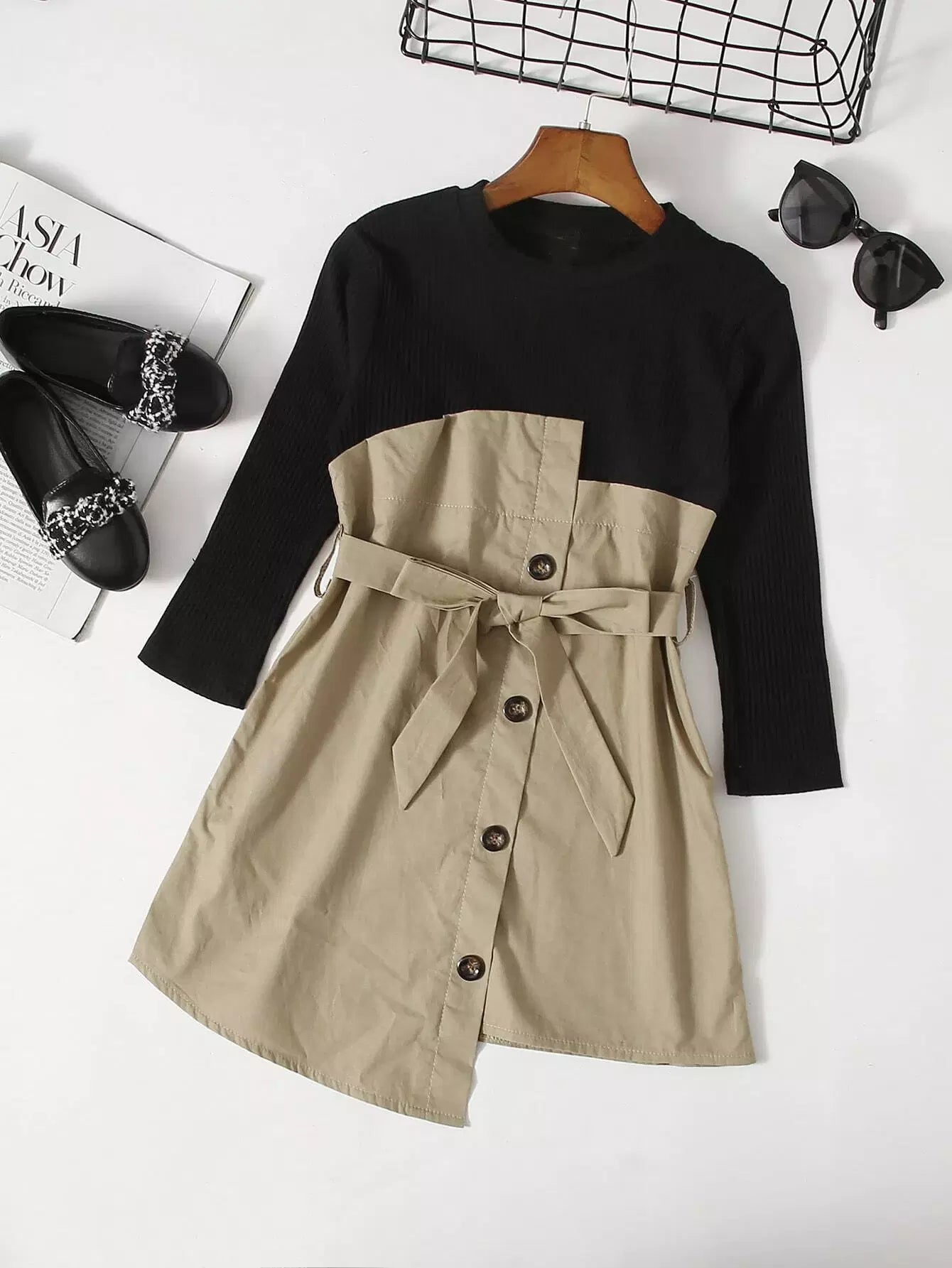فستان بحاشية غير متماثلة للفتيات الصغيرات بدون حزام
