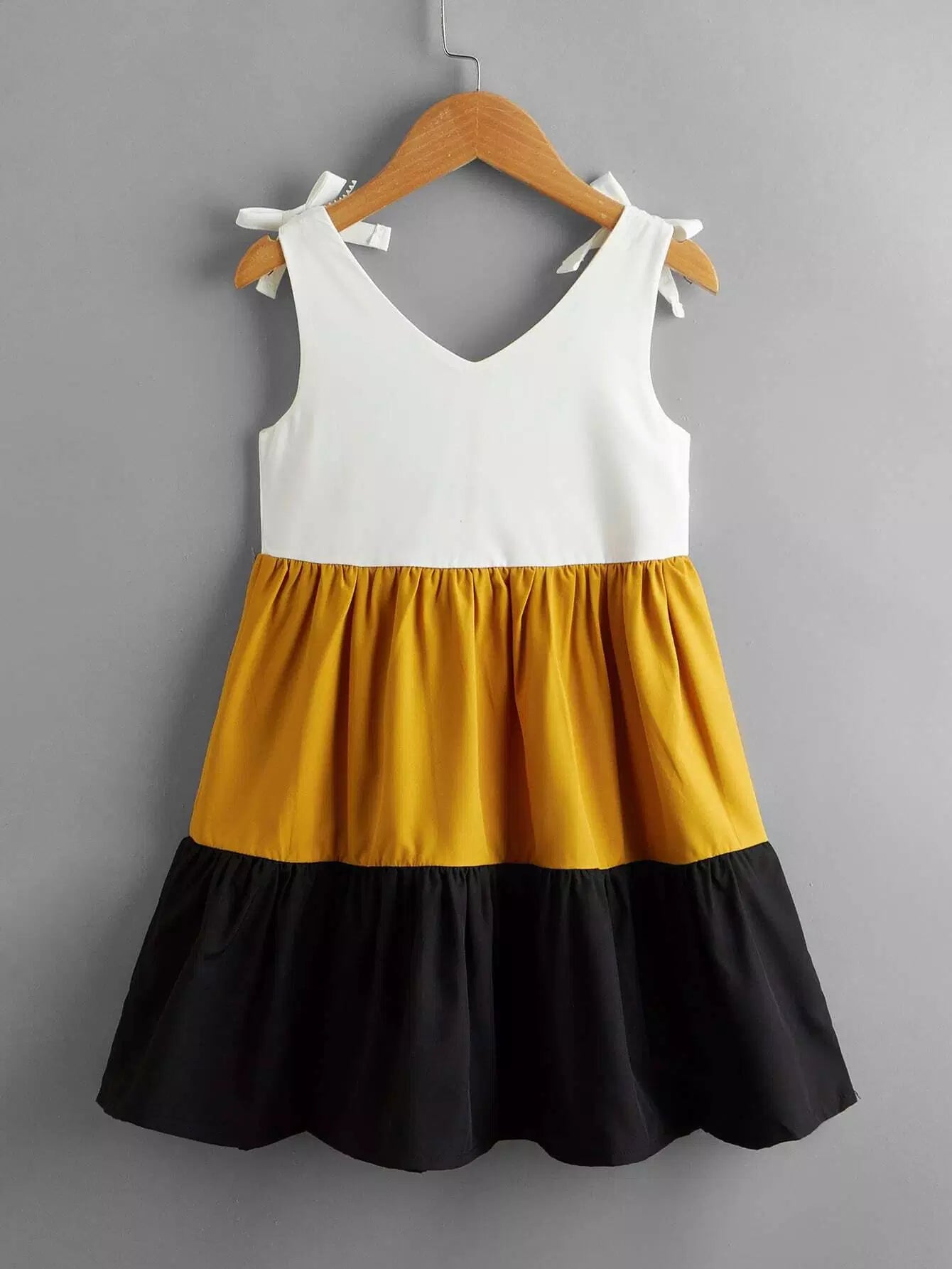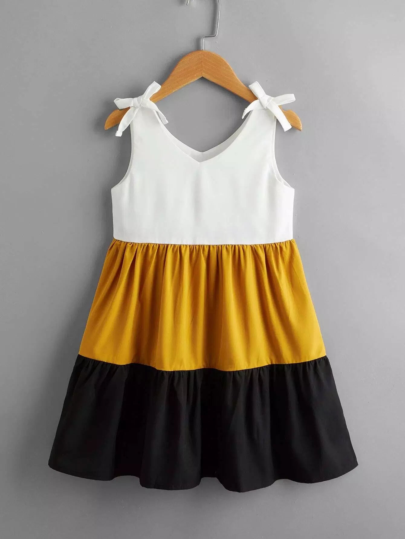 فستان كامي بناتي صغيرات بنقوش بلون مغاير
