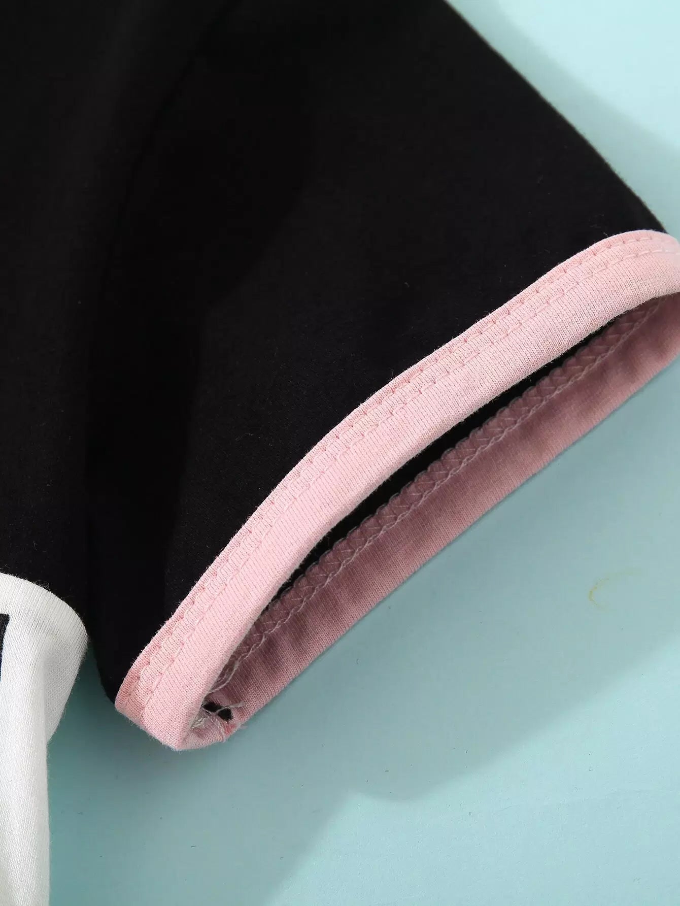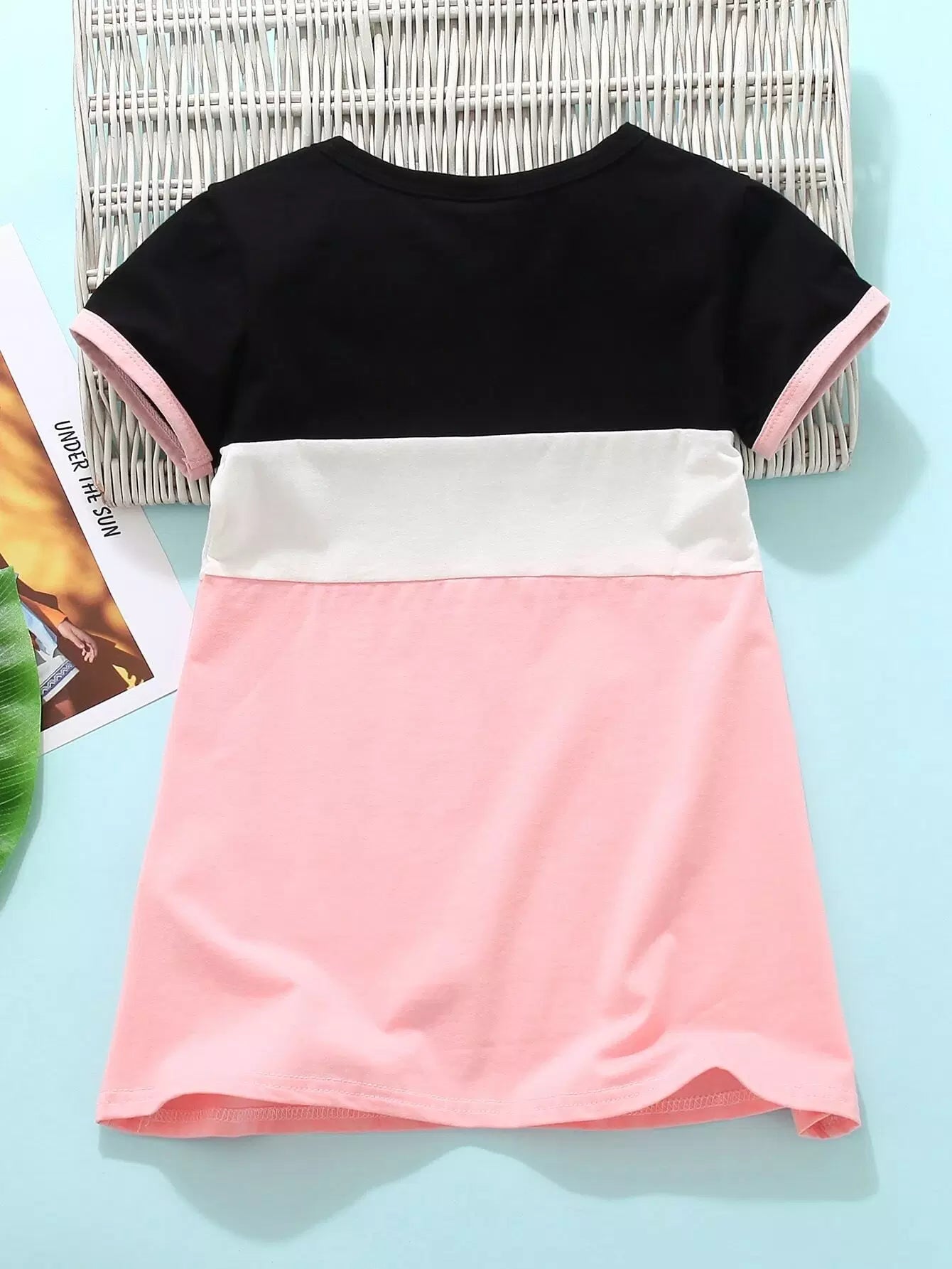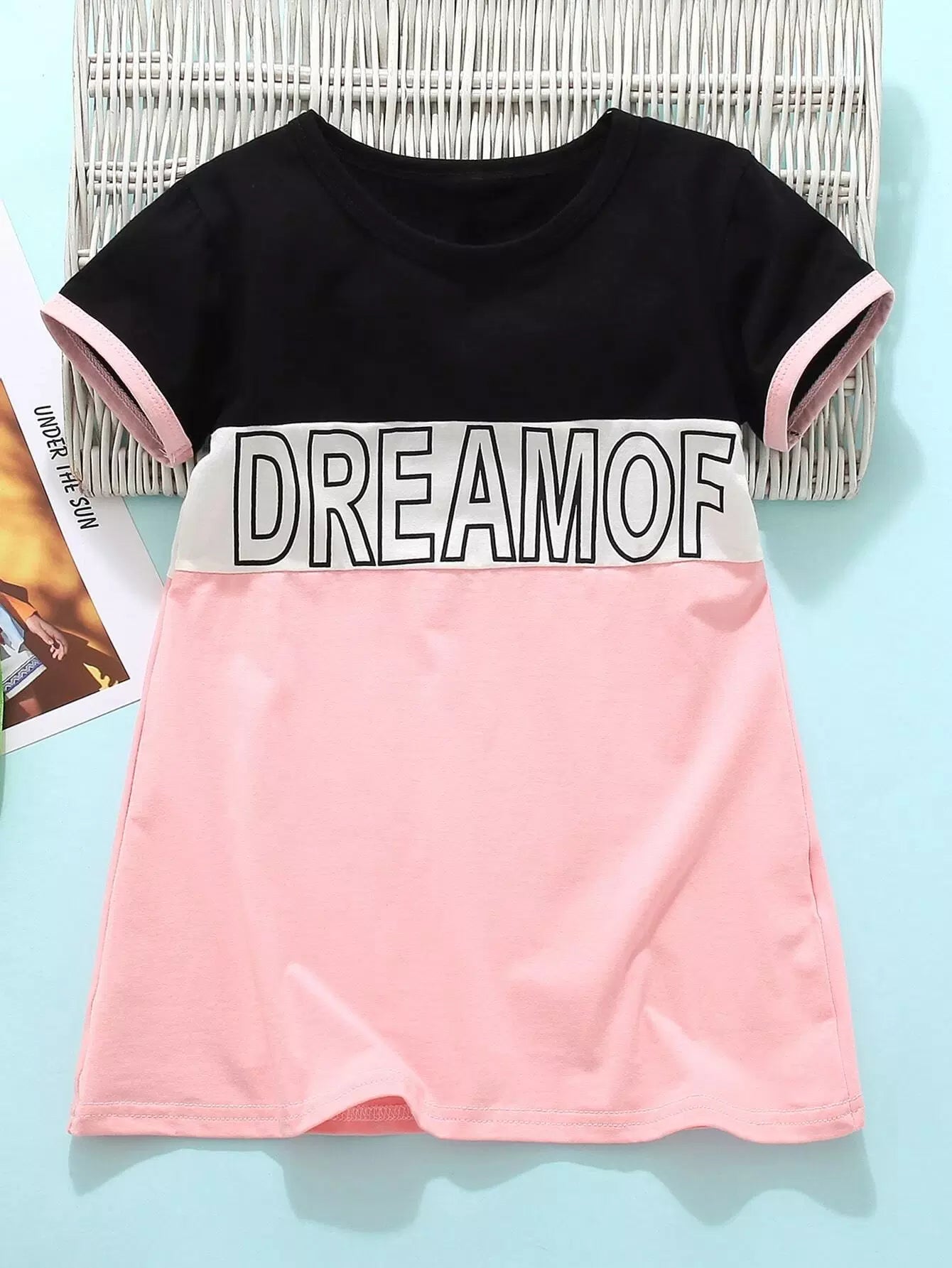 فستان بناتي صغيرات بقص وخياطة بنقشة حروف جرافيك