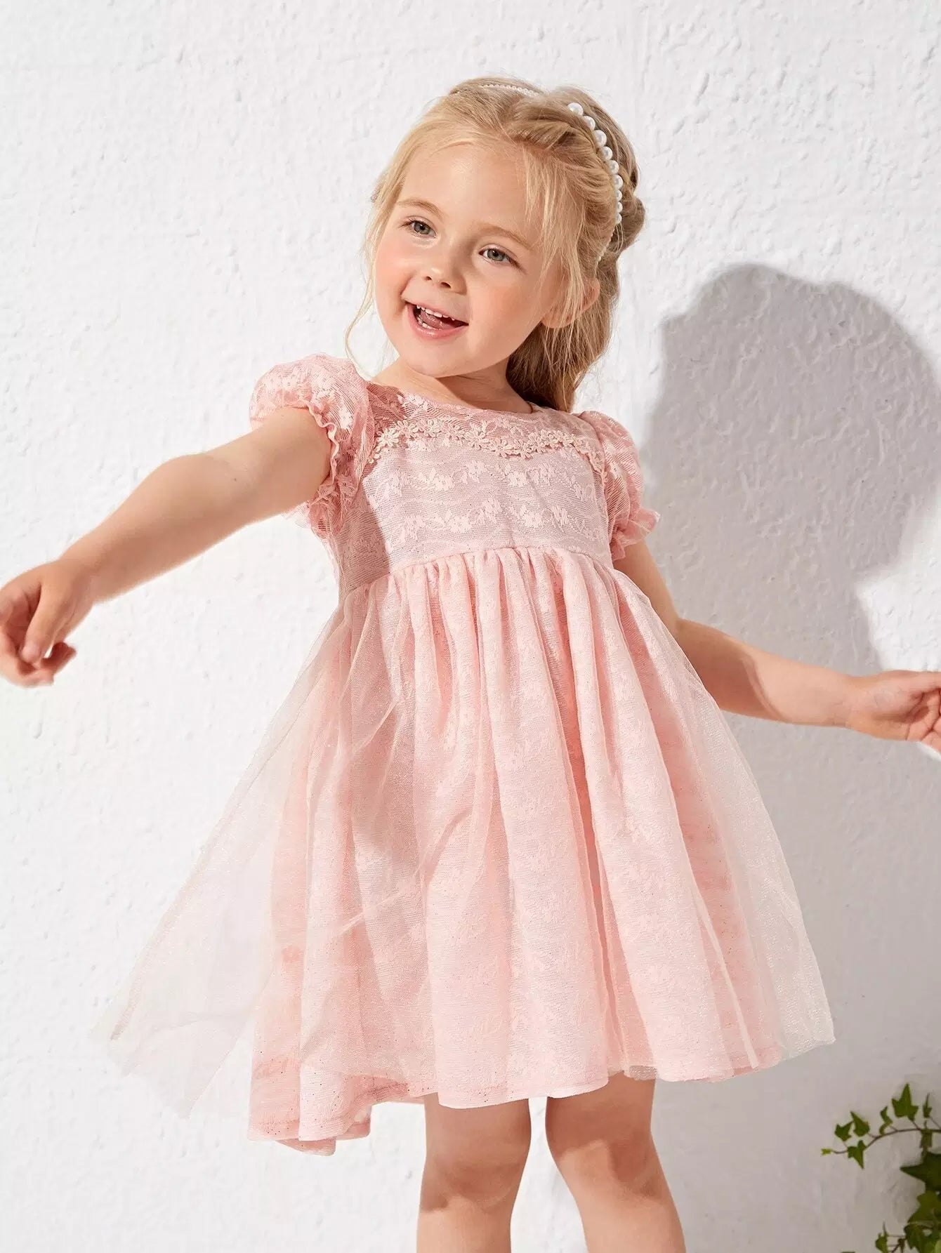 فستان دانتيل مقصوص من الخلف للبنات الصغيرات