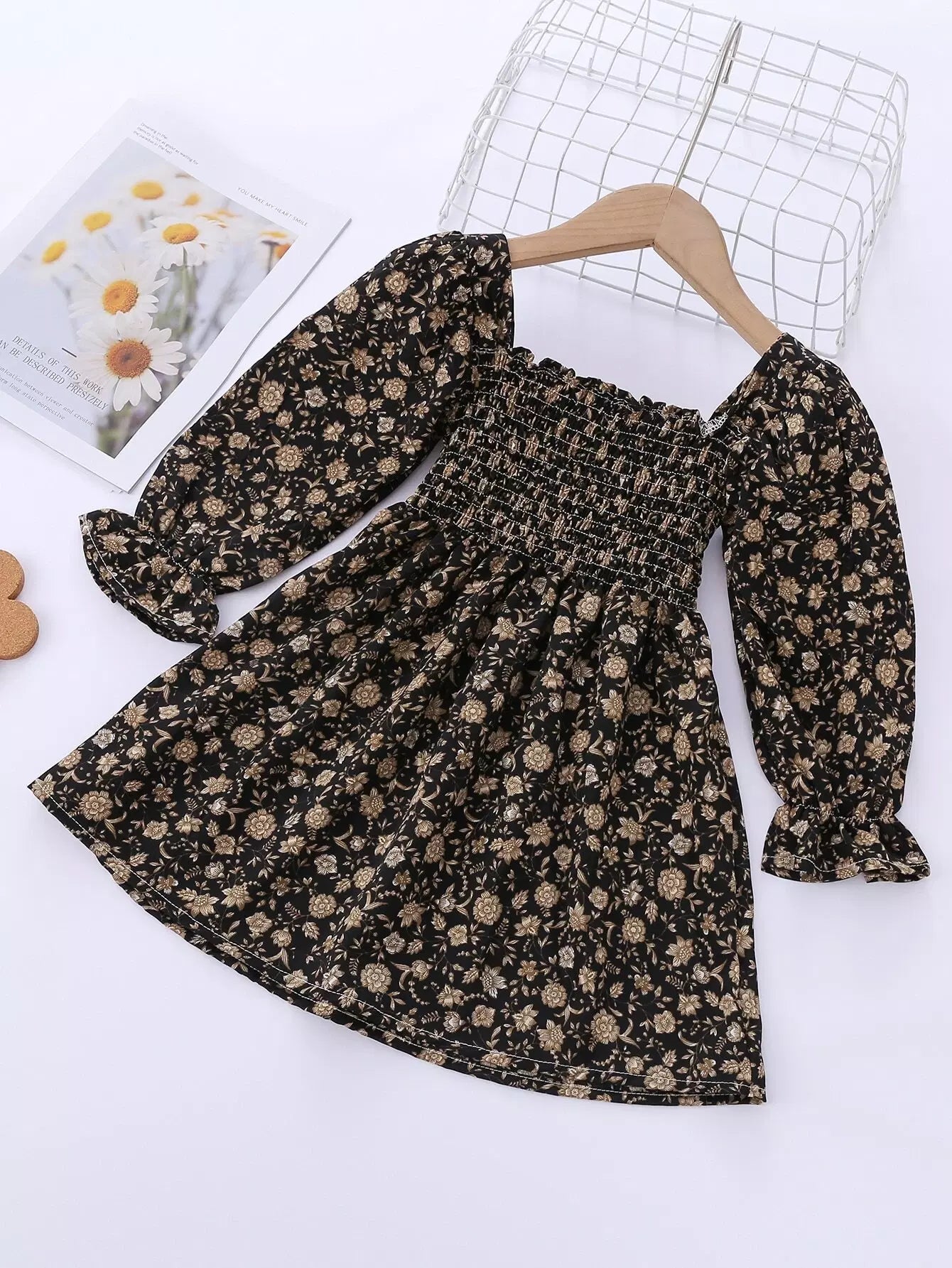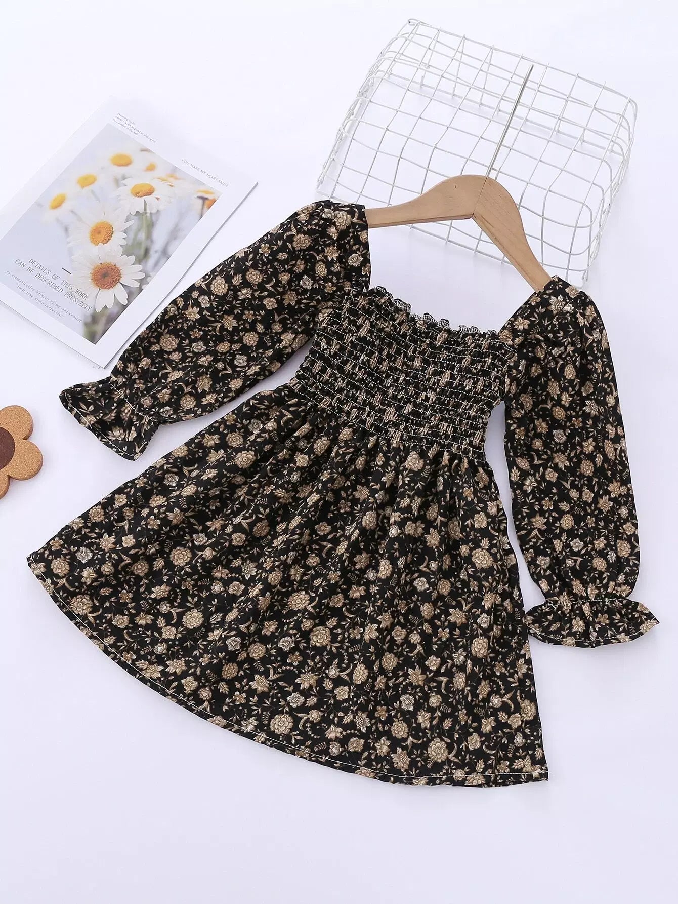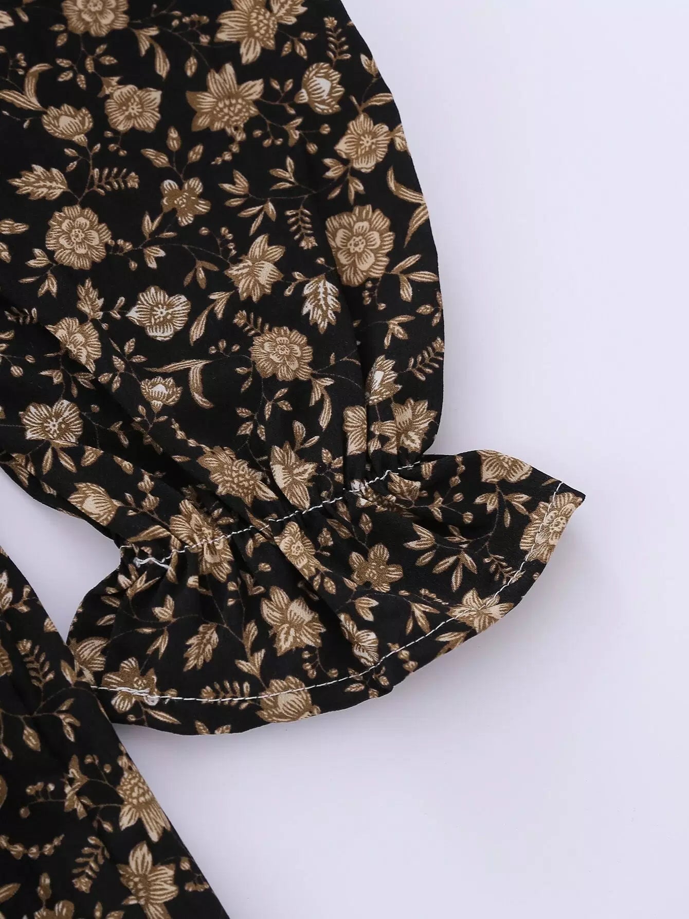 فستان شيفون بأكمام منفوشة بطبعة زهور بأكمام منفوشة للبنات الصغار